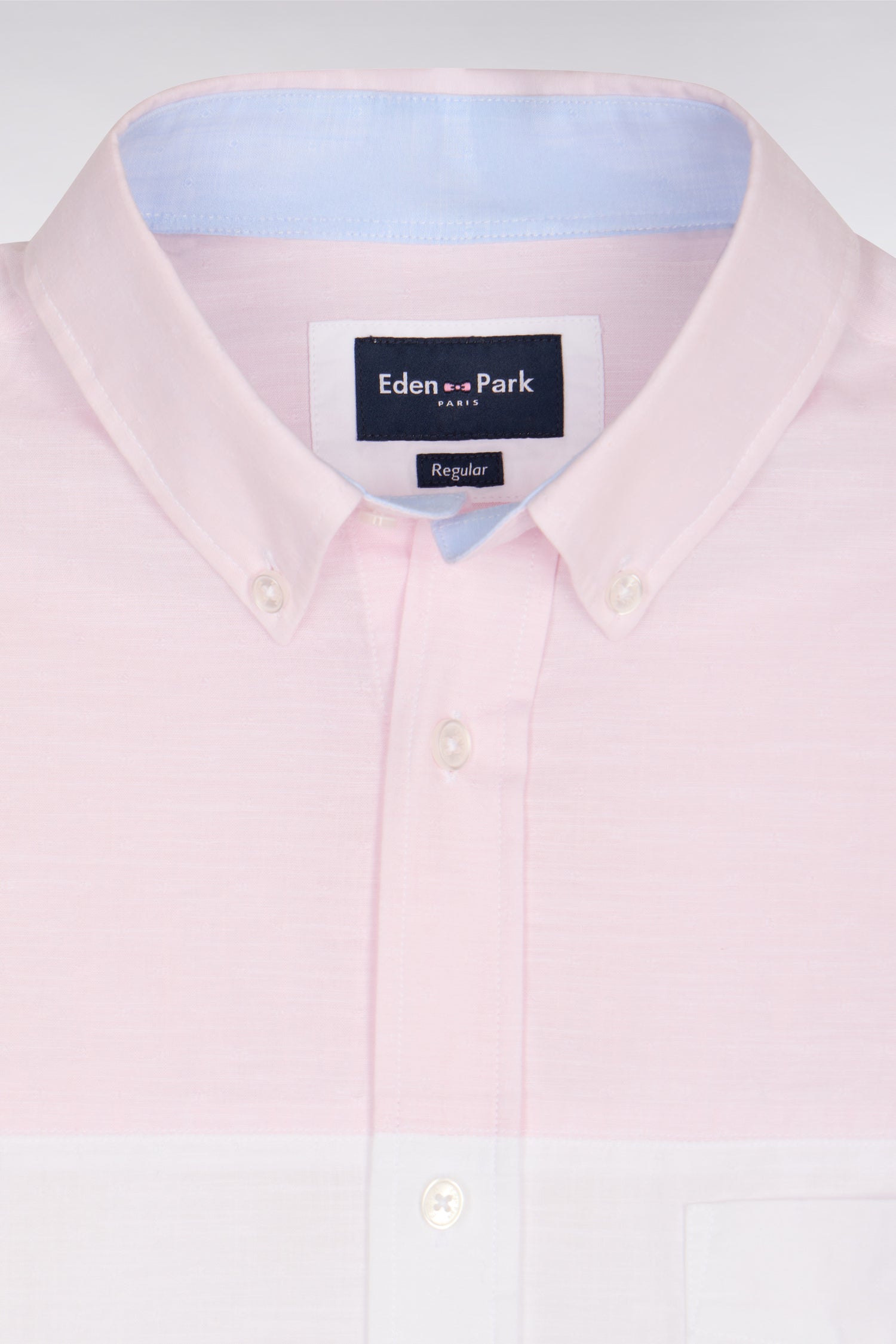 Cette chemise manches longues en jacquard Dobby italien revisite l’esthétique patchwork typique d'Eden Park dans une version sport-chic. Sa construction coupée-cousue en trois couleurs placées en bandes horizontales crée un contraste graphique subtil. Sa coupe droite assure une aisance naturelle au porté, tandis que le col à pointes boutonnées et la poche plaquée sur la poitrine apportent un esprit sport chic.