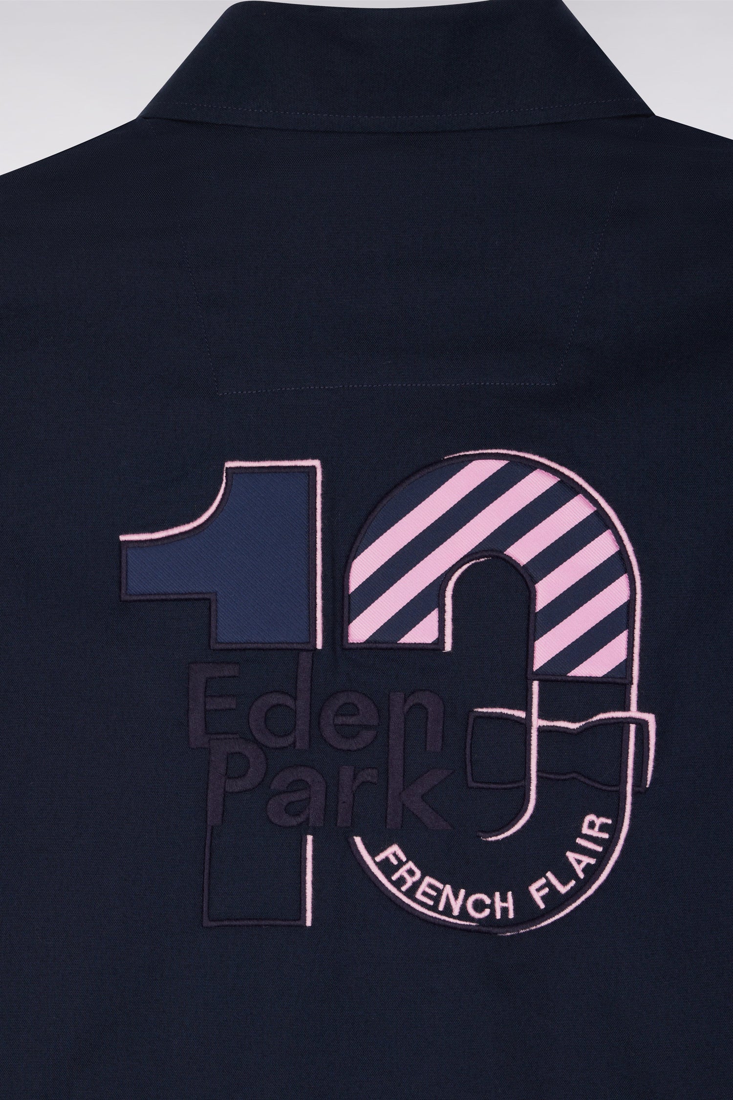 Chemise en coton pinpoint marine broderie 10 dos coupe droite