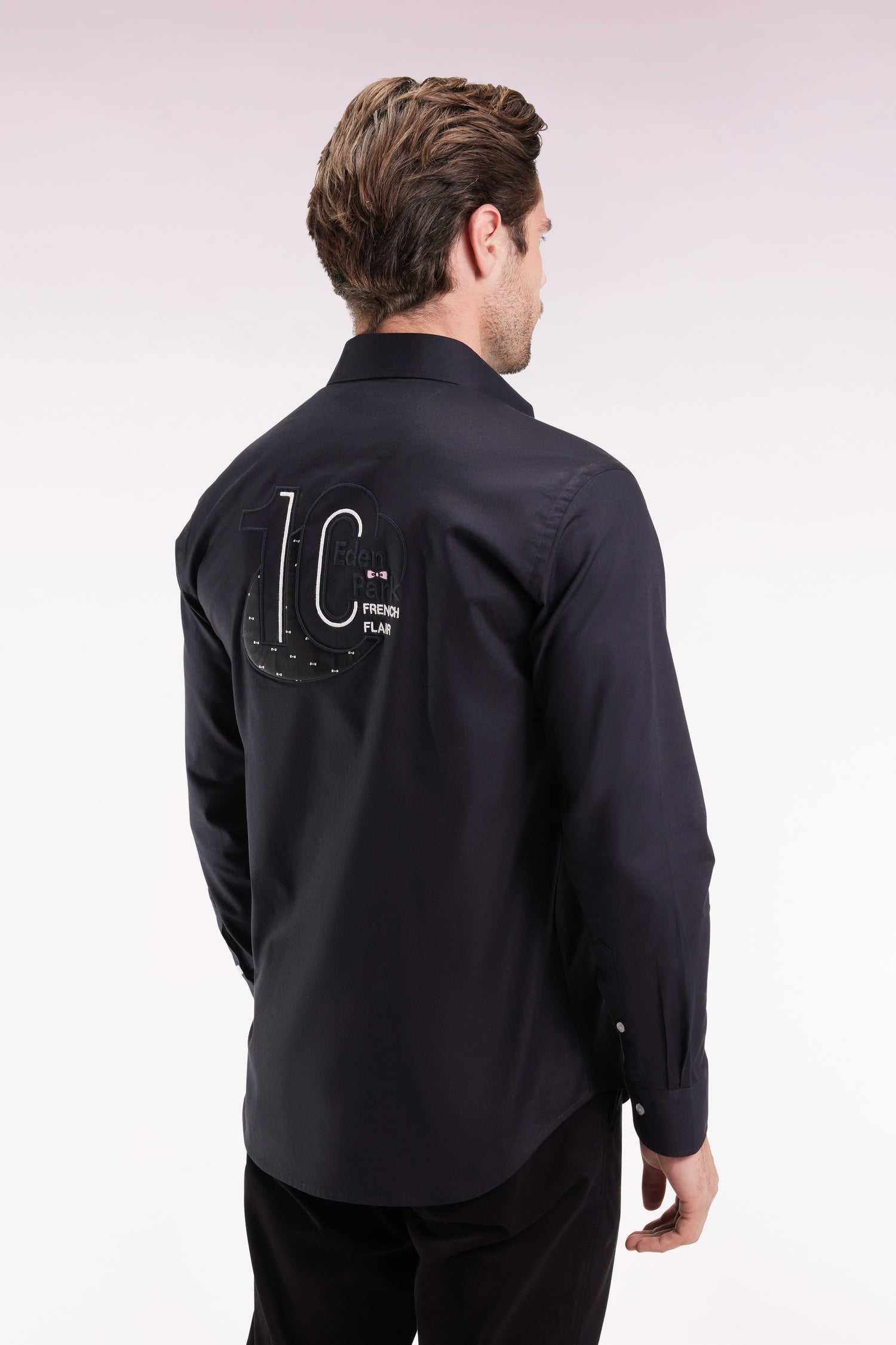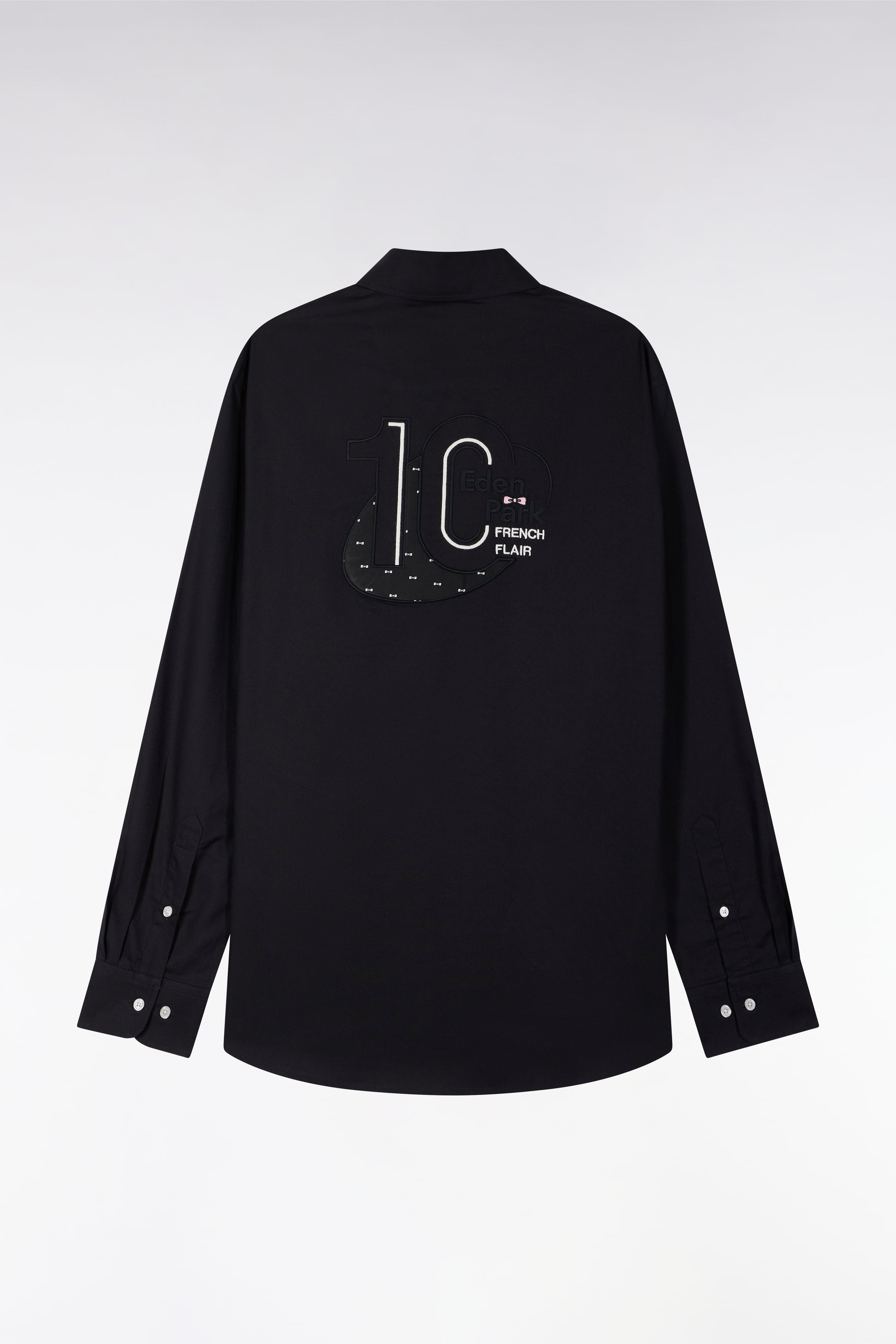 Chemise en coton pinpoint noire broderie dos coupe droite