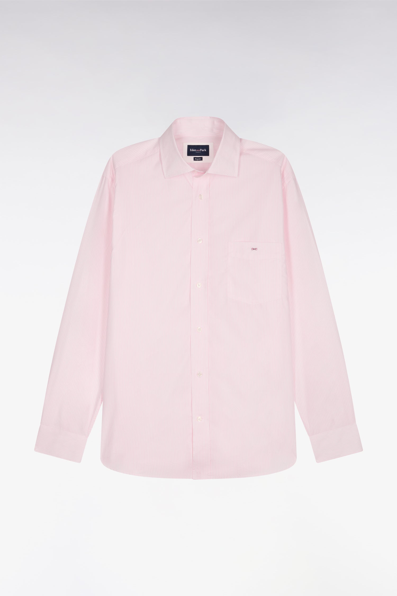 Le savoir-faire de la Maison s’exprime dans chaque détail comme en atteste cette chemise homme. Confectionnée en coton dobby, développée dans un tissage finement texturé, revisite la rayure classique dans une version ciel ou rose pleine de fraîcheur. Sa coupe regular offre un équilibre parfait entre aisance et tenue, tandis que la poche poitrine renforce son caractère décontracté sans impasse sur l'élégance. Une pièce lumineuse et polyvalente, idéale pour apporter une touche de relief et d’élégance à un chino clair ou à un denim foncé portés avec une paire de baskets basses en cuir blanc ou des mocassins nubuck.