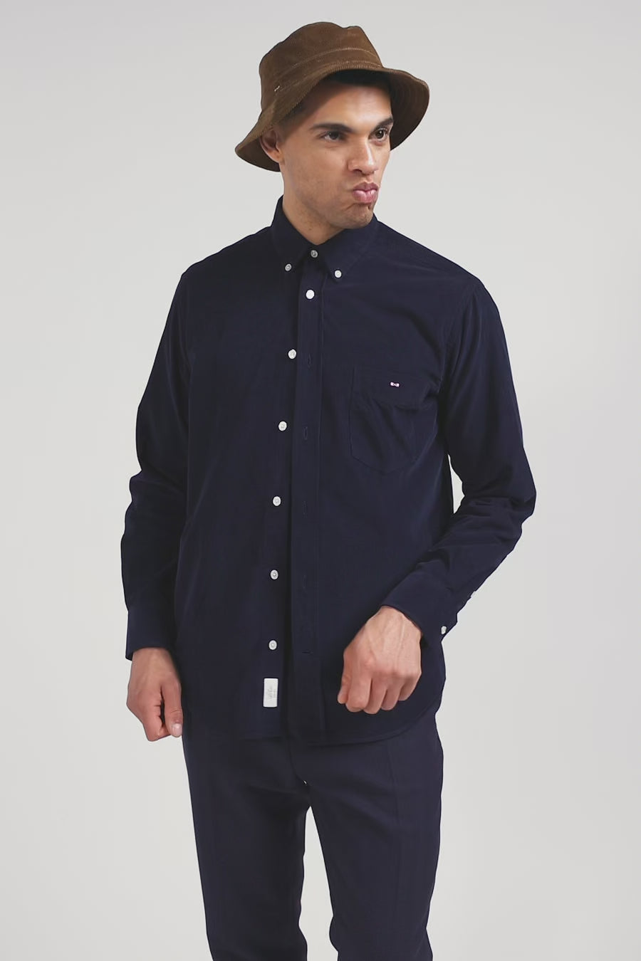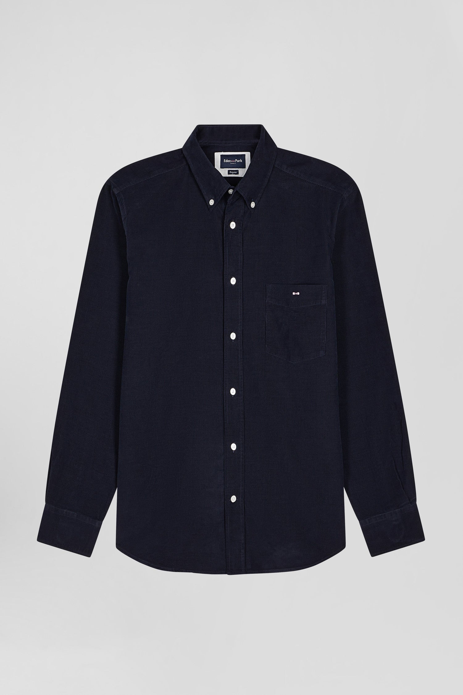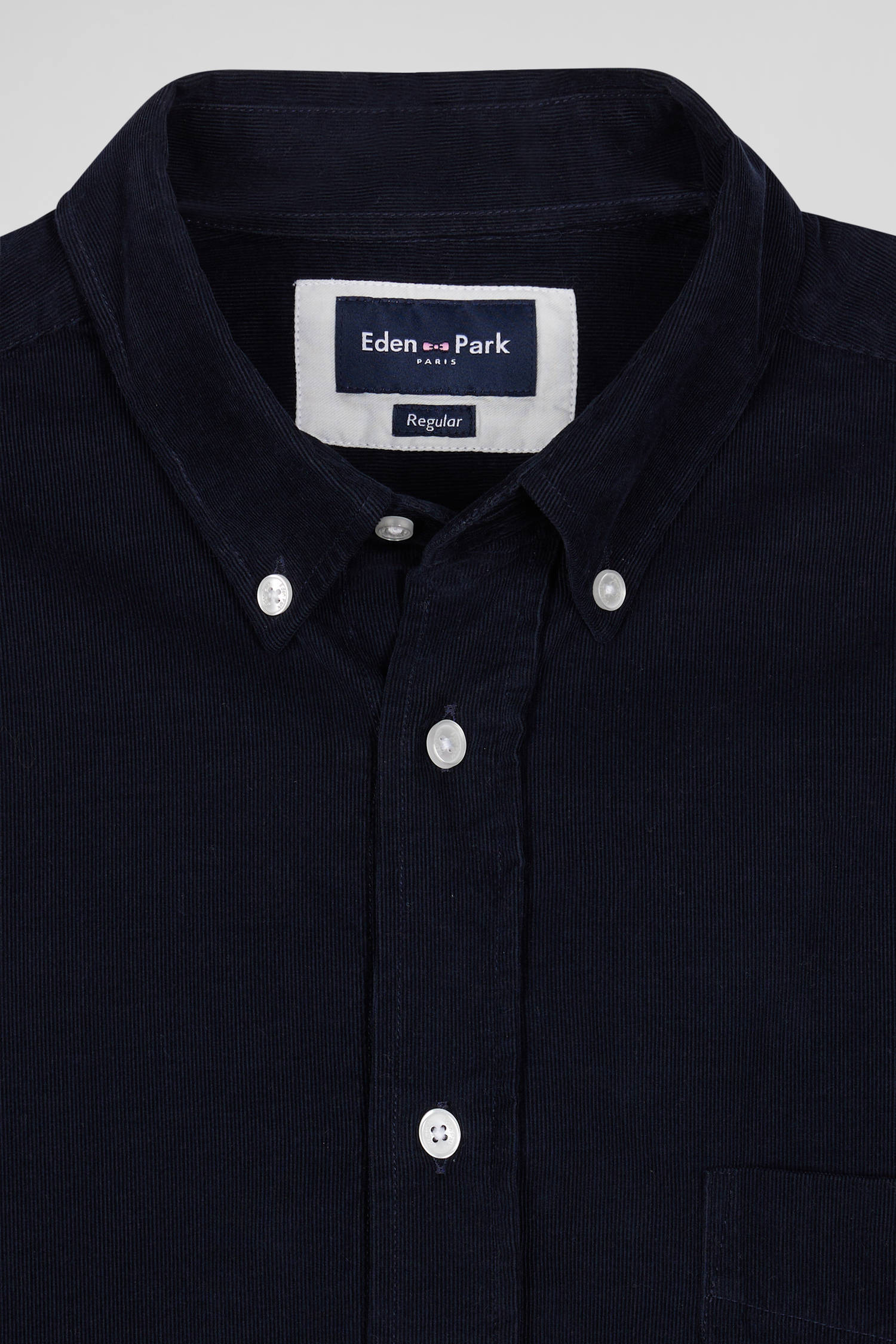 Chemise en velours côtelé uni marine col boutonné et poche poitrine coupe Regular