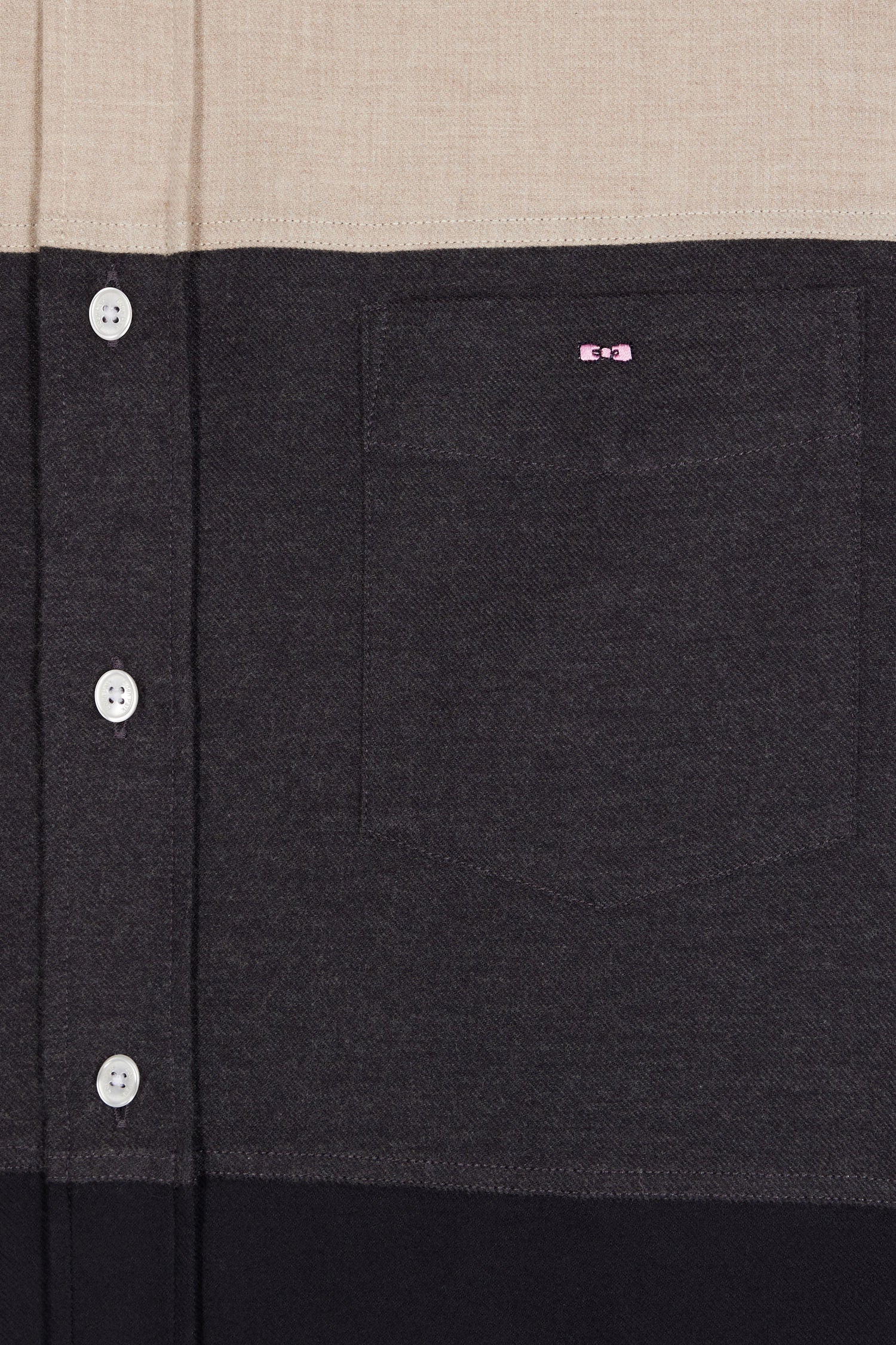 Cette chemise est confectionnée dans une flanelle de coton pour un porté doux et chaud, même au cœur de l'hiver. Ce modèle comportant des empiècements contrastés travaillés en coupé-cousu. Ses tonalités beige et marine, s'accordent aussi