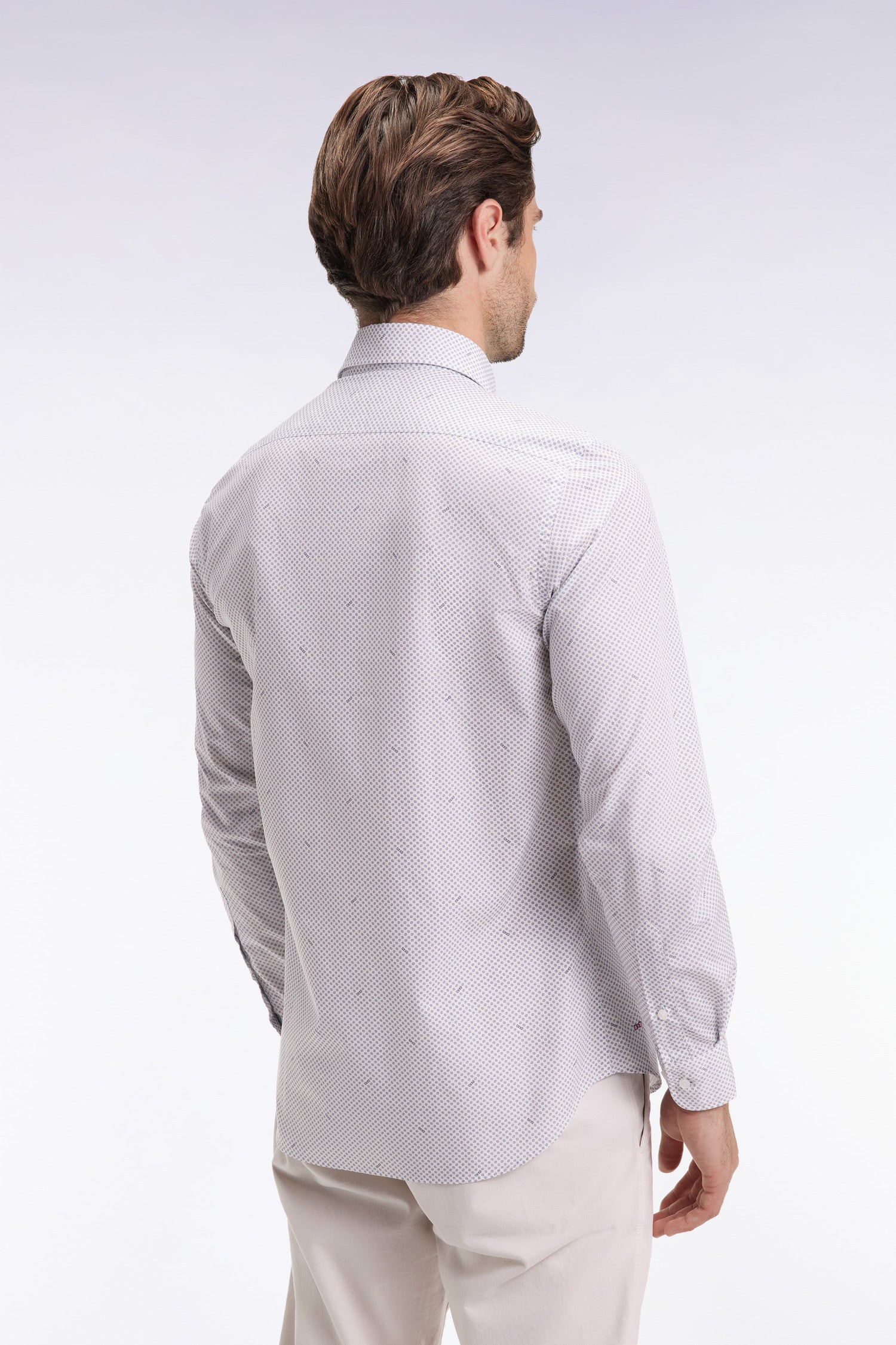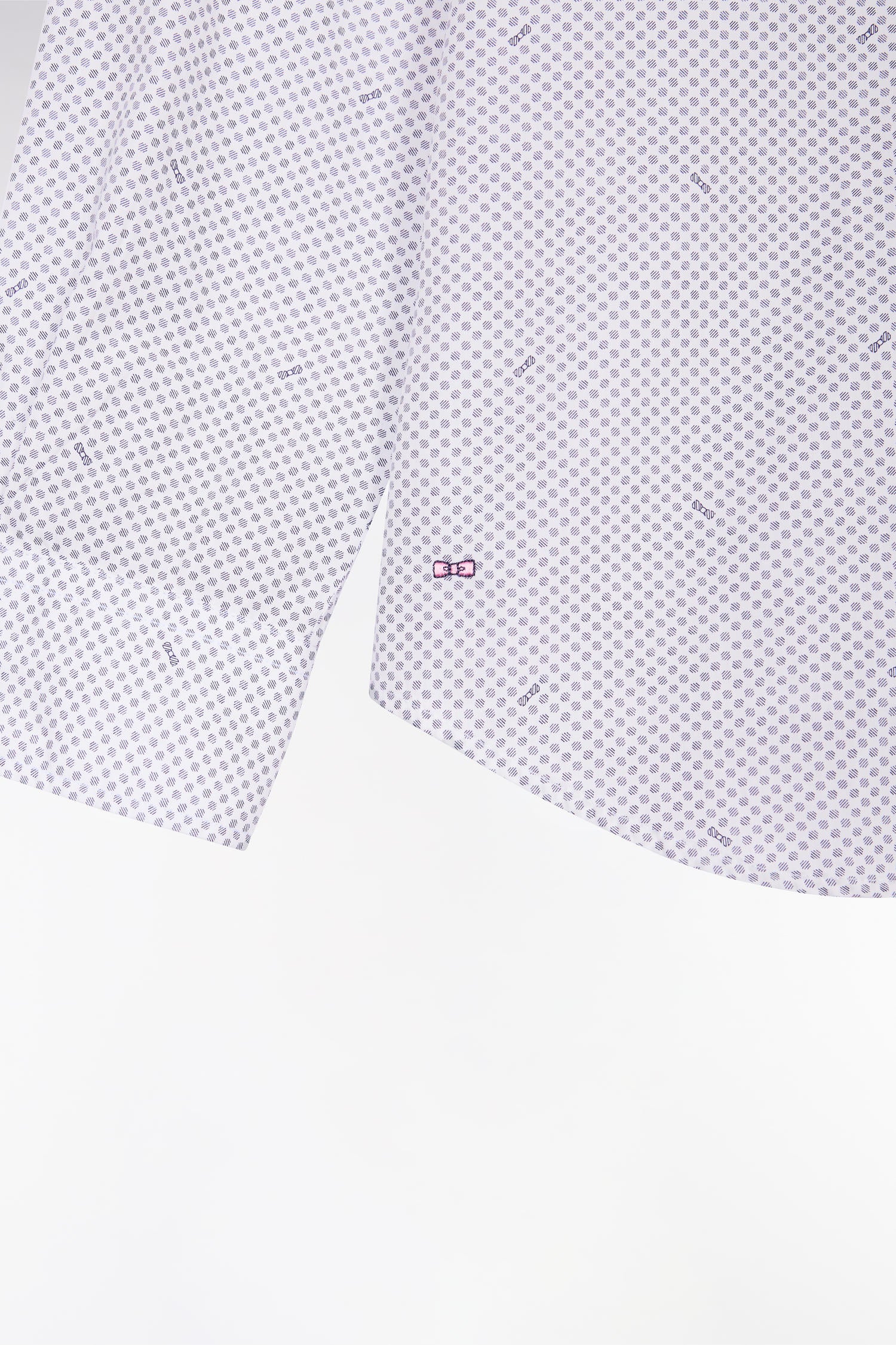 Pensée pour une silhouette soignée en toutes circonstances, cette chemise homme à l’imprimé micro géométrique allie modernité du motif coloré et douceur de la popeline de coton d'un blanc lumineux. Sa coupe slim seyante au pans légèrement arrondis s’adapte à tous les styles, portée seule ou sous un pull. La broderie nœud papillon rose vient discrètement rappeler son appartenance au vestiaire Eden Park