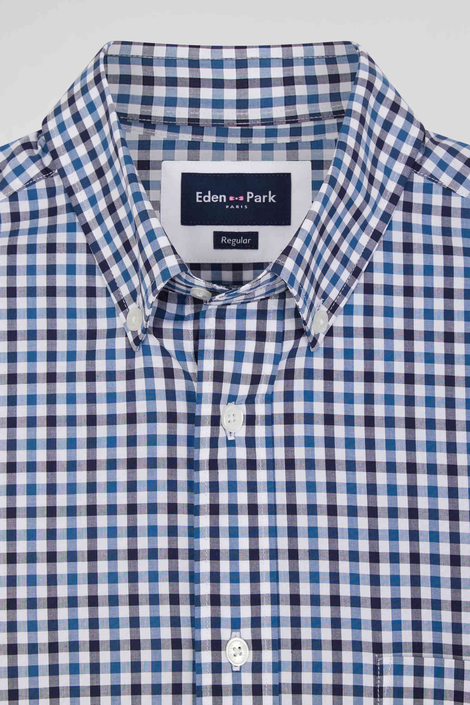 Chemise en popeline de coton bleu marine à carreaux bicolore coupe Regular
