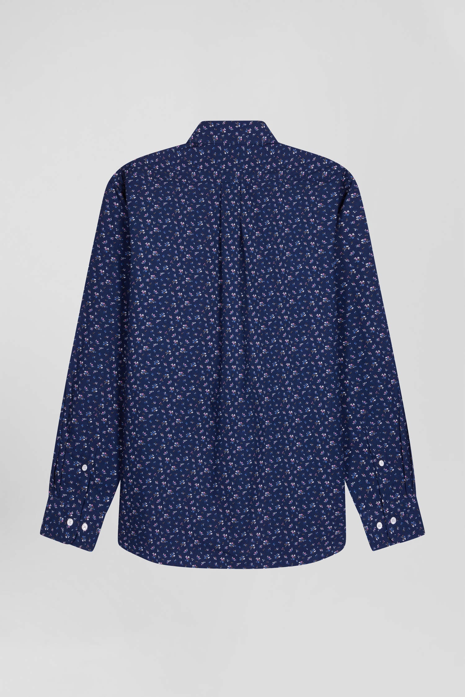 Chemise en popeline de coton bleu marine à microimprimé fleurs coupe Regular