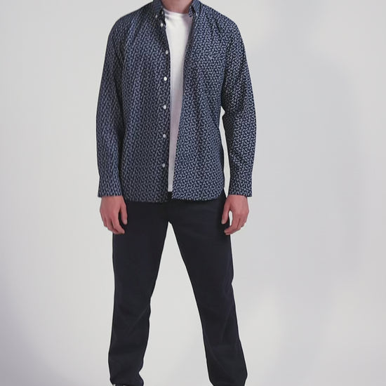 Chemise en popeline de coton bleu marine microimprimé nœud papillon coupe Regular