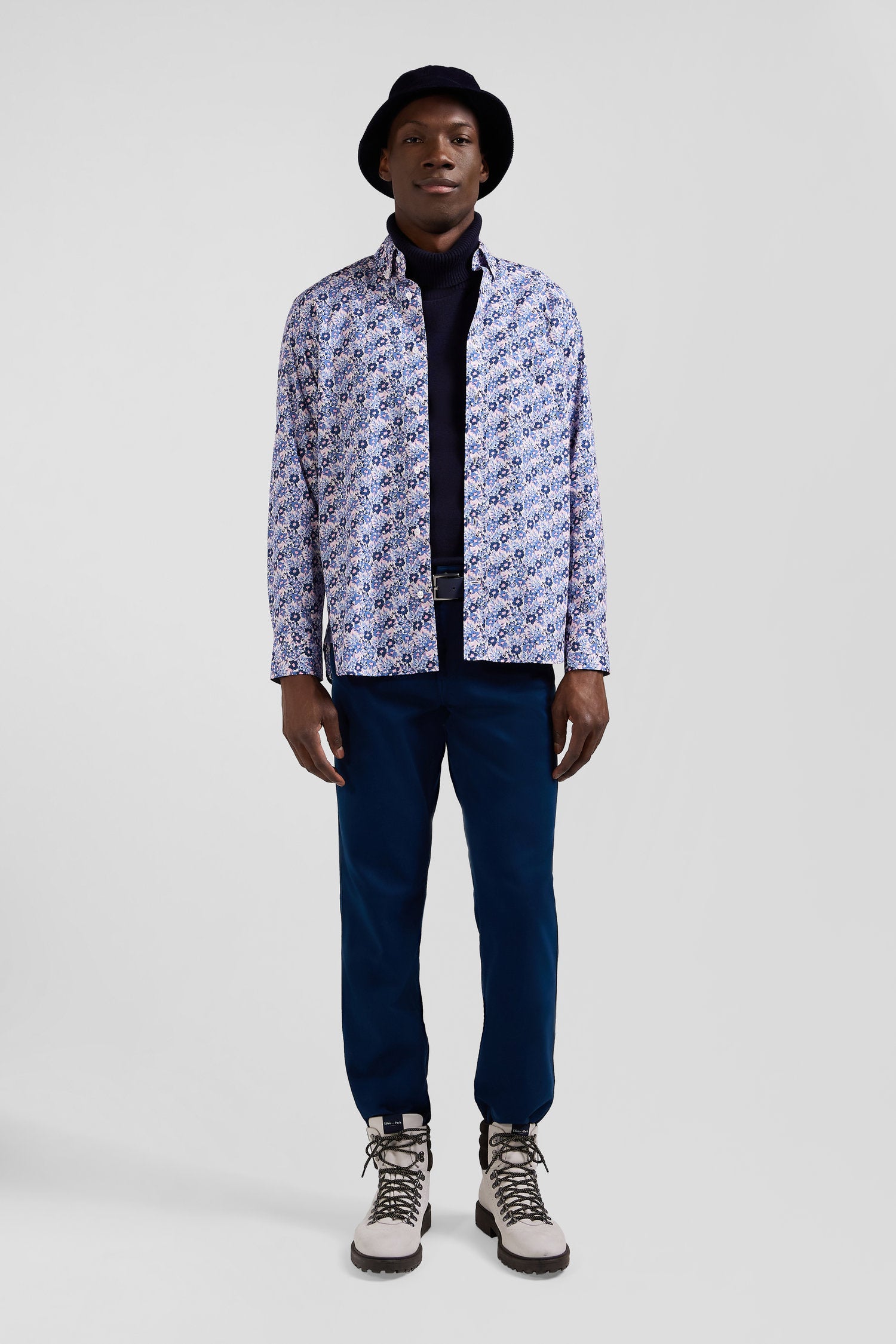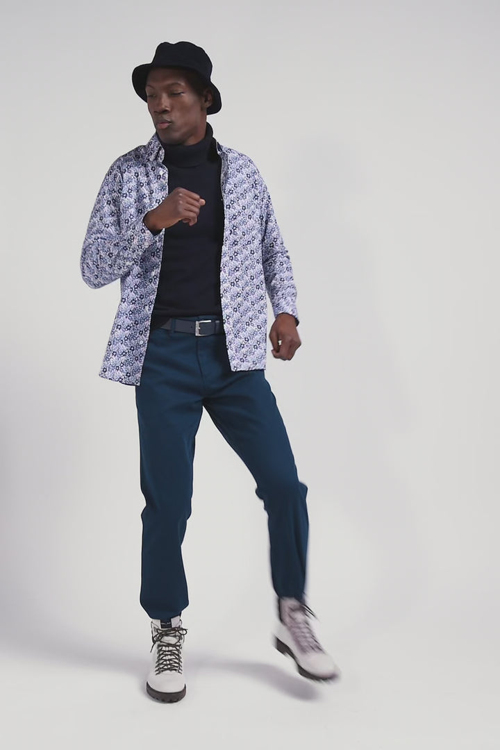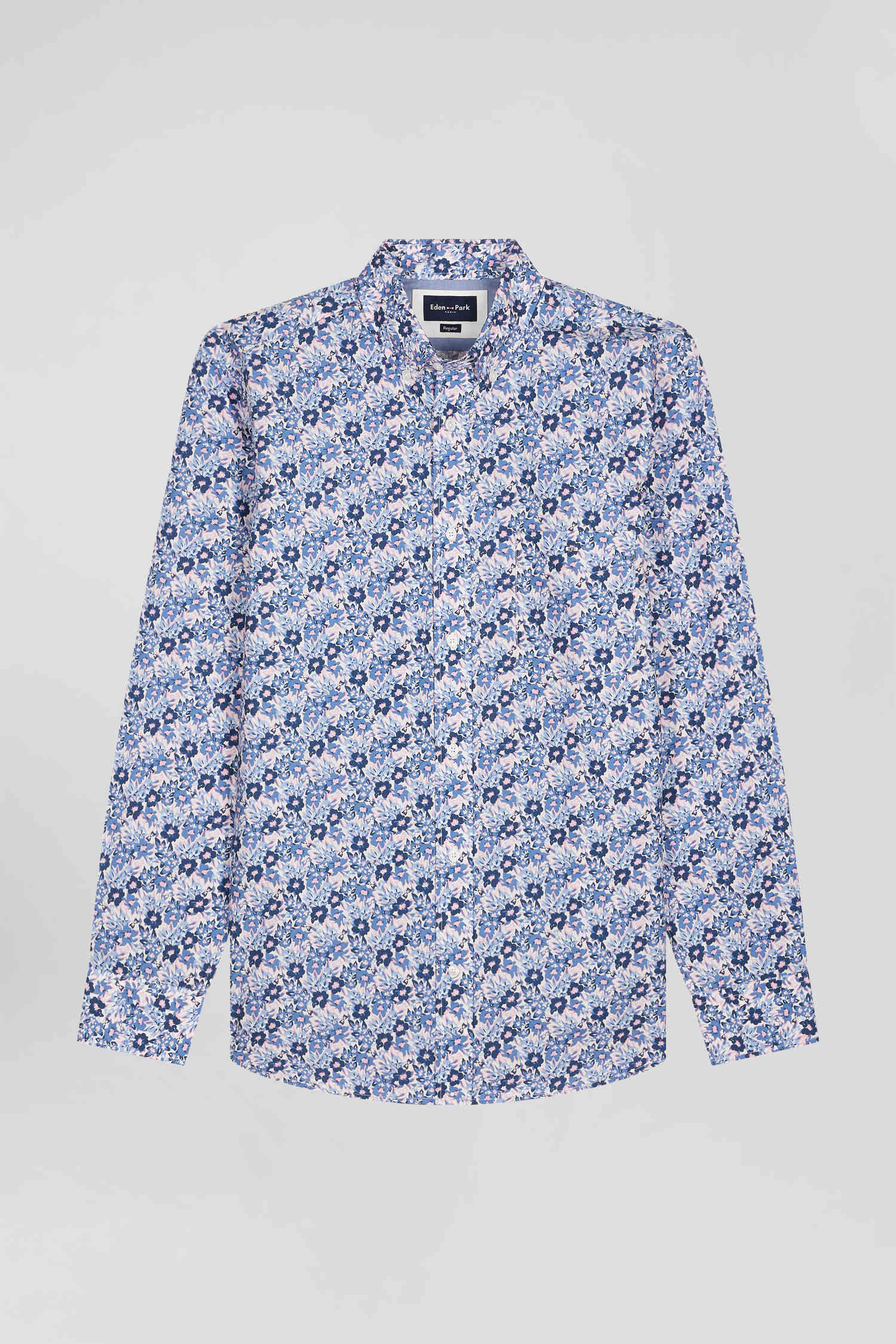 Chemise en popeline de coton bleue imprimé floral coupe Regular