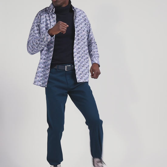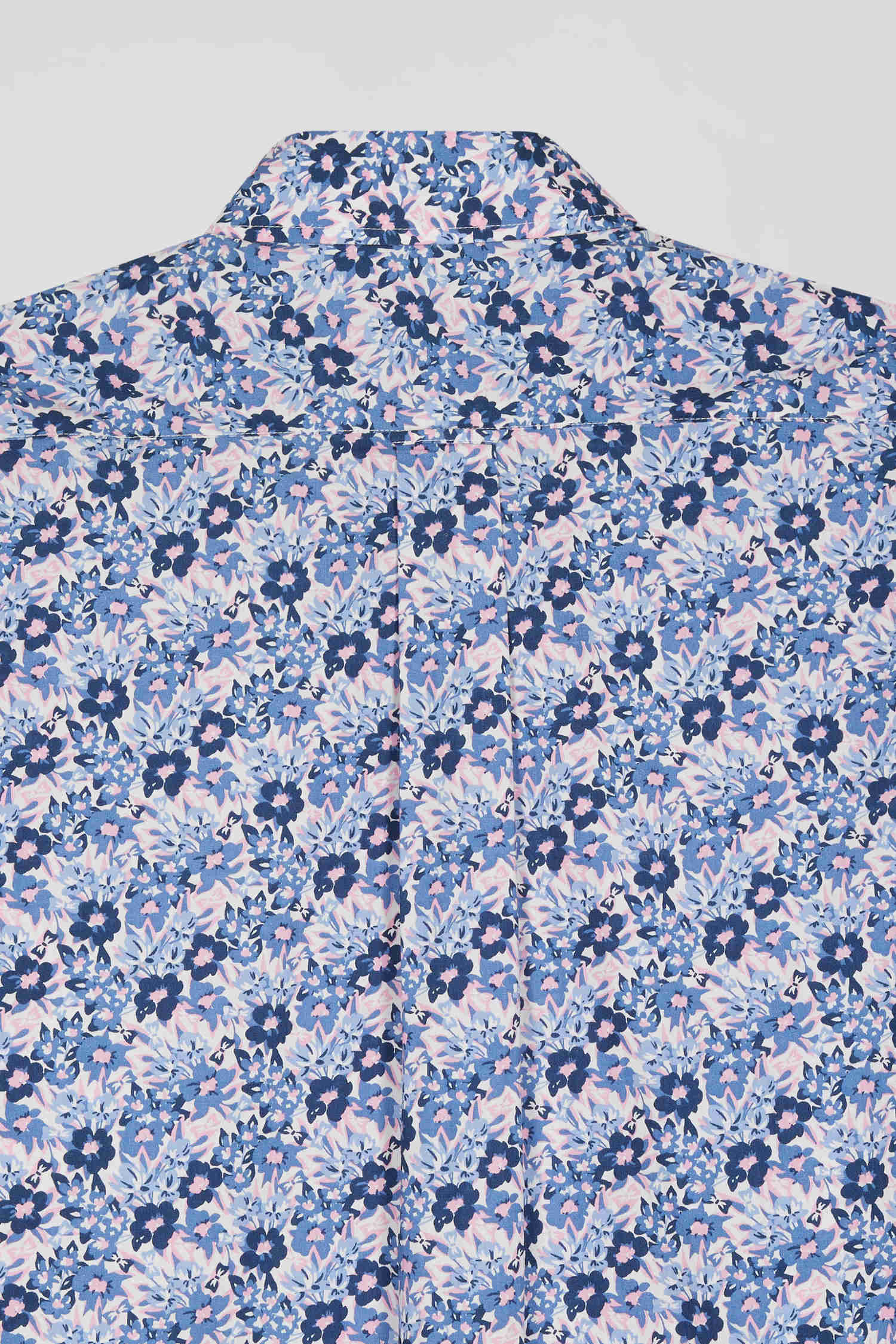 Cette chemise en popeline de coton douce est rehaussée d'un imprimé floral aux nuances bleues et roses où se cache notre emblème nœud papillon. Sa coupe Regular droite offre un confort optimal, tandis que son col à pointes boutonnées met parfaitement en valeur le port de tête.