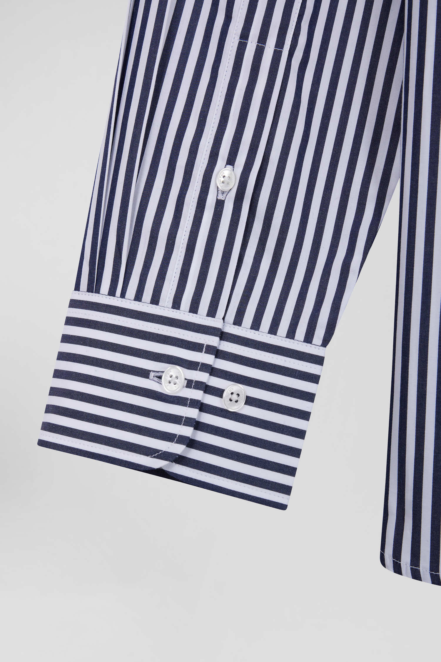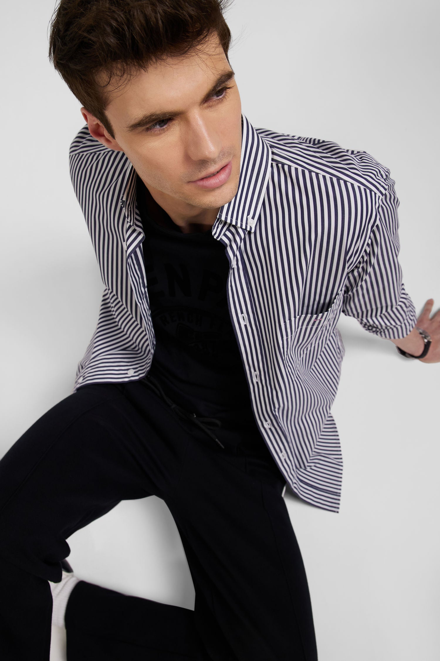 Pilier du vestiaire masculin, la chemise en popeline de coton rayée est un indispensable. En plus des intemporels coloris bleu ou marine, notre Maison en livre cette saison une interprétation colorée toujours dotée des finitions soignées Eden Park.