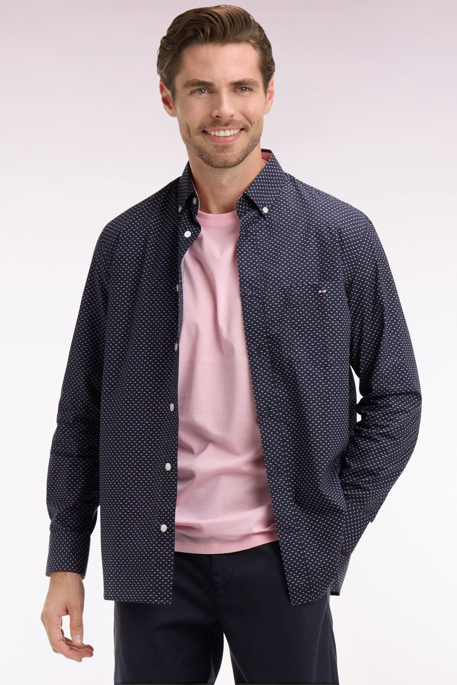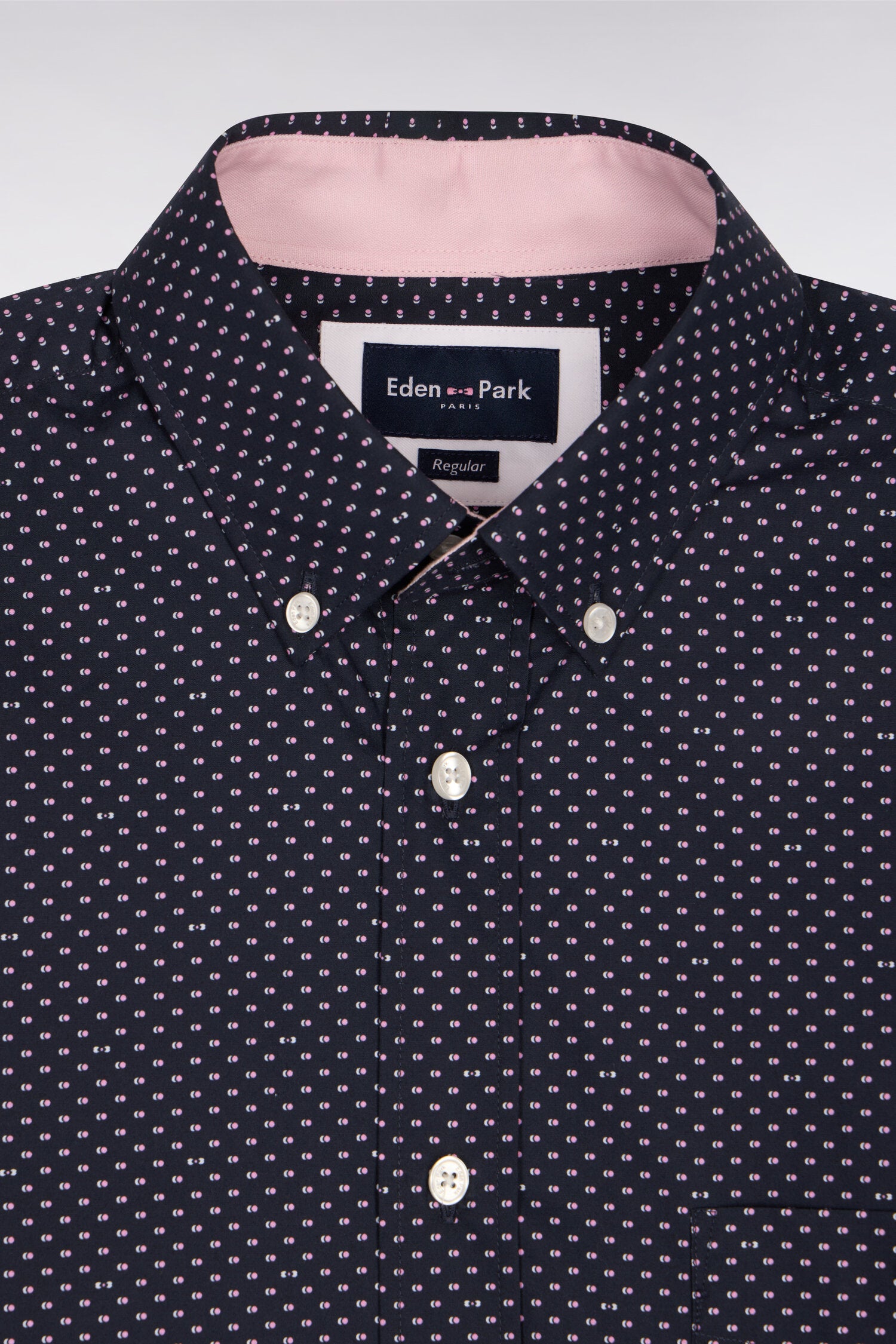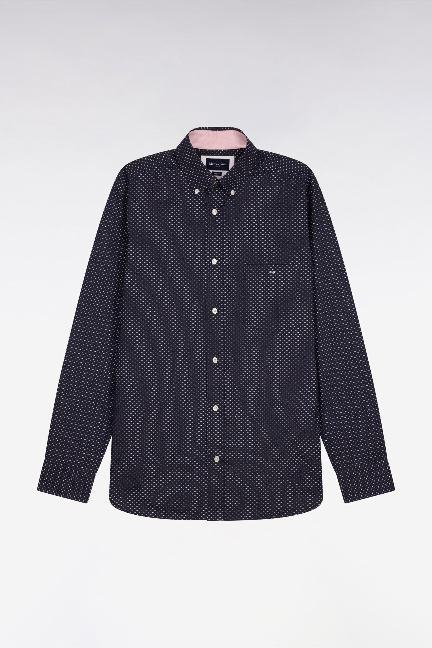 Chemise en popeline de coton rose à micromotifs coupe regular