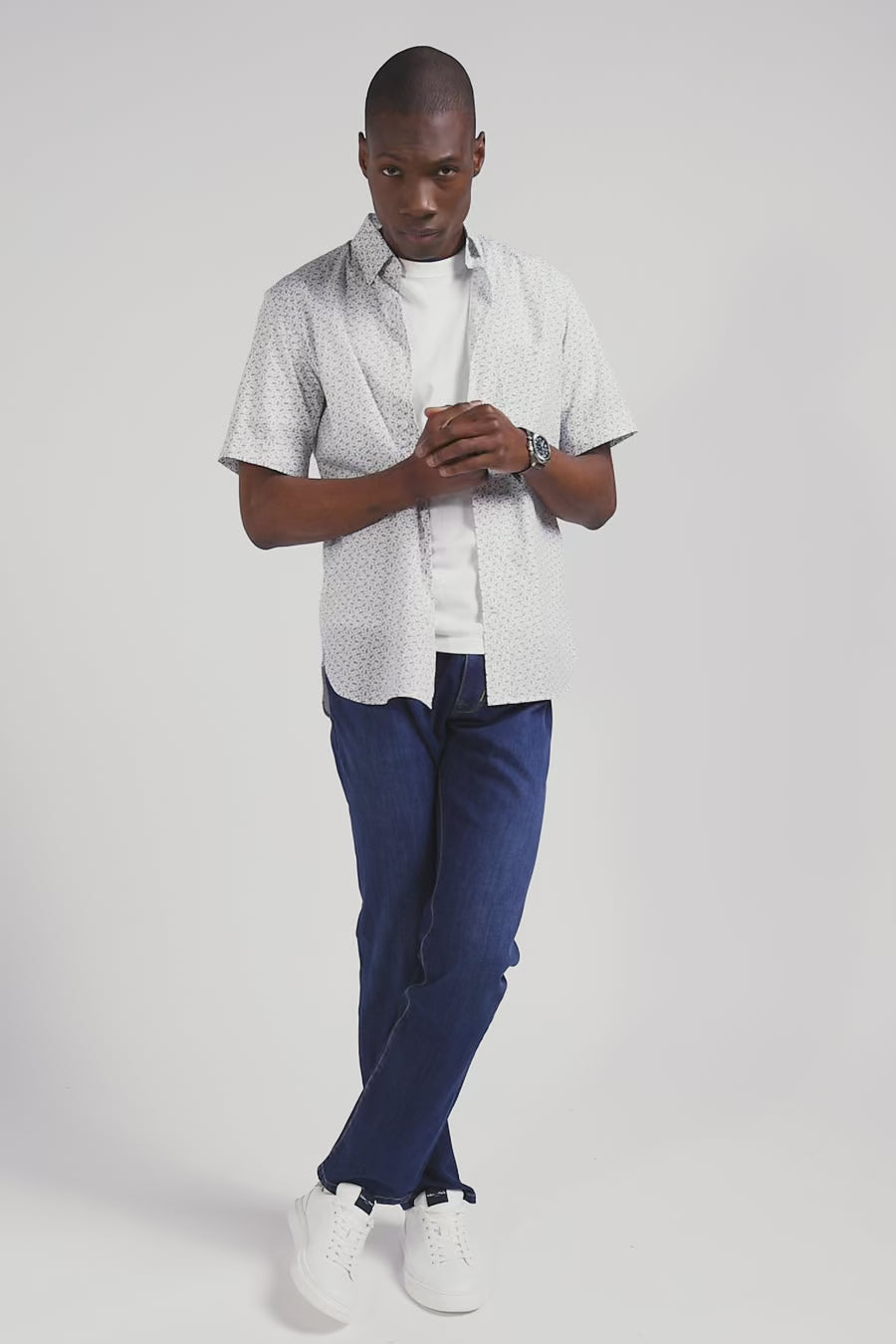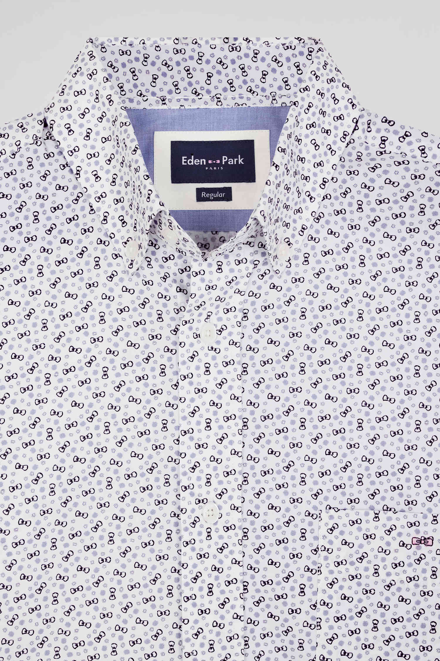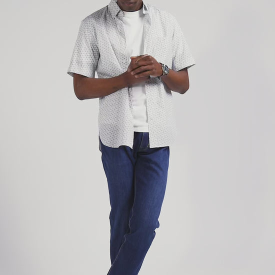 Chemise manches courtes en coton écru microimprimé coupe Regular