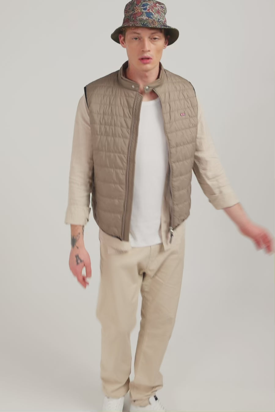 Cette doudoune sans manche est déperlante. Elle dispose d'un col montant fermé par bouton pression, de 2 poches raglan zippées avant et est rehaussée d'un noeud papillon en silicone sur la poitrine. Le garnissage de ce vêtement est réalisé entièrement à partir de fibres de polyester issues de bouteilles plastique recyclées