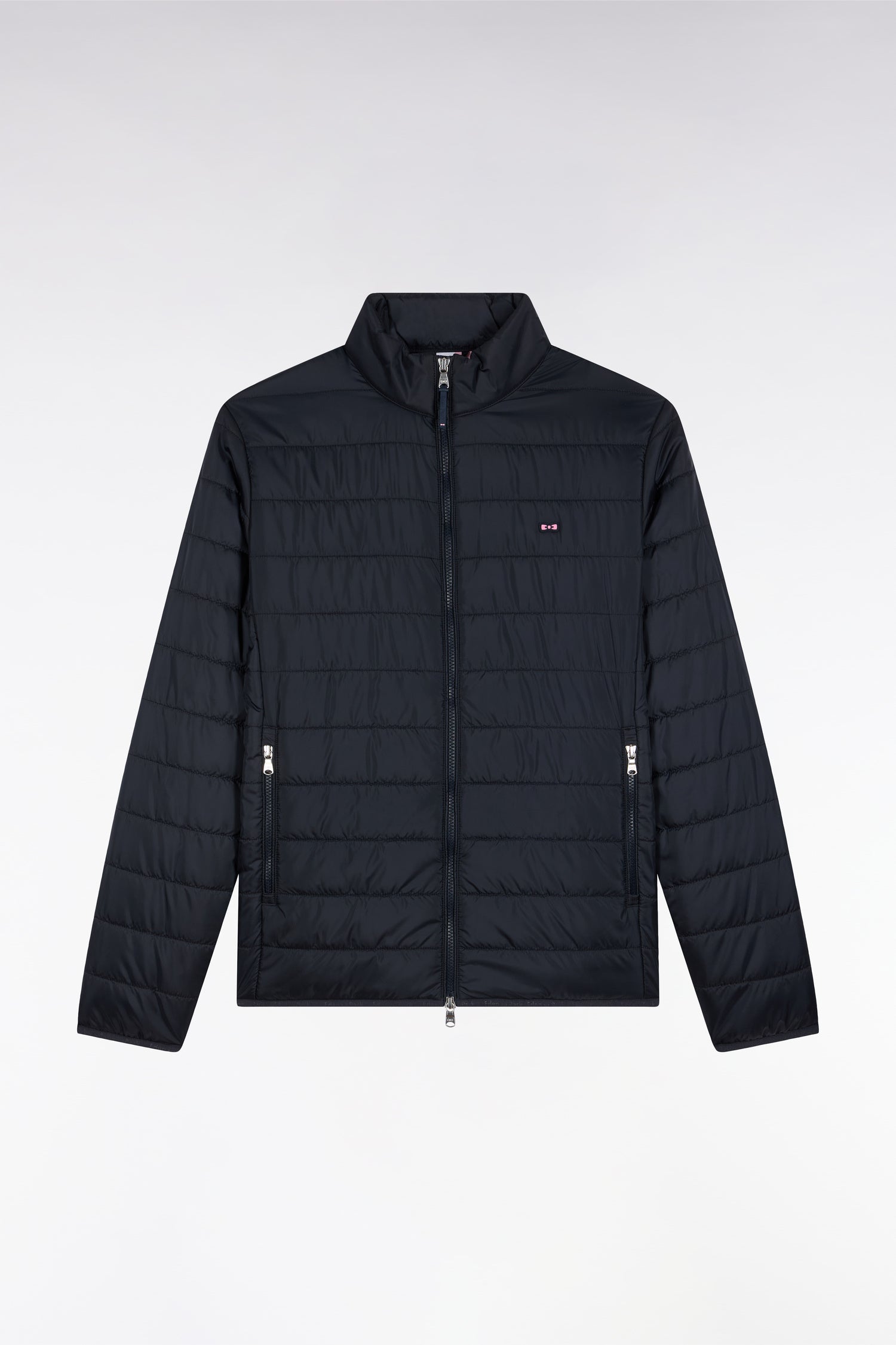 Notre doudoune déperlente en nylon matelassé à col montant est pensée pour conjuguer confort thermique et lignes épurées. Sa silhouette droite est structurée par une fermeture zippée à double curseur, un bas élastiqué twisté par un biais siglé et deux poches intérieures à scratch. Le nœud papillon en gomme et le ruban ottoman tricolore à l’encolure rappellent la signature French Flair d'Eden Park. Ce modèle classique existe en version doudoune sans manches