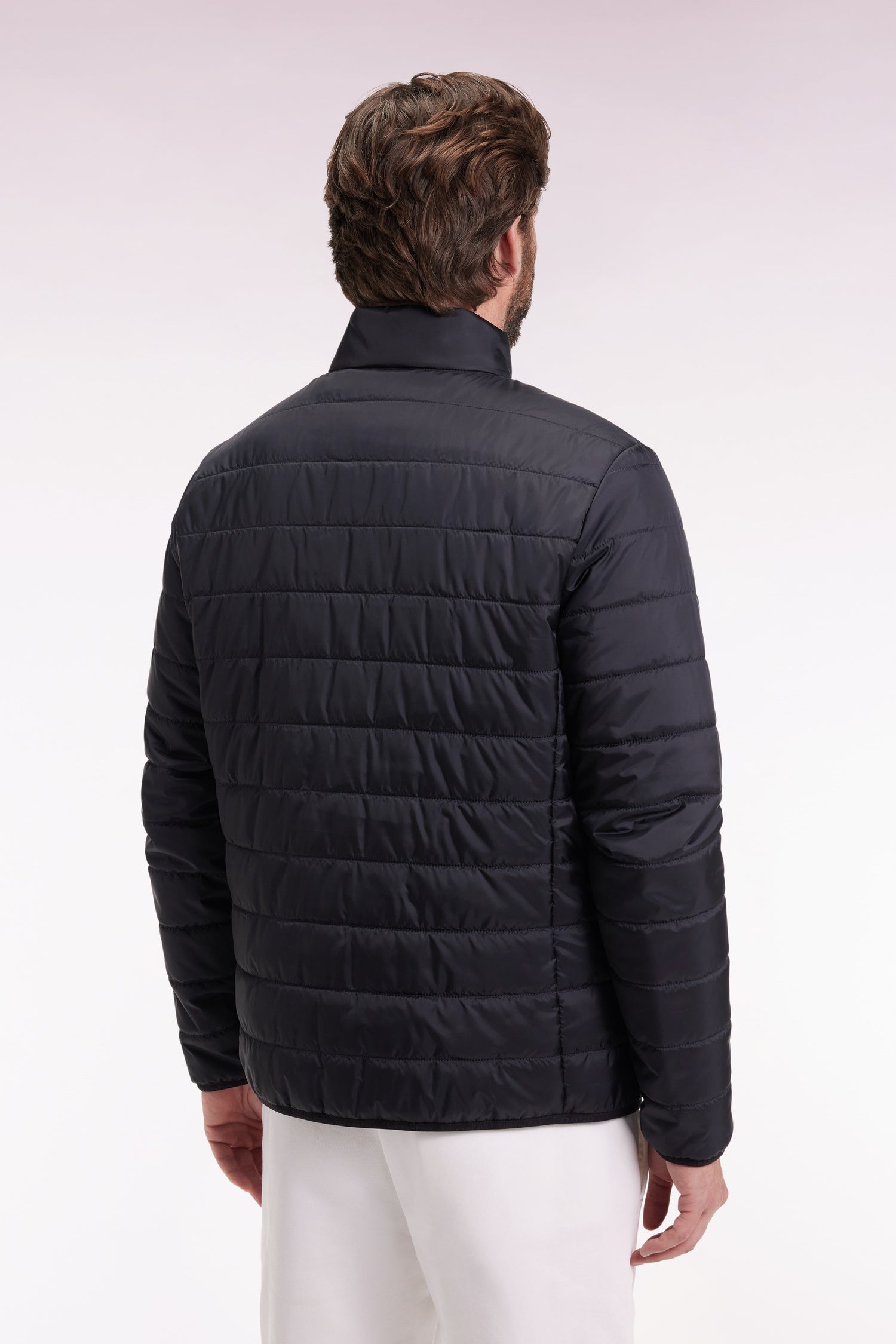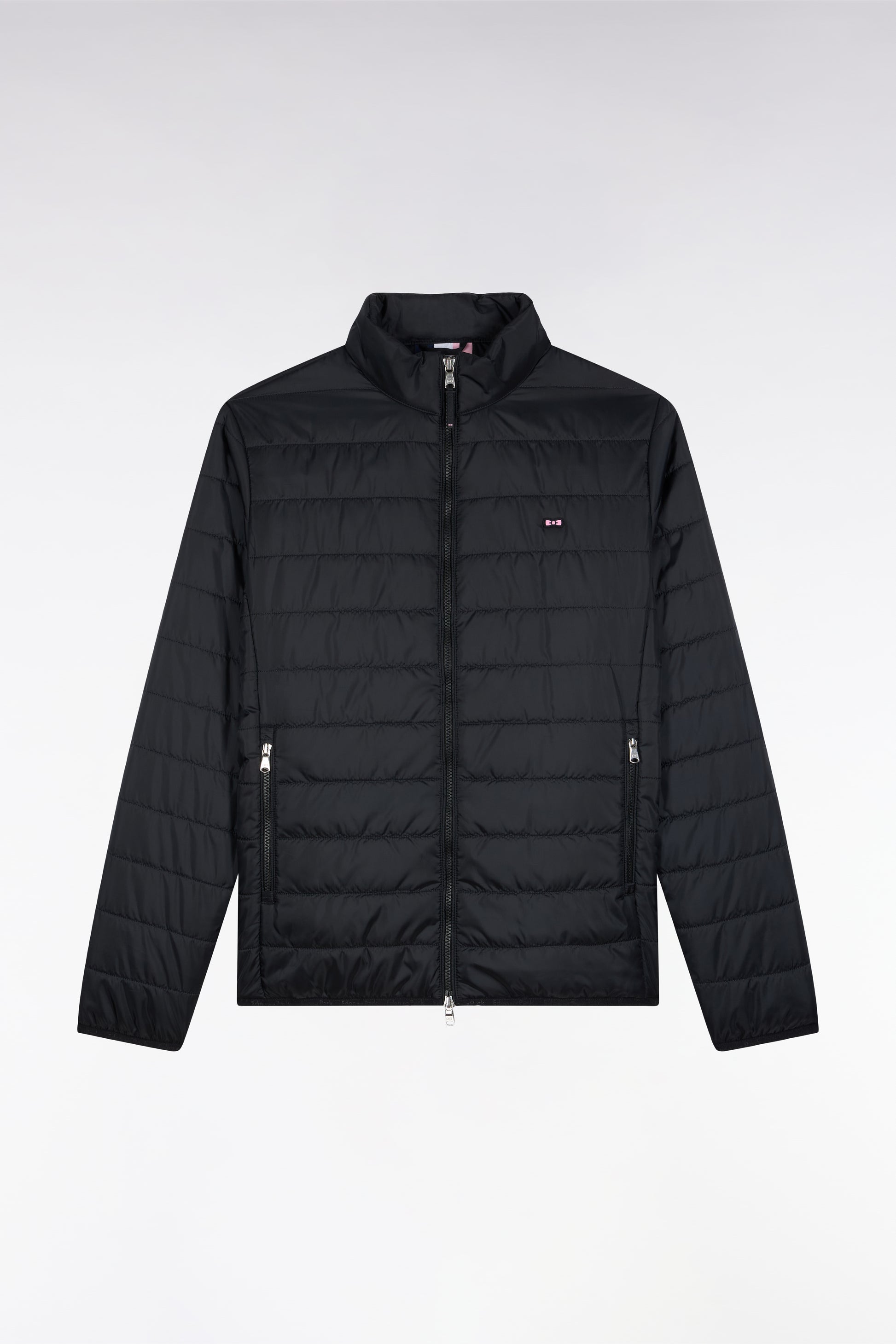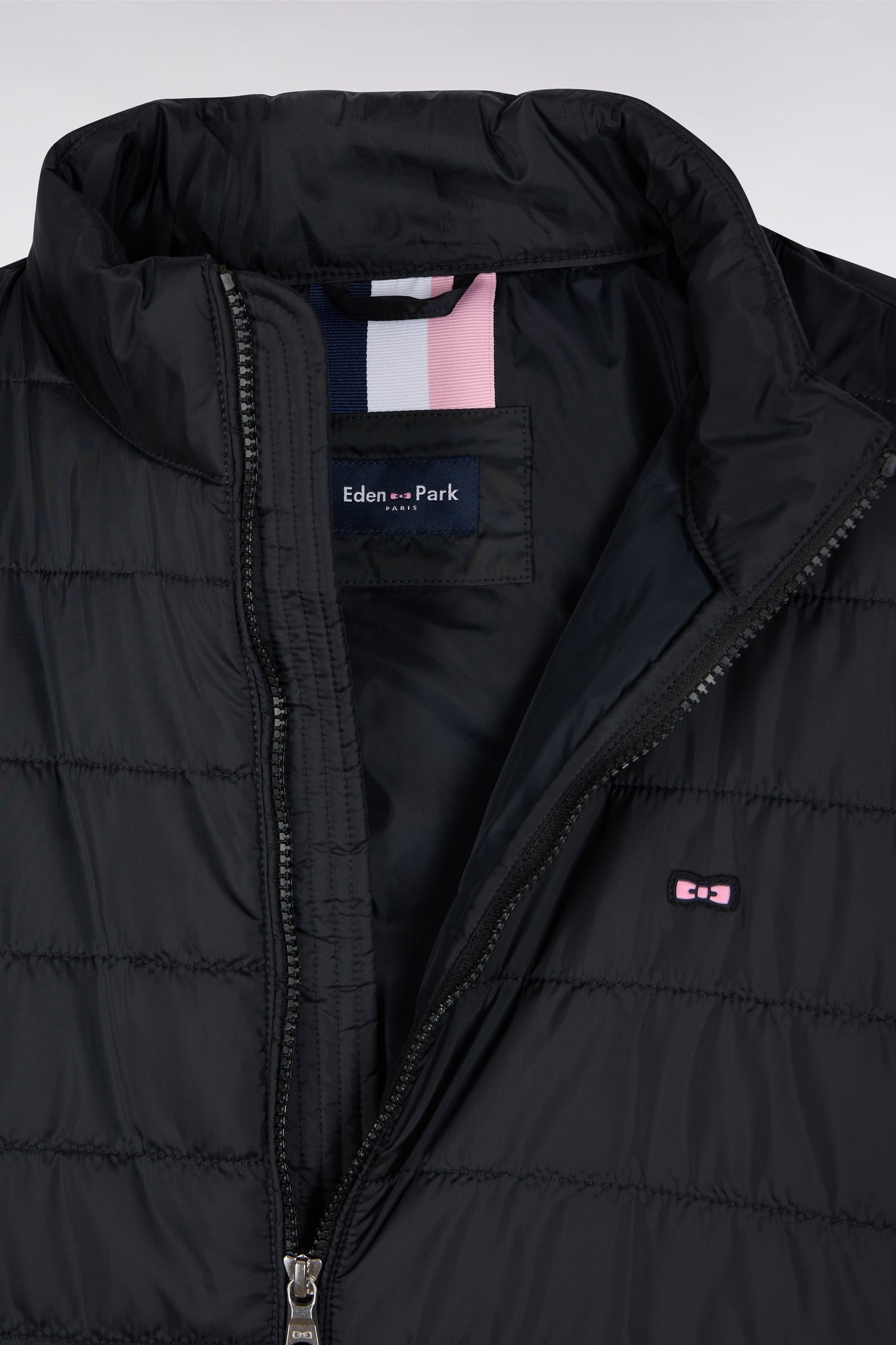 Notre doudoune déperlente en nylon matelassé à col montant est pensée pour conjuguer confort thermique et lignes épurées. Sa silhouette droite est structurée par une fermeture zippée à double curseur, un bas élastiqué twisté par un biais siglé et deux poches intérieures à scratch. Le nœud papillon en gomme et le ruban ottoman tricolore à l’encolure rappellent la signature French Flair d'Eden Park. Ce modèle classique existe en version doudoune sans manches