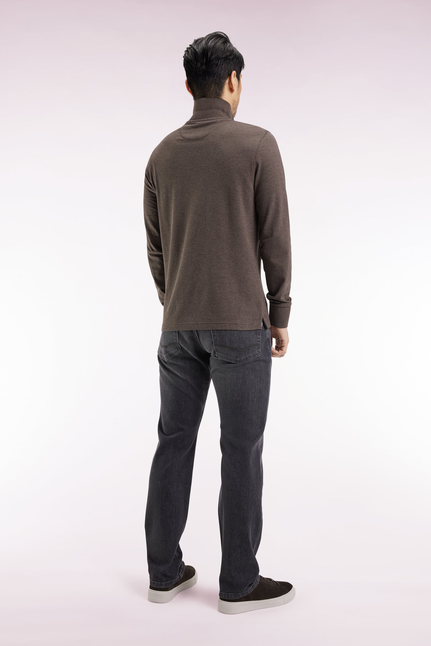 Polo à manches longues en coton chiné marron coupe droite