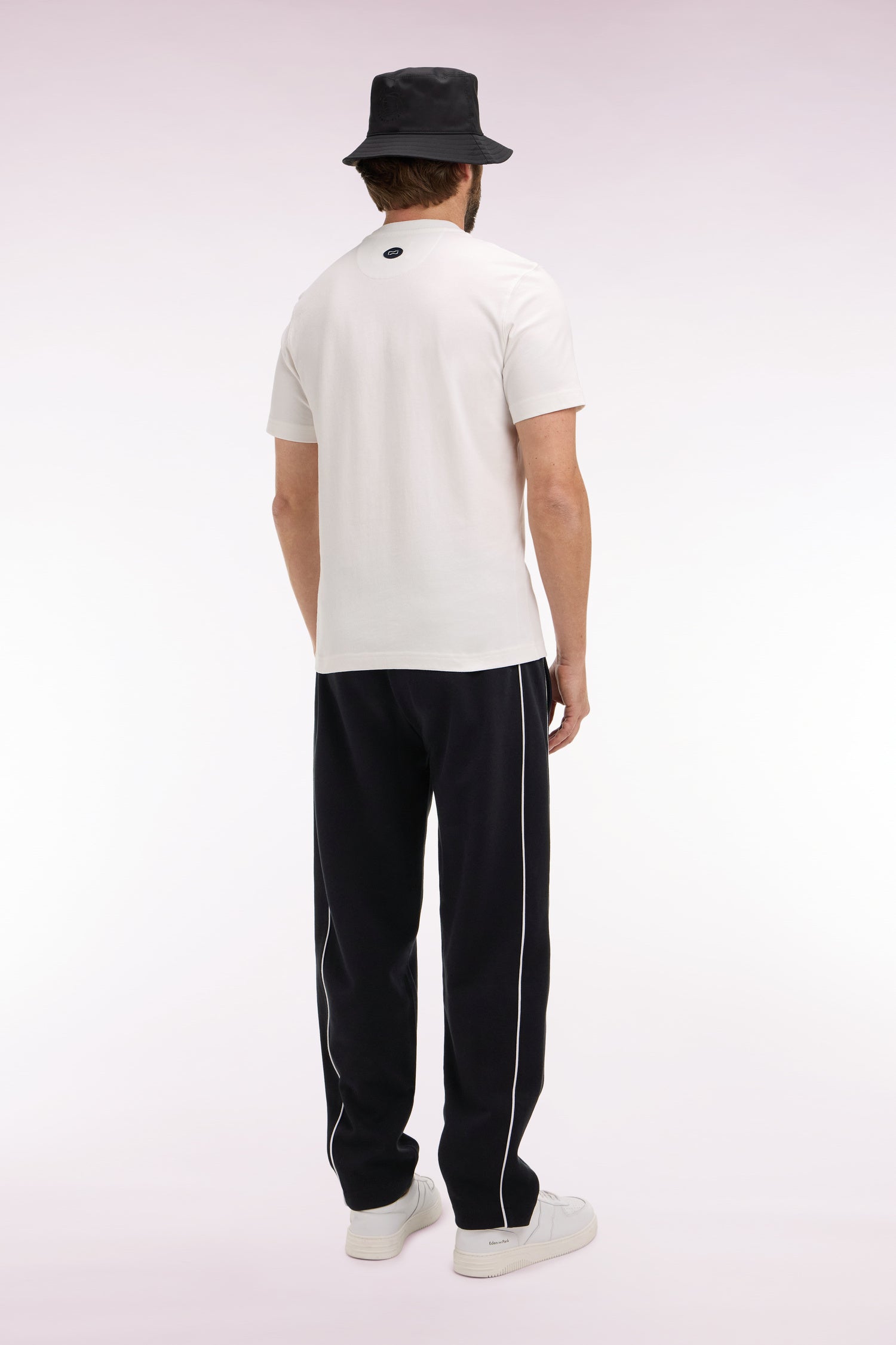 Ce pantalon de jogging masculin réalisé en interlock marine ou noir est conçu pour être porté avec le sweatshirt zippé assorti, promesse d'une allure athlétique. Plus épais que le jersey, il offre chaleur et douceur. Les détails soignés, comme le badge en gomme aligné avec la poche et les passepoils contrastés le long des jambes, soulignent l’attention aux détails propre à notre Maison. Sa ceinture élastique et son cordon de serrage assurent un ajustement parfait pour un style confortable et travaillé à la fois. En été, associez-lui simplement un tee-shirt ou un polo à manches courtes dans un piqué coton assorti.