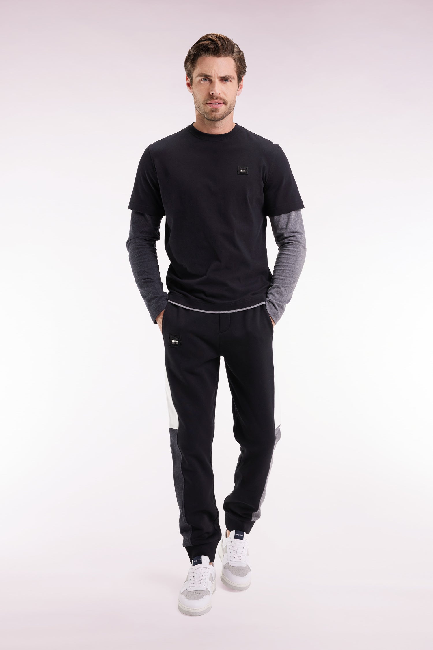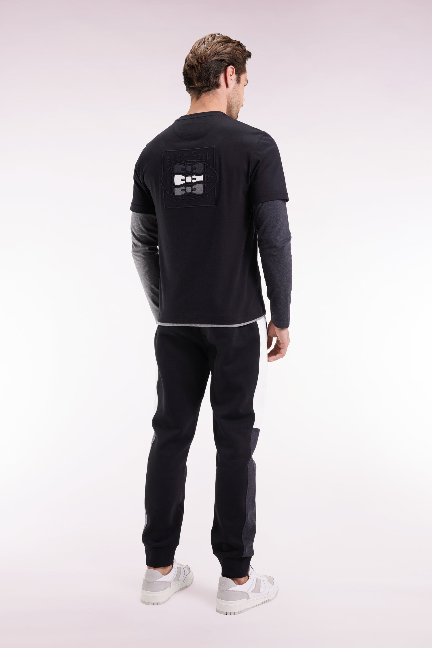 Ce jogging homme en coton molletonné se pare de bandes contrastées le long des jambes pour une touche graphique, rappel des associations colorblock propres au vestiaire Eden Park. Idéal à associer à un sweatshirt, maillot ou T-shirt assorti pour une silhouette sport-chic. Un modèle offert en noir ou marine aux bandes contrastés dans des tonalités grises et écrues ou rose et ciel