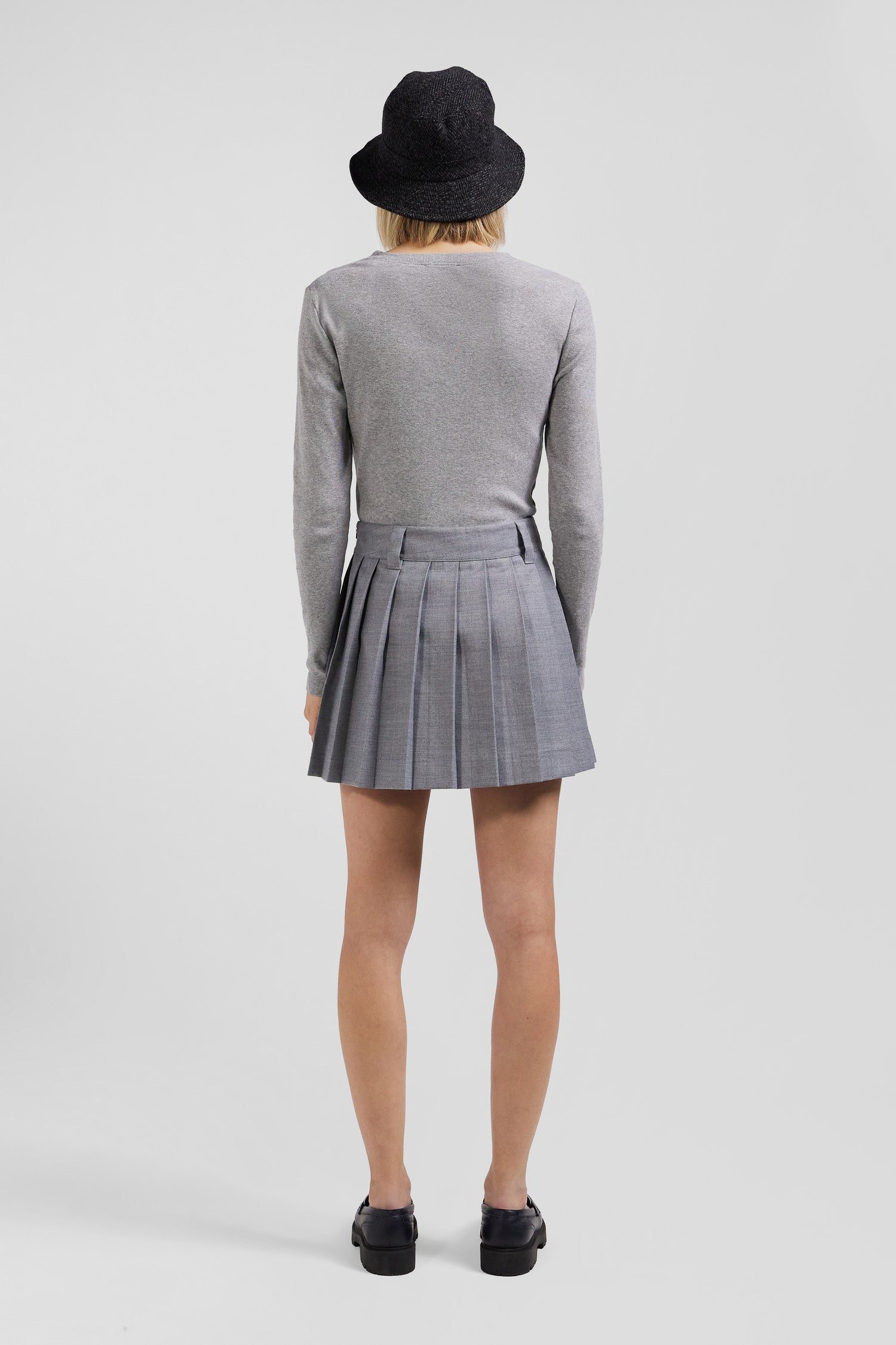 Jupe plissée en laine mélangée grise