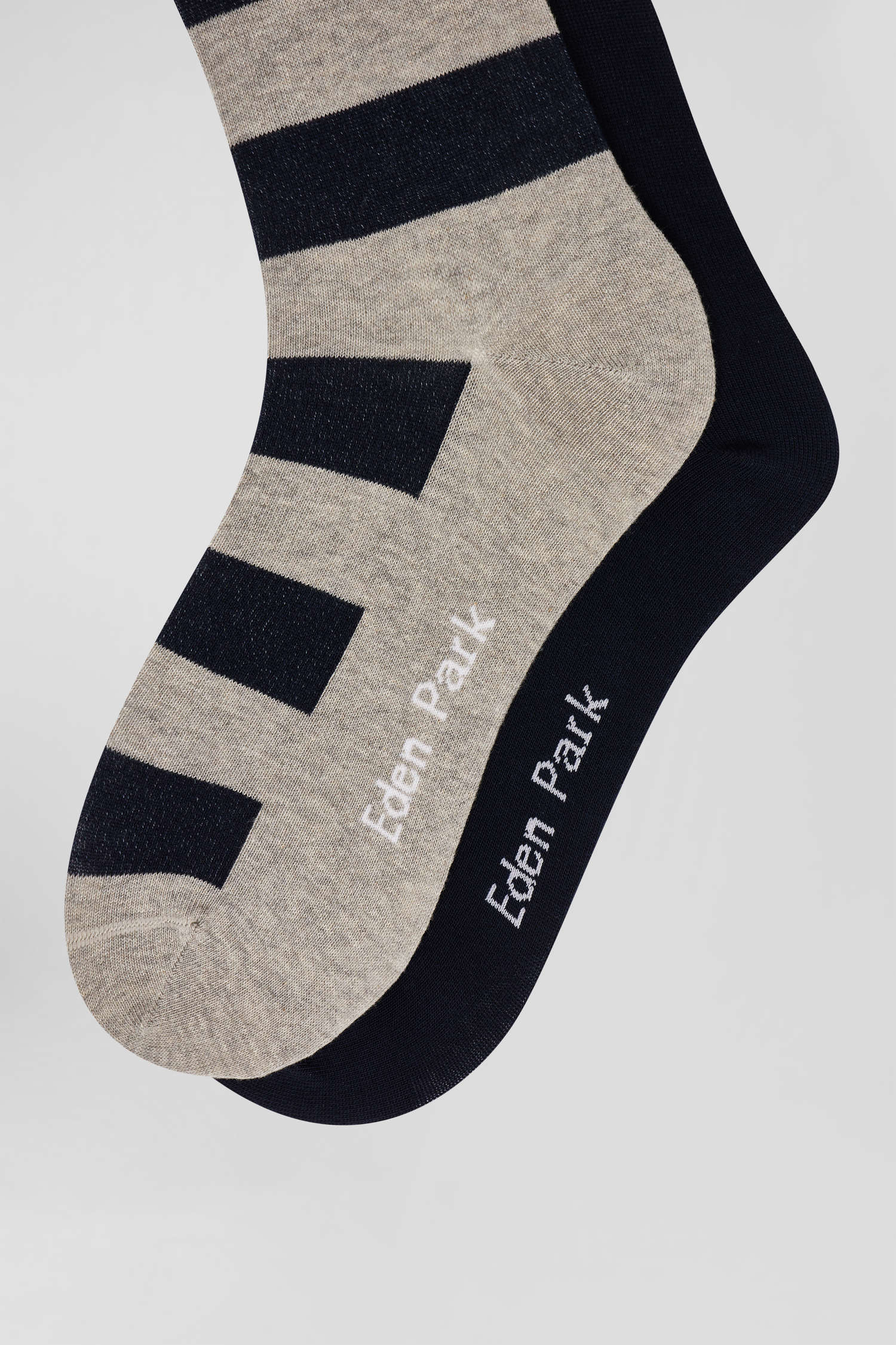 Lot de 2 paires de chaussettes cerclées gris et marine en coton stretch