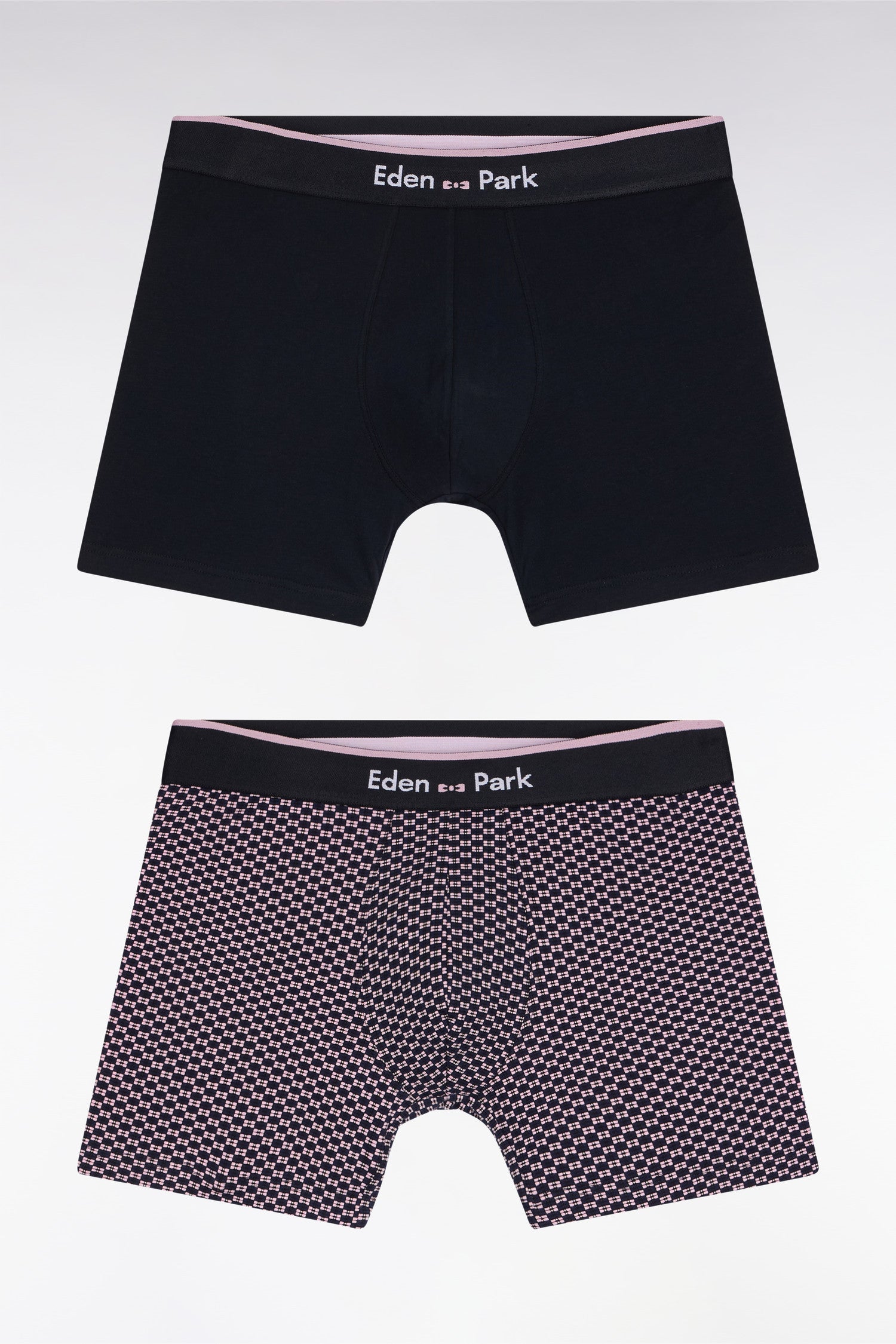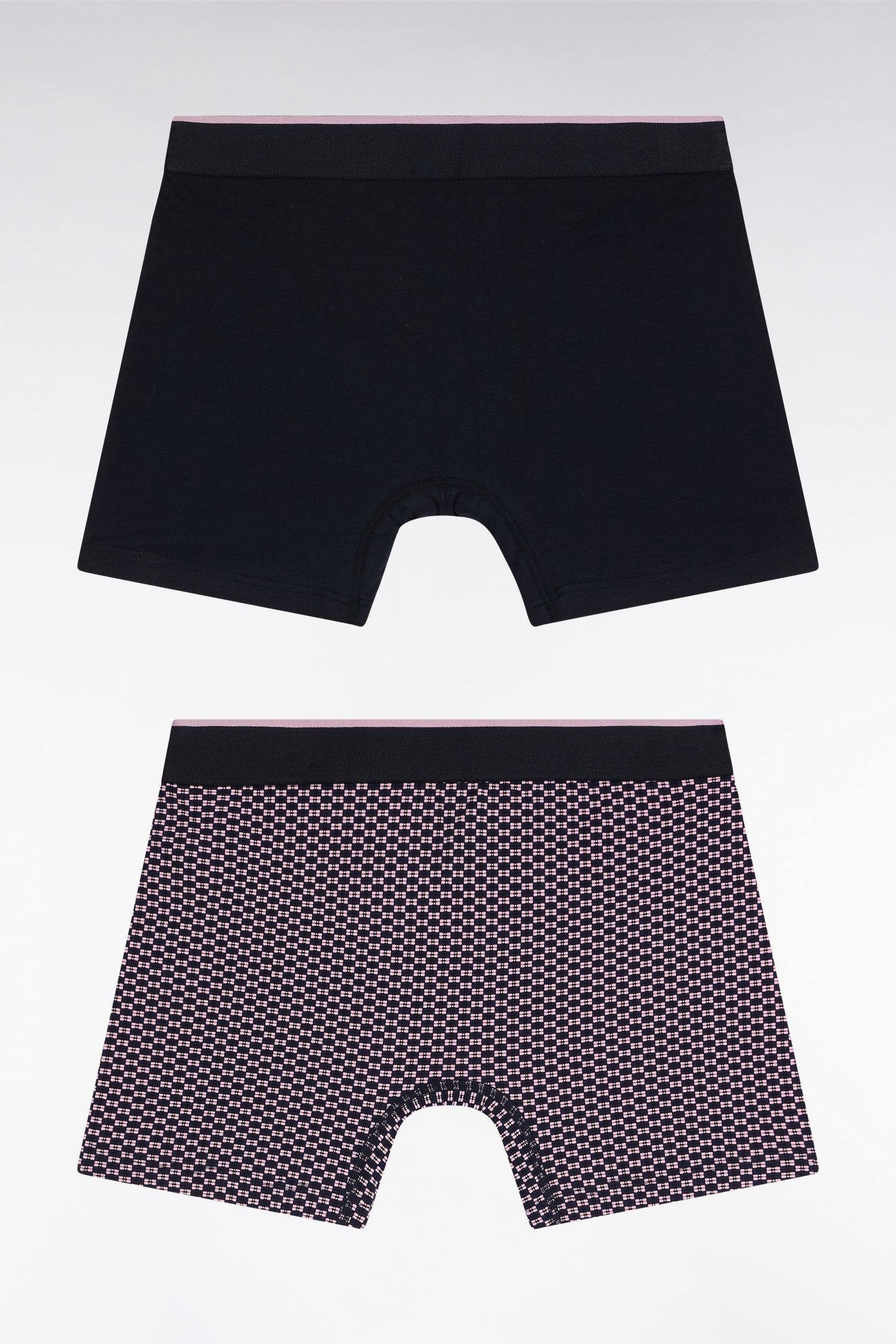Lot de deux boxers en jersey de coton stretch uni et micro-motifs marine et rose