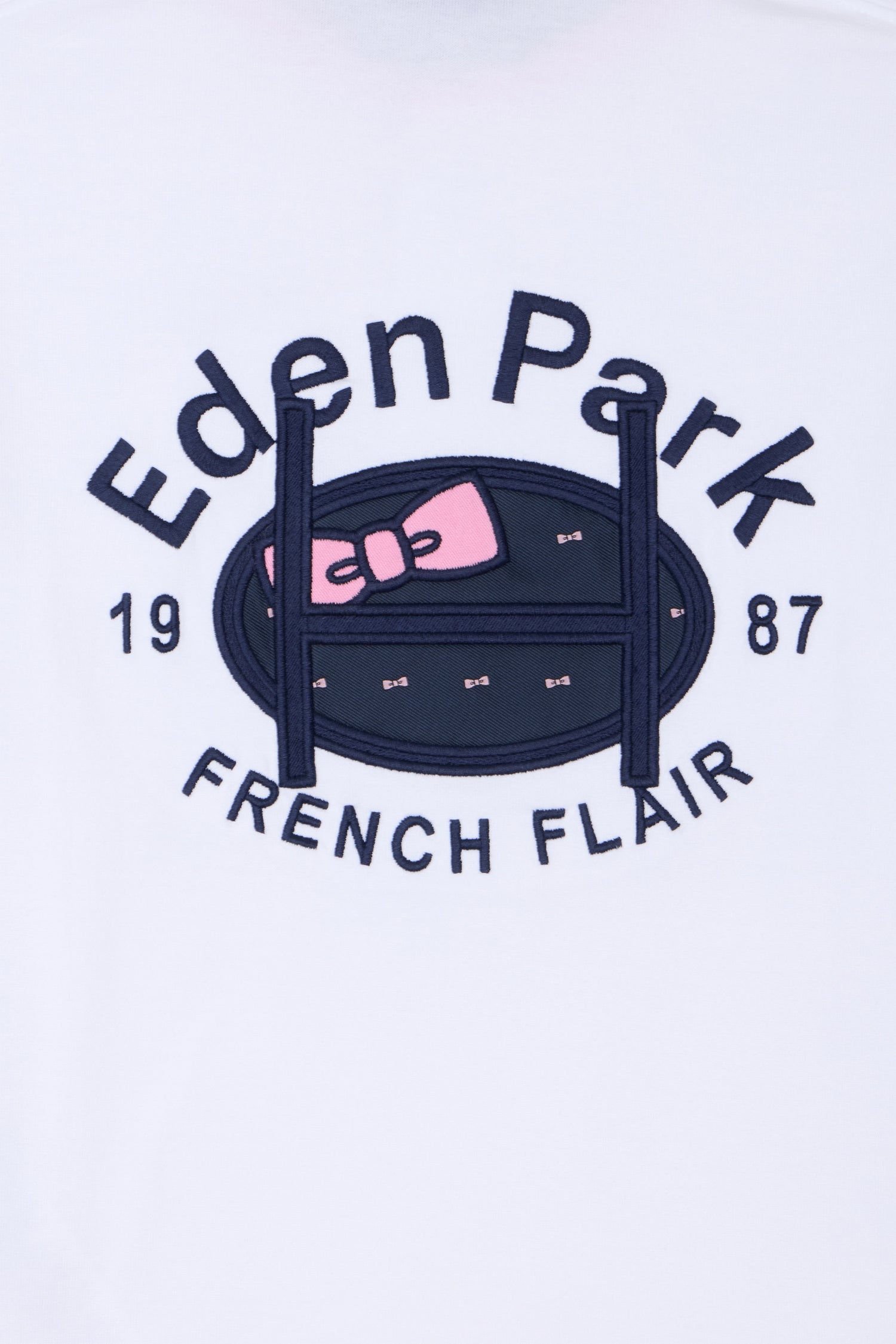 Pour ce maillot enfant à manches courtes, notre Maison a sélectionné un coton Pima, doux et résistant et une coupe droite facile à vivre. Ce modèle inspiré du vestiaire adulte reprend les codes signatures de la Maison dans une version adaptée au quotidien des plus jeunes. Le tissu cravate imprimé du nœud papillon Eden Park placé sous le col apporte une touche raffinée, visible lorsque l’enfant porte son maillot le col relevé. Une pièce pleine de caractère, confortable au quotidien.