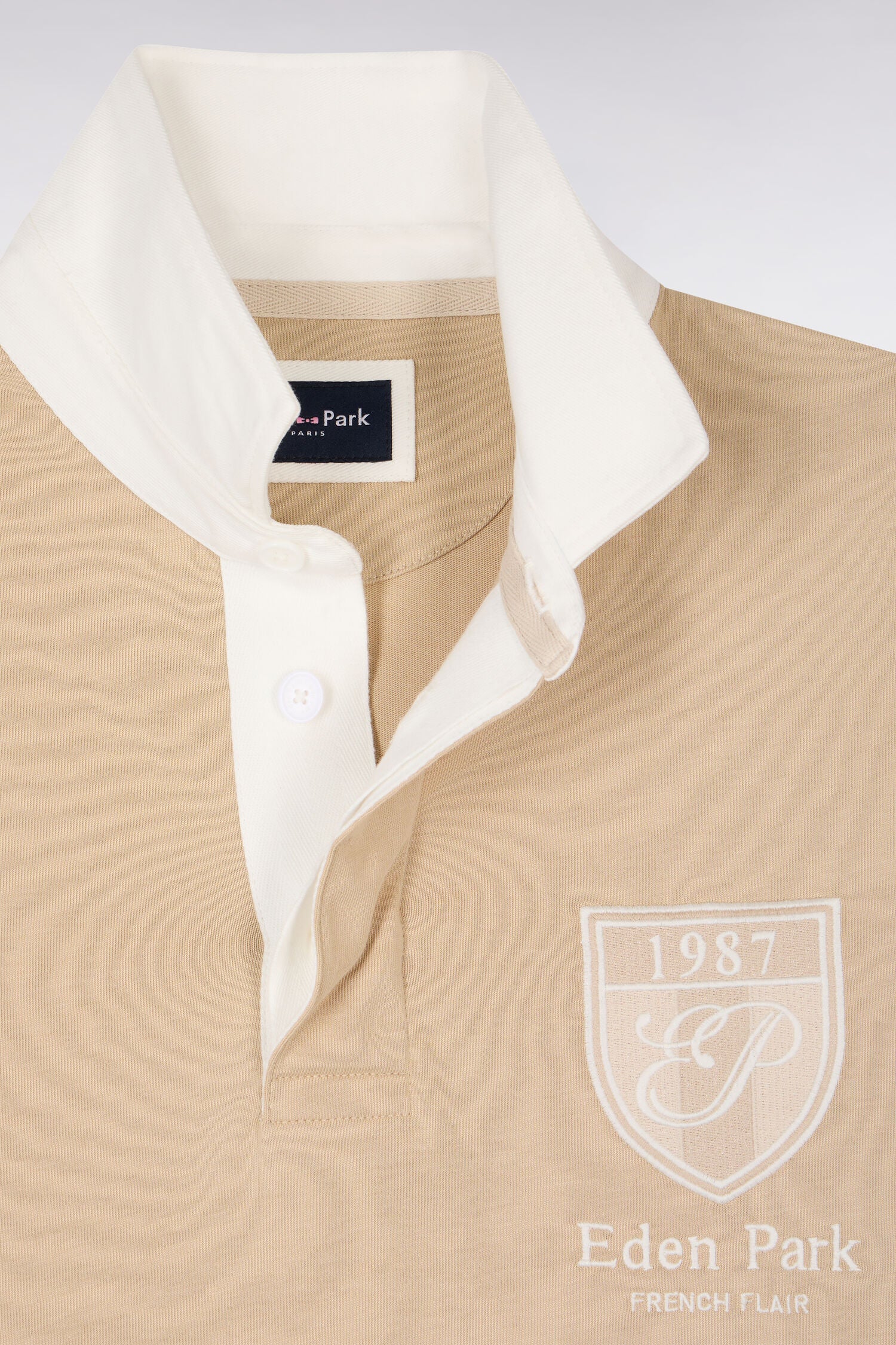 Dans une version chic revisitée dans le colorama pastel de notre ligne Héritage, ce maillot uni en jersey de coton ciel, rose ou beige met en lumière une broderie Eden Park raffinée aux accents vintage, mentionnant la date de fondation d'Eden Park. Il signe immédiatement son appartenance au vestiaire sport-chic de notre Maison française. Le col maillot structuré écru et les boutons ovales rugby complètent sa silhouette nette. Un essentiel moderne, parfait pour incarner l’élégance sportive du vestiaire masculin. À porter avec un short ou un chino pour une allure plus preppy.