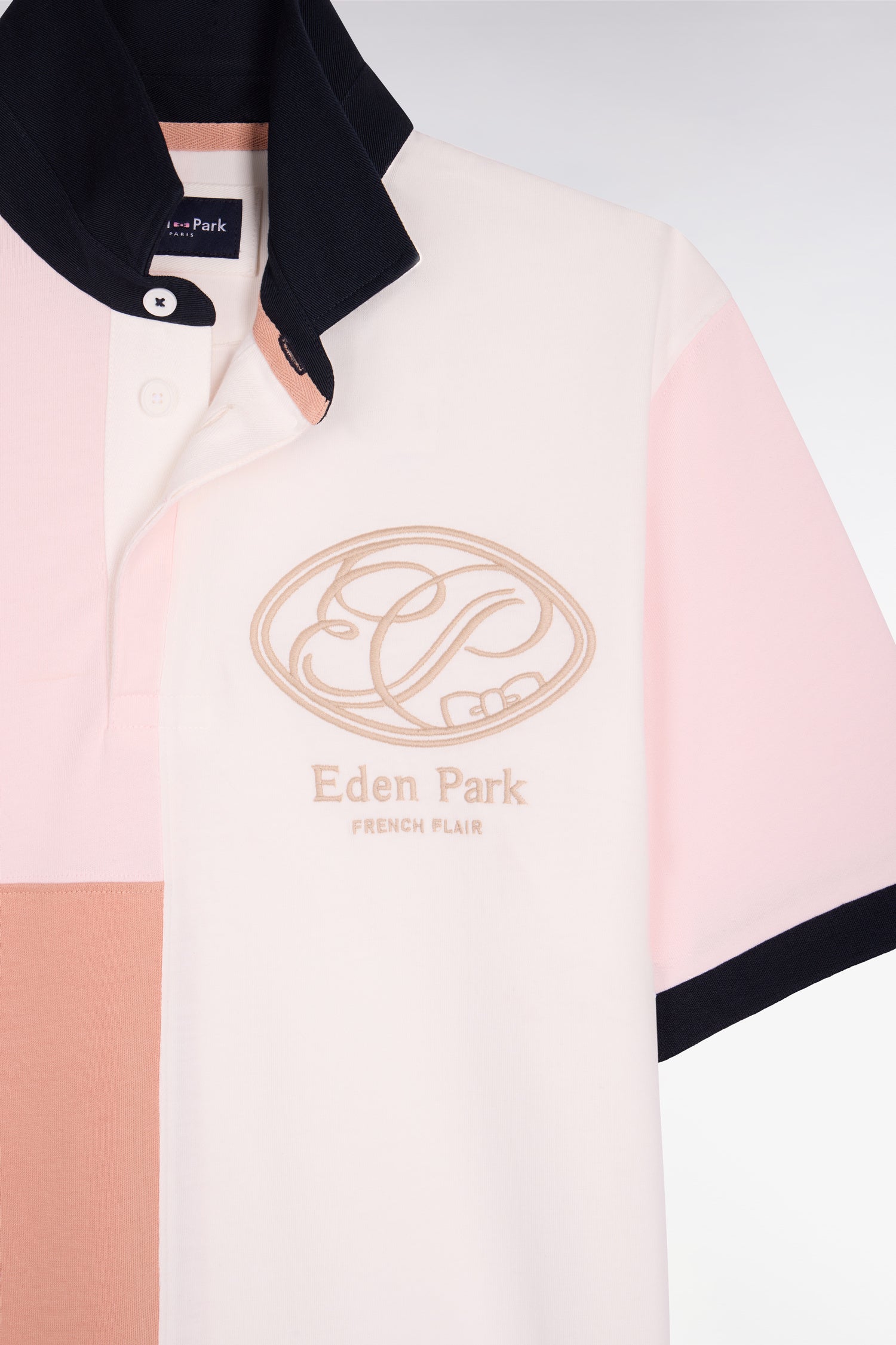 Ces maillots colorblock associent les coloris Eden Park à des notes pastel pour un style doux et graphique. Le col maillot contrasté, rappelé par les bordures de manches tricotées, les boutons ovales inspiré des ballons de rugby et la broderie poitrine d'inspiration sportive légèrement vintage confirment son identité sport chic. Une pièce originale, idéale pour dynamiser un vestiaire masculin printanier.