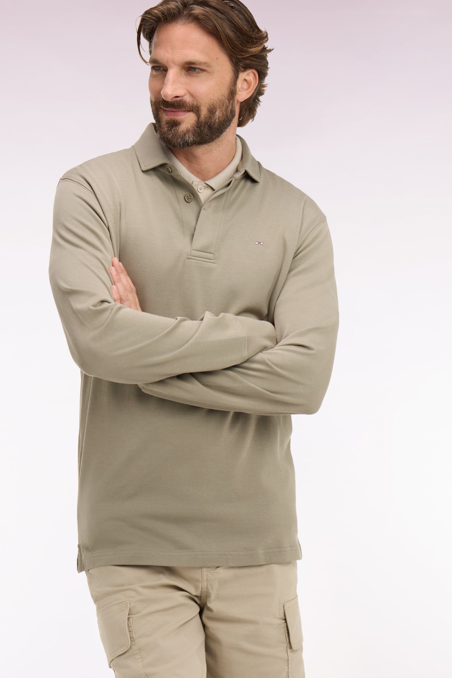 Ce maillot à manches longues en jersey de coton Pima incarne l’élégance décontractée chère à la Maison tout en soutenant une mode plus écoresponsable, le coton Pima étant une fibre naturelle à la culture plus économe en eau. Doux et résistant, il offre un confort durable saison après saison. Doté d’une coupe regular droite et d’un col maillot, il se distingue par ses poignets en bords-côtes et ses boutons ovales inspirés du ballon de rugby, signature emblématique Eden Park. Orné de notre nœud papillon brodé sur la poitrine, ce modèle iconique se décline dans une large palette de coloris pour accompagner chaque journée avec style et confort.