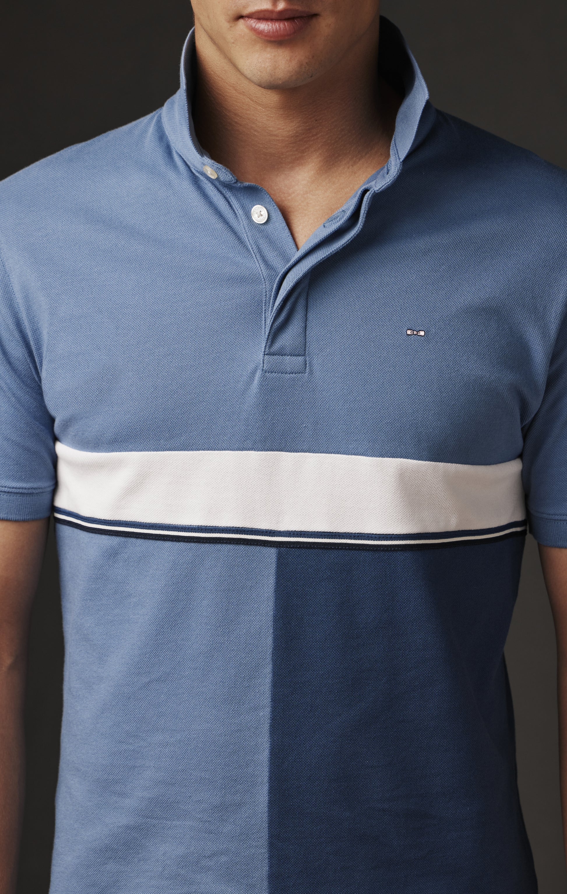 Pour ce maillot manches courtes de notre nouvelle capsule Pap’Atelier, notre atelier parisien a imaginé un jeu graphique en miroir d'un second modèle. L'un et l'autre sont conçus à partir de deux maillots en jersey de coton stretch, l’un bleu clair, l’autre bleu foncé, soigneusement prélevés dans nos archives. Chaque modèle associe ces teintes en inversant leur placement pour créer un contraste inédit. Découpés puis réassemblés en patchwork, les panneaux sont rehaussés d’un galon rayé et d’une bande blanche, tous deux issus de nos stocks dormants. Ce modèle au haut du corps bleu clair unique, disponible uniquement en taille M et en un seul exemplaire sur notre site pour une durée limitée, illustre l’engagement d’Eden Park à sublimer chaque ressource et à proposer une mode durable au style singulier.