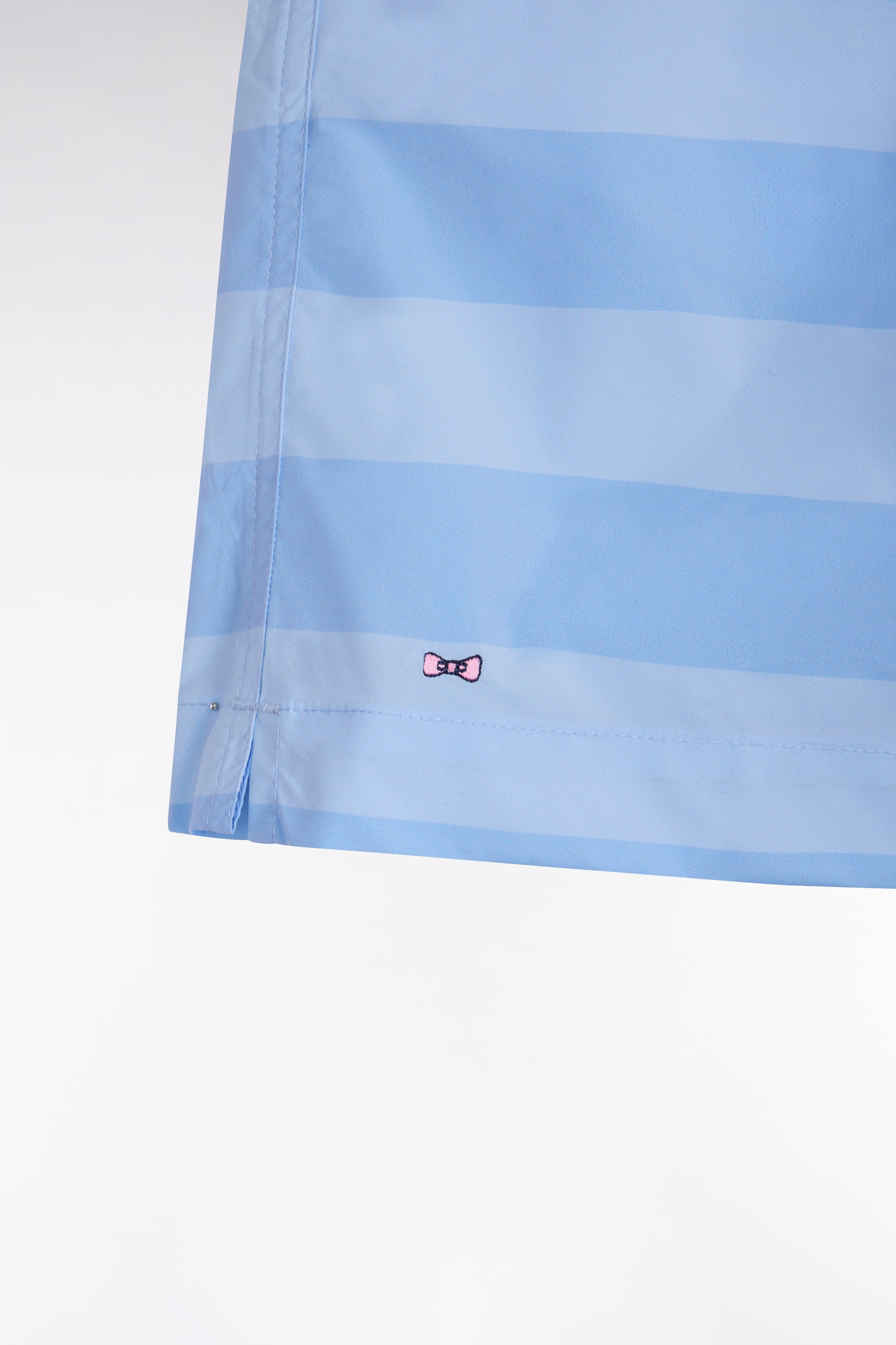 Ce short de bain pour homme se distingue par ses rayures horizontales, hommage appuyée en toute élégance aux codes du rugby. Travaillé dans une version en camaïeu pour plus d'originalité et d'élégance il se décline en ciel ou en marine, nos coloris signature . Ce maillot de bain ne laisse pas le style sur le banc de touche surtout associé à la serviette de plage coordonnée.