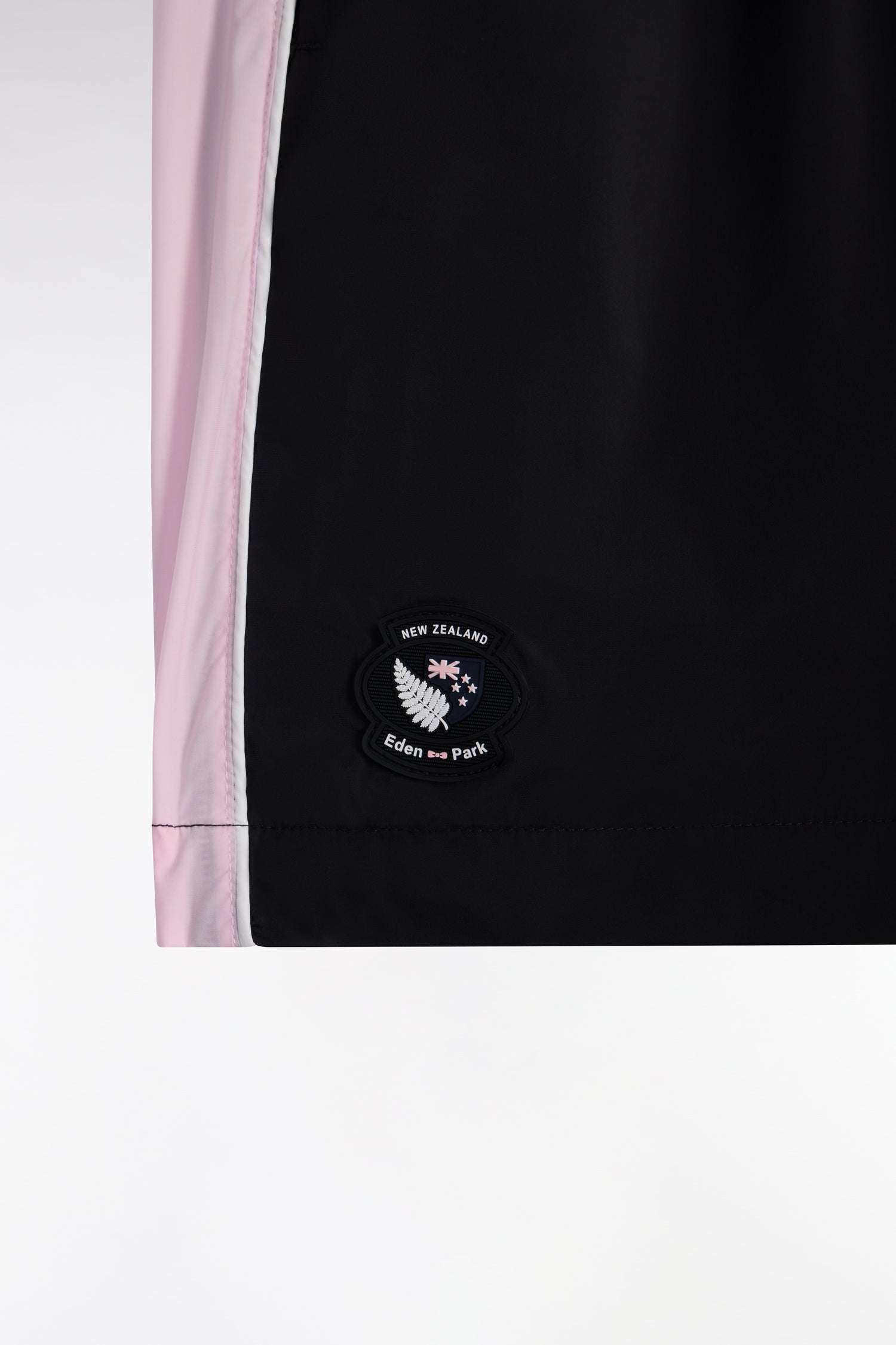 Faisant partie de notre capsule Nouvelle Zélande aux coloris contrastés, ce short de bain pour homme se distingue par son coloris noir profond animé de découpes roses soulignées par un passepoil contrasté le long de la jambe. Sa taille élastiquée, doublée du même coloris rose, assure un style impeccable et une tenue parfaite baignade après baignade. Graphique et minimaliste, ce maillot de bain comporte une poche arrière passepoilée et un badge New Zealand en gomme silicone en bas de la jambe, pour une signature subtile.