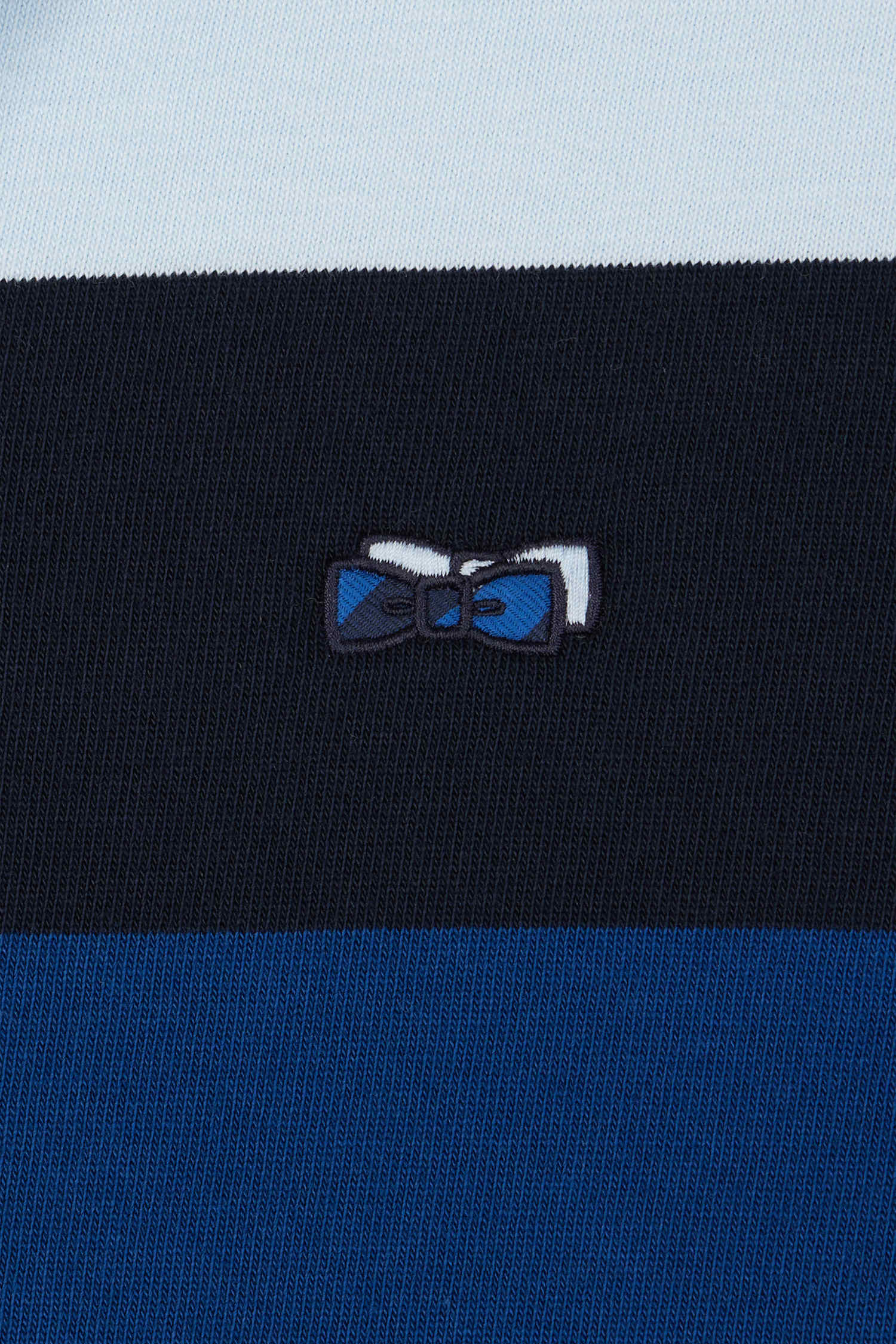 Notre iconique maillot cerclé en jersey de coton s'inspire du rugby, offrant un style unique avec ses rayures larges et ses boutons ovales siglés. Parfait pour ceux qui cherchent à allier passion pour le rugby et sens de la mode, ce maillot cerclé en jersey apporte une élégance sportive à tous les vestiaires. Ce modèle se distingue aussi par sa broderie nœud papillon rehaussée de tissu cravate rayé.