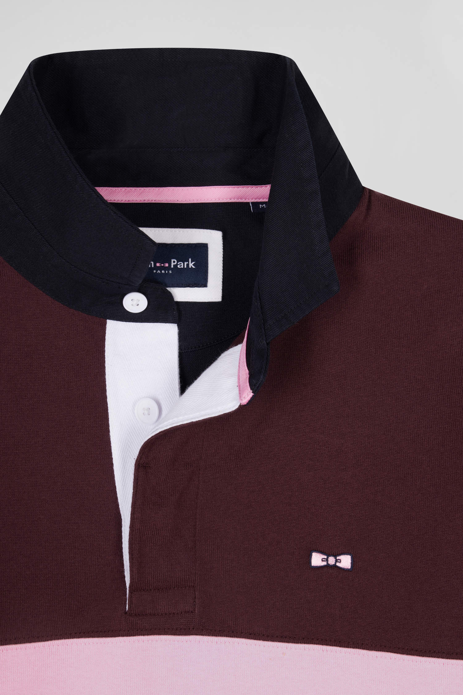 Maillot manches longues colorblock bordeaux en coton broderie dos coupe Regular