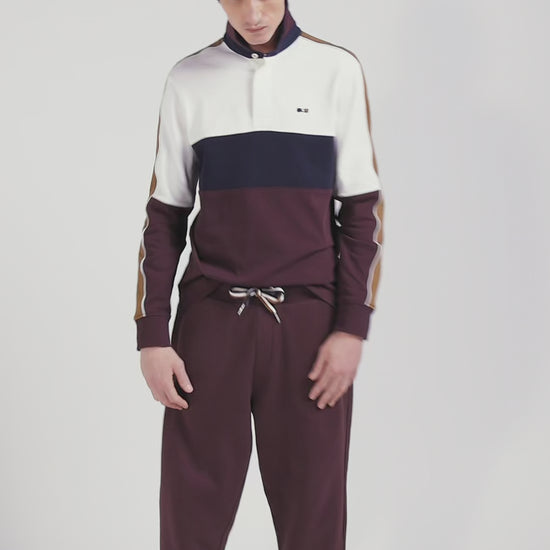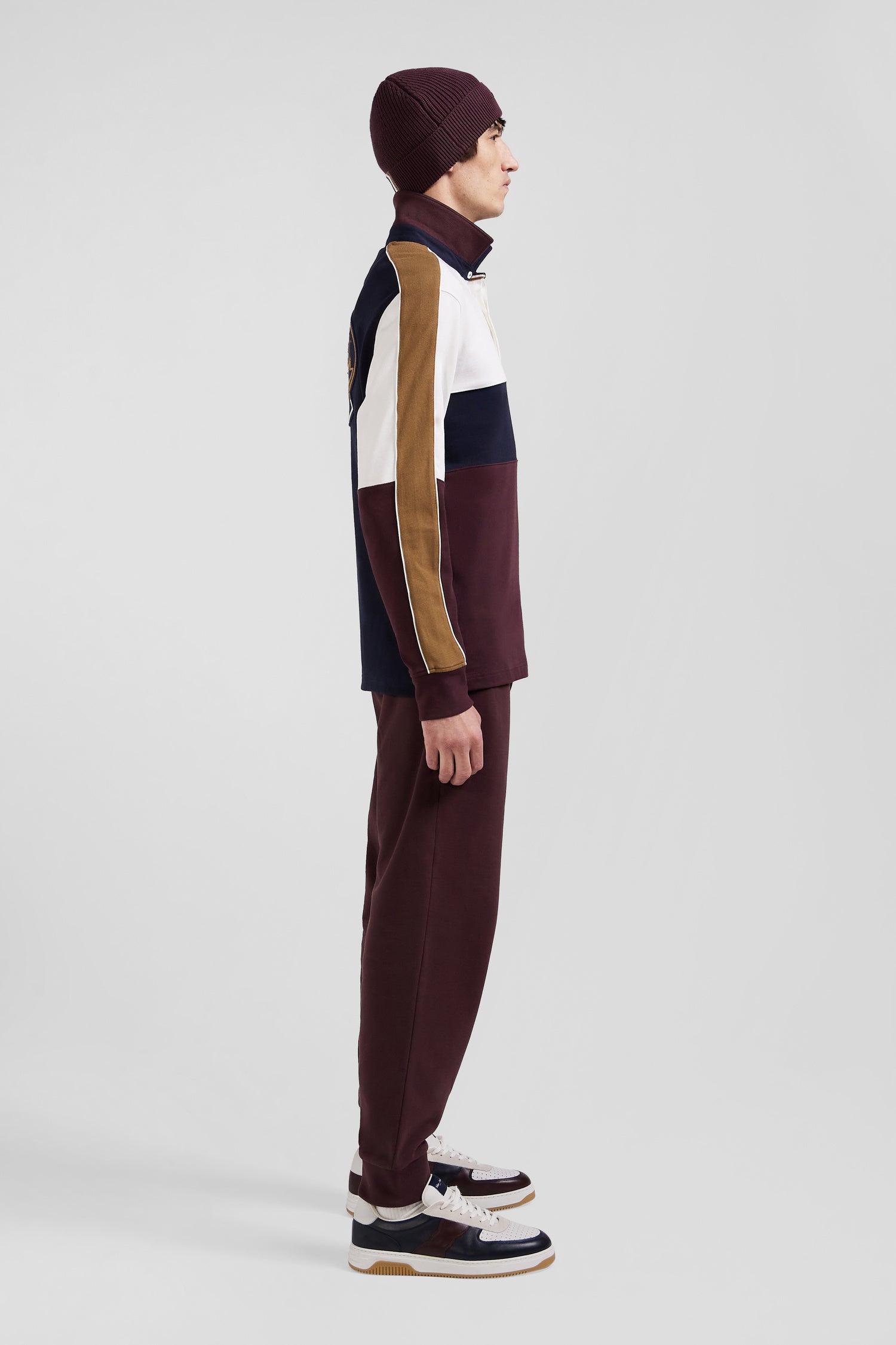 Maillot manches longues en coton bordeaux broderie dos et passepoil coupe Regular