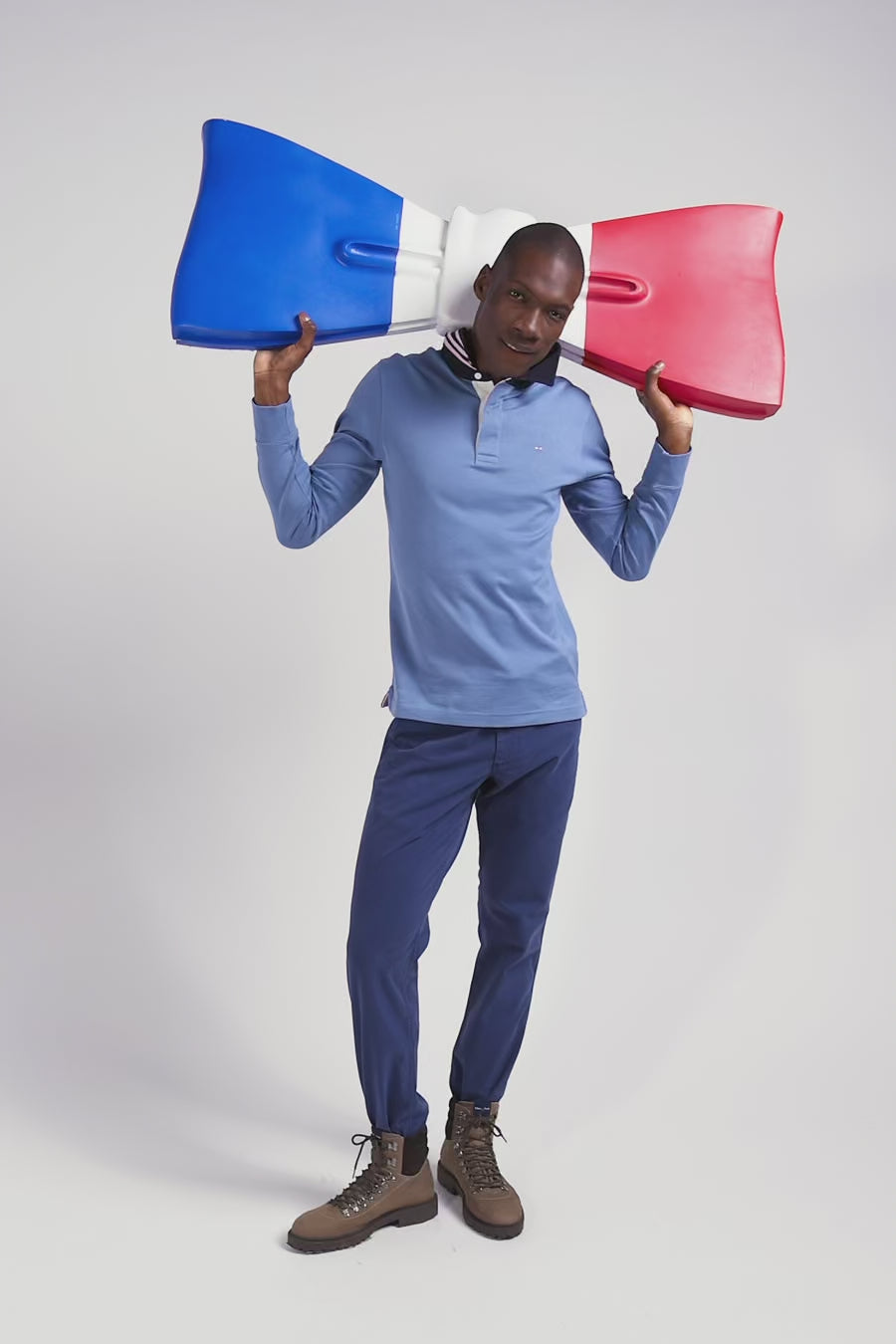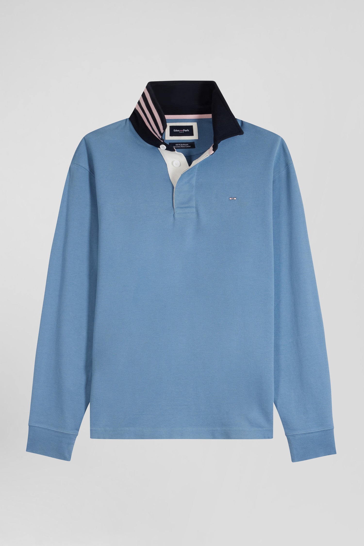 Maillot manches longues en coton Pima bleu coupe Regular