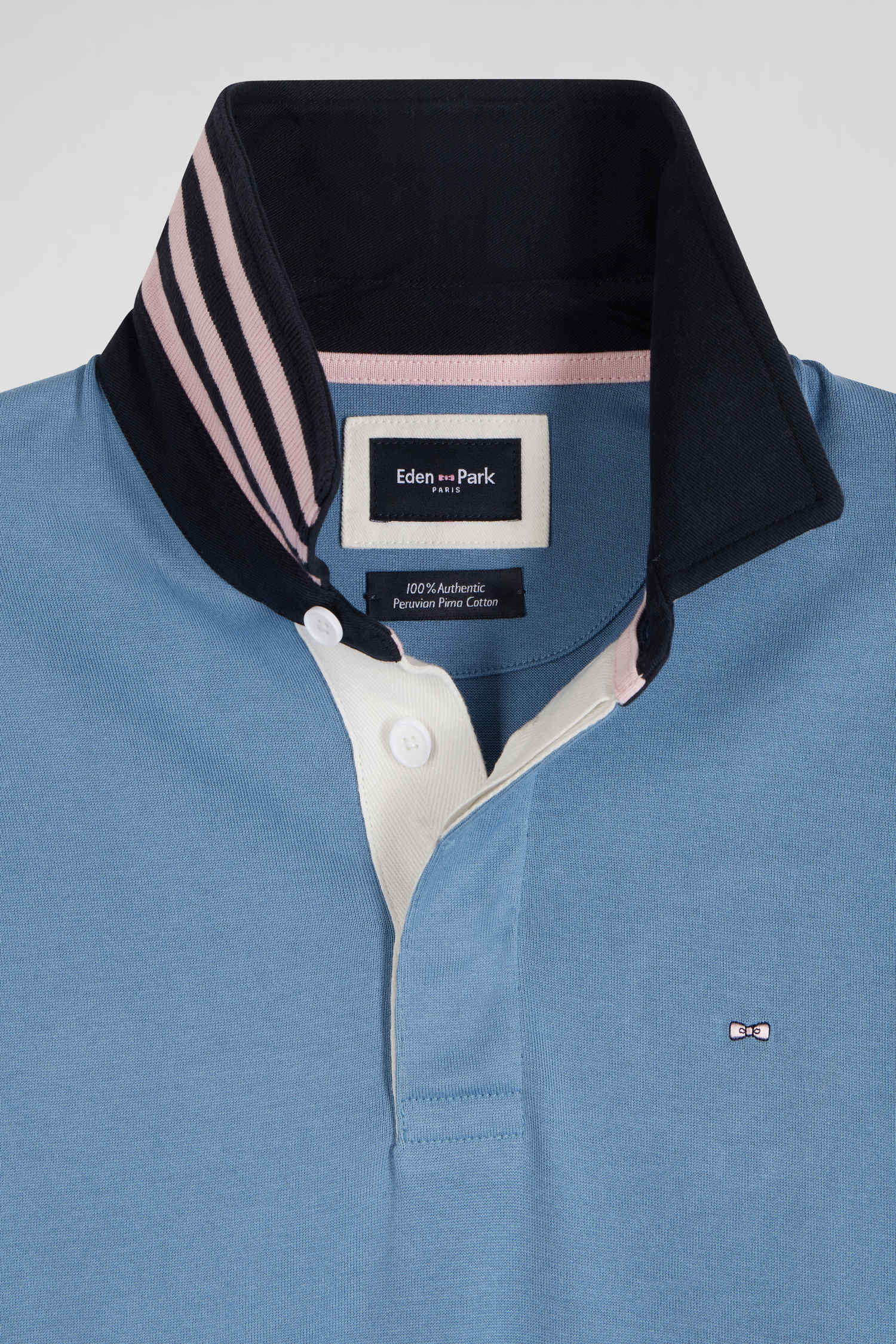 Optez pour l'élégance décontractée de ce maillot manches longues en coton Pima, une fibre naturelle durable aux multiples propriétés. Le dessous de col révèle des rayures discrètes pour un contraste subtil, tandis que l'emblématique broderie nœud papillon signe ce maillot coton avec raffinement. Conçu pour la durabilité et un confort optimal, ce modèle intemporel se décline en teintes variées, parfait pour compléter vos tenues automnales.