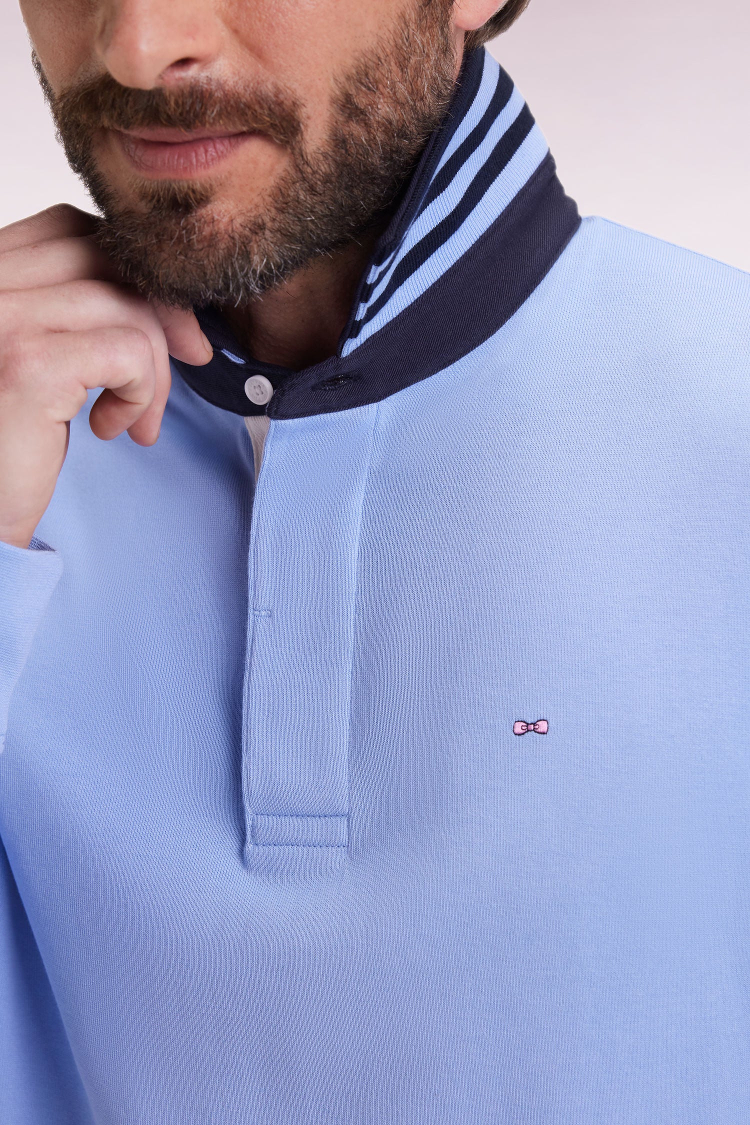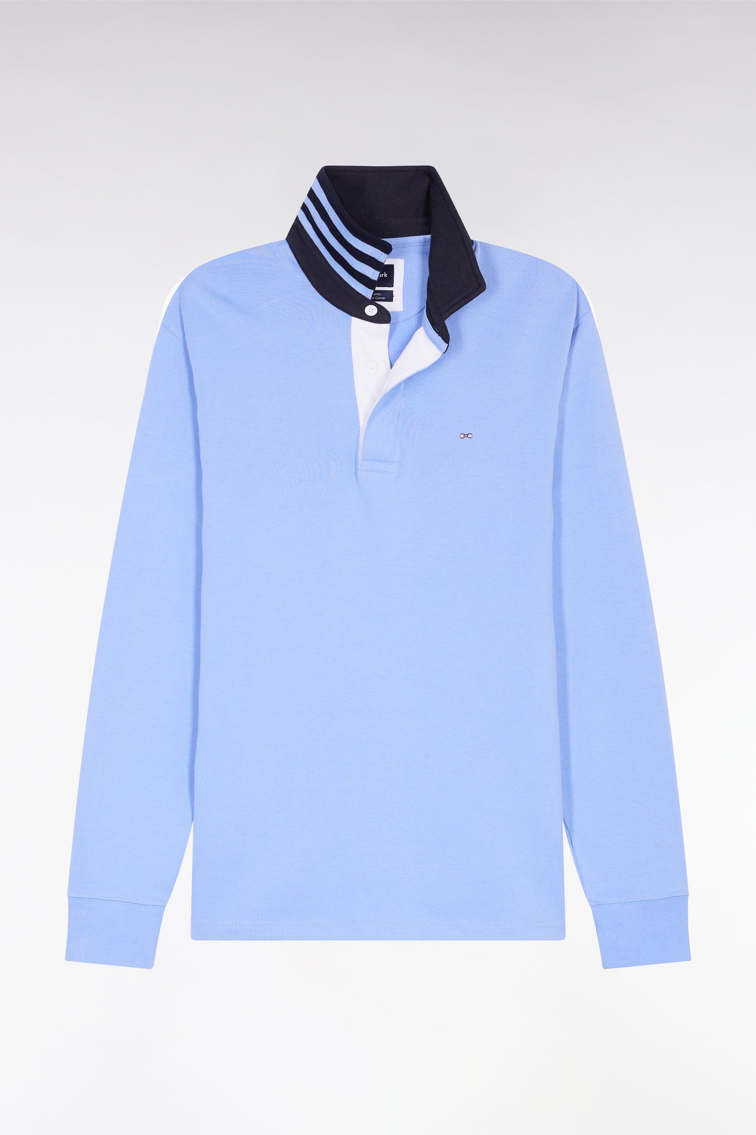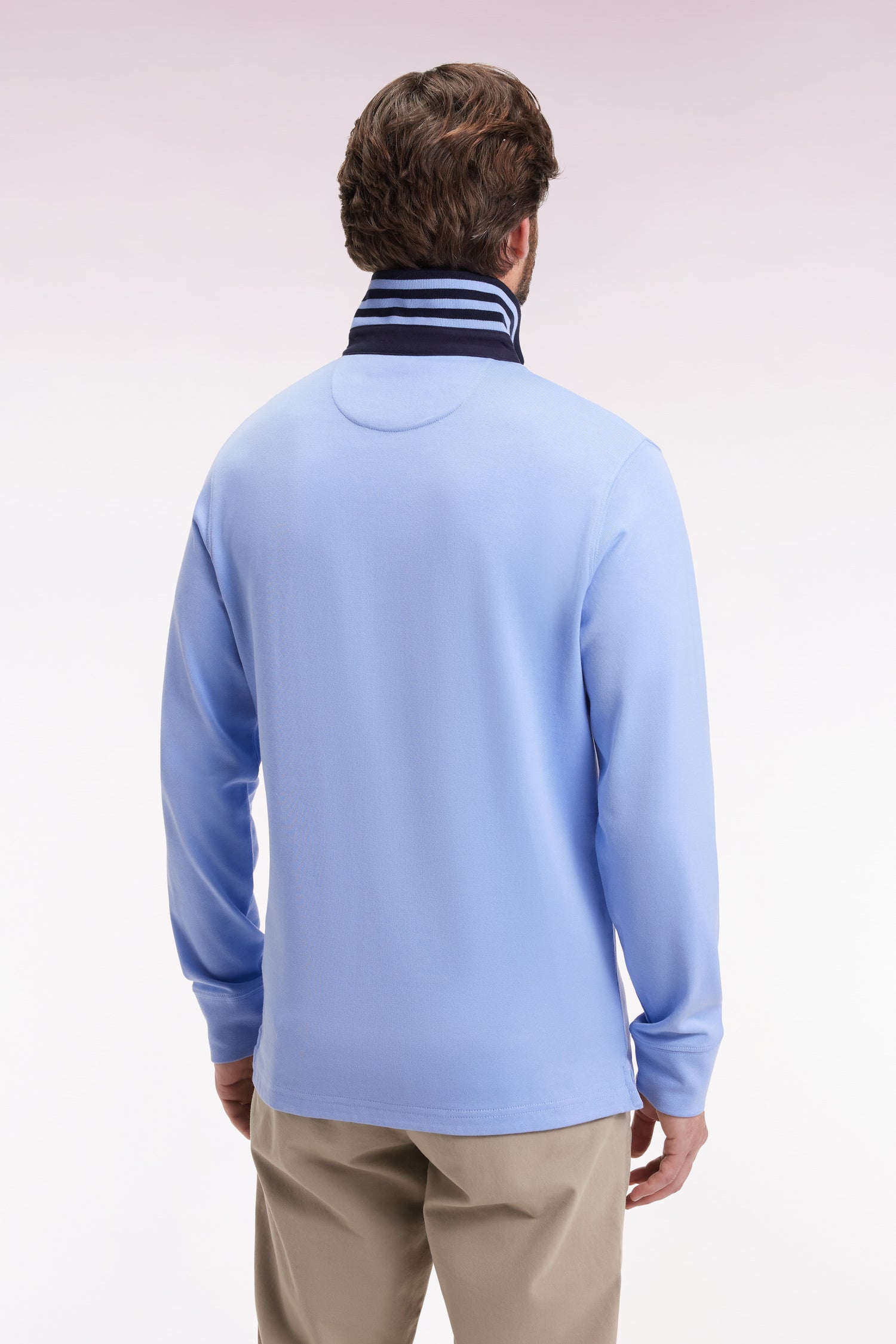 Maillot manches longues en jersey ciel dessous de col rayé