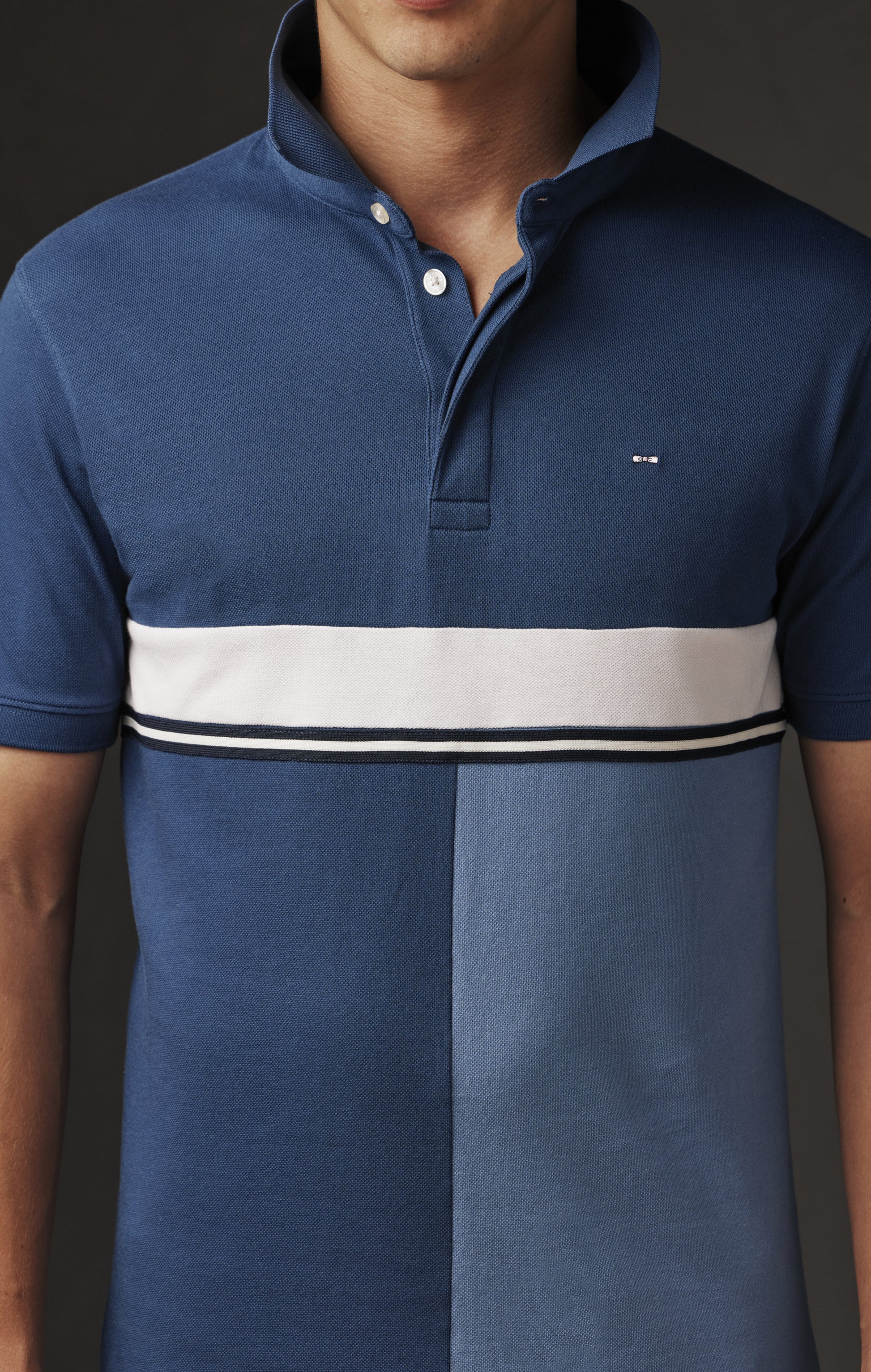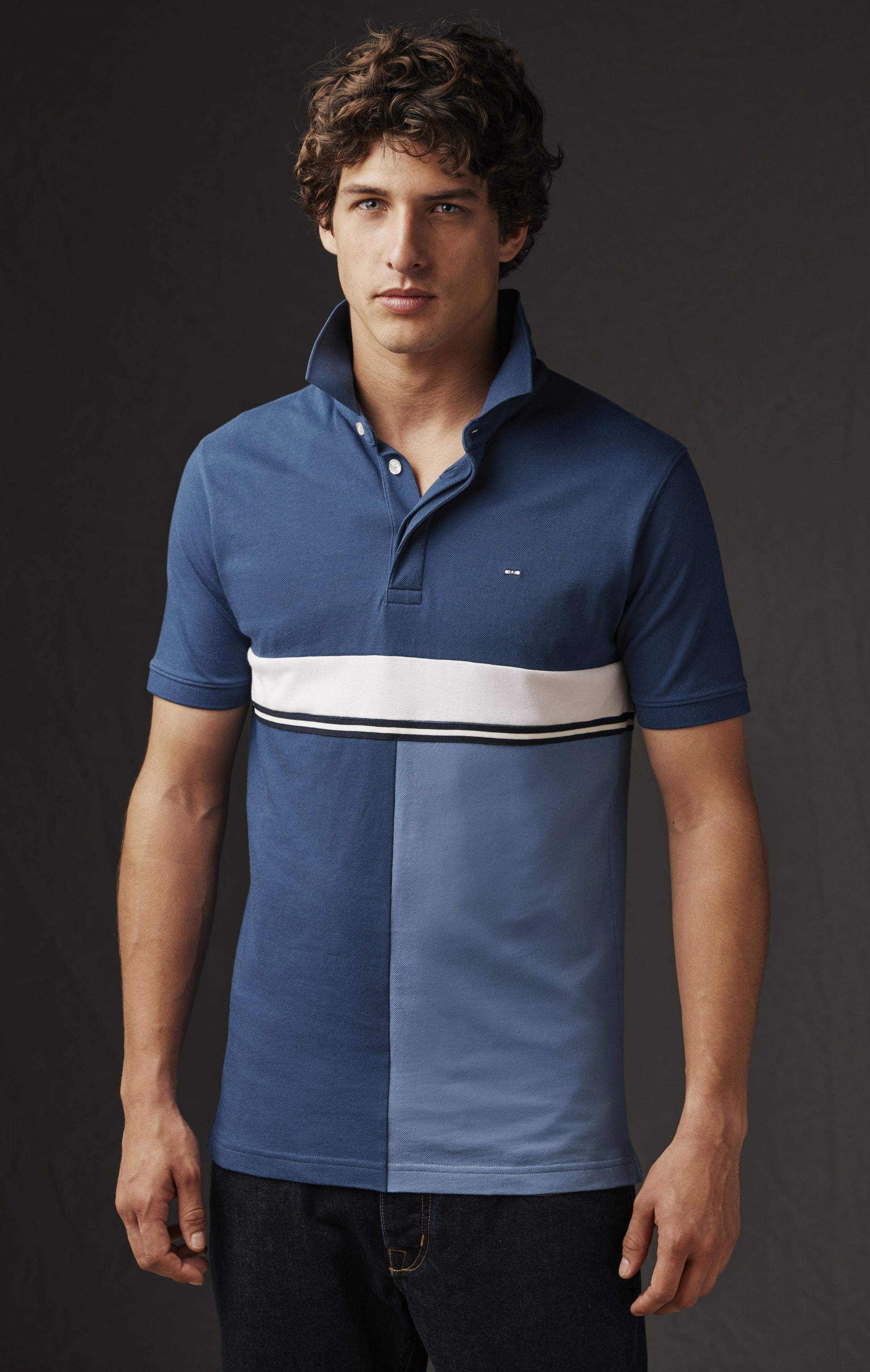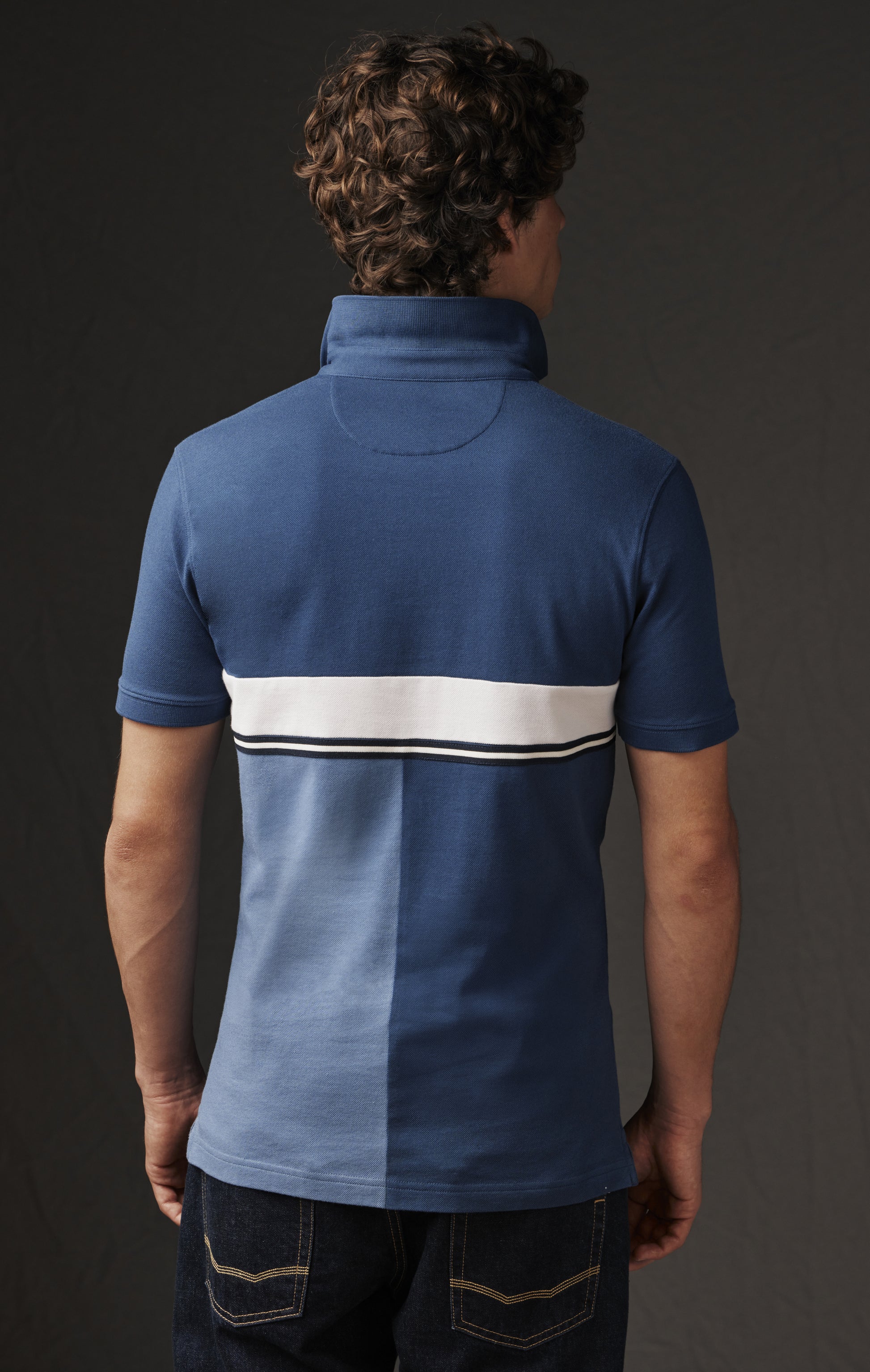 Pour réaliser ce maillot homme, notre atelier parisien a sélectionné dans les archives Eden Park deux maillots en jersey de coton stretch, l'un bleu foncé l'autre plus clair. Découpés puis associés en patchwork, ces maillots masculins donnent naissance à une pièce graphique à l'élégant camaïeu souligné par l'ajout d'un galon rayé et d'une bande blanche prélevée sur les stocks dormants de tissus de la Maison. Ce maillot Pap'Atelier est une pièce unique proposée sur notre site internet en taille M dans un seul exemplaire et pour une durée limitée. Son alter ego associant les mêmes coloris dans un montage miroir témoigne de notre engagement à valoriser l'intégralité de nos ressources, pour une mode plus durable et un style absolument unique.