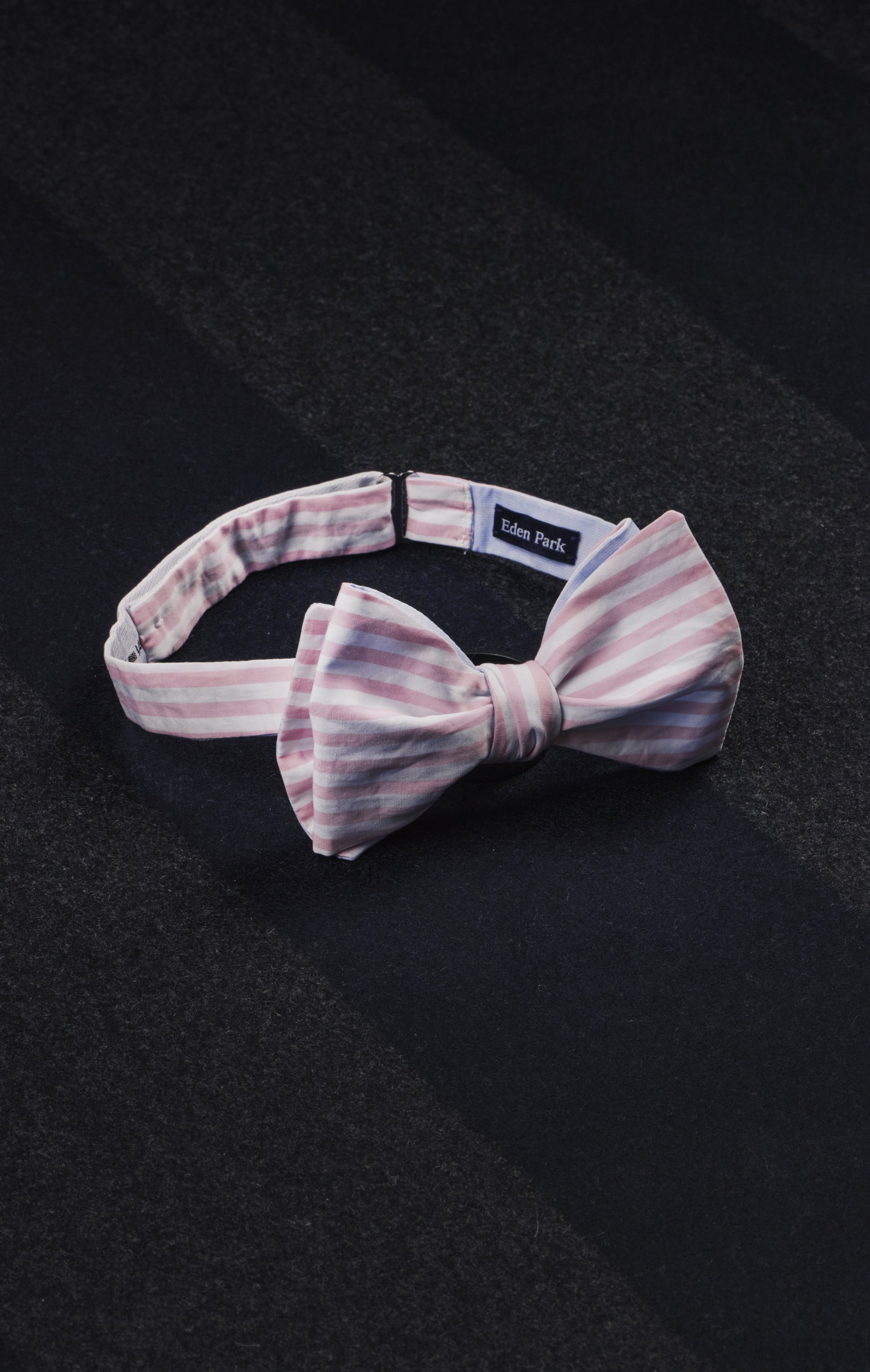 Réalisé artisanalement dans un tissu rayé rose et blanc soigneusement sélectionné dans nos stocks dormants, ce nœud papillon assure un style moderne et raffiné. Ses rayures soulignent l’audace et la décontraction élégante du vestiaire de la Maison tout en prolongeant la durée de vie de nos étoffes haut de gamme. Intégré à la capsule Pap’Atelier et proposé en ligne en édition très limitée, un seul exemplaire, cet accessoire conjugue style et engagement pour une mode plus durable. Chaque détail, de la griffe Eden Park à l’attache prémontée, reflète l’attention portée aux finitions pour vous assurer une allure impeccable et plus de confort au quotidien comme à l'occasion d'un évènement habillé.