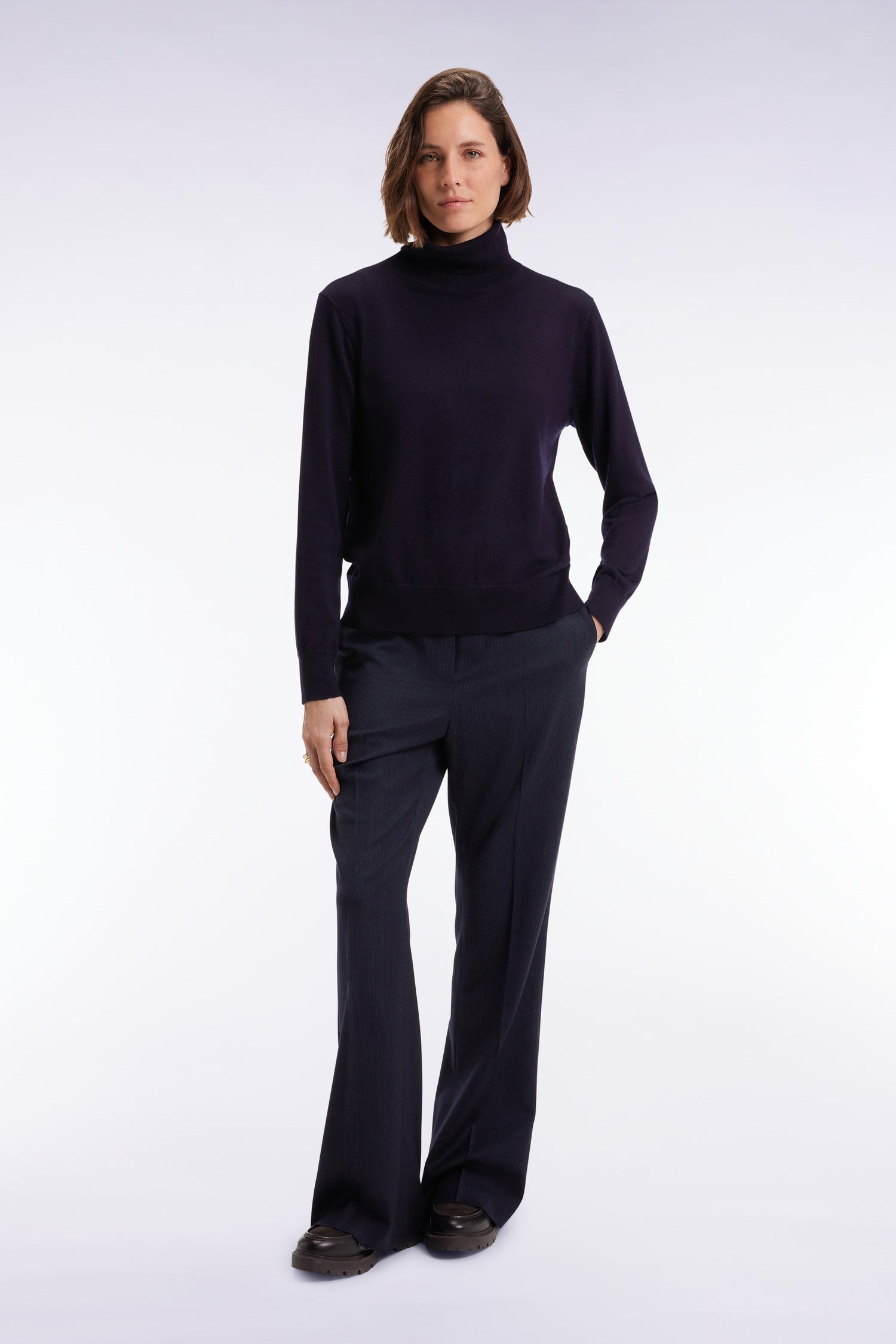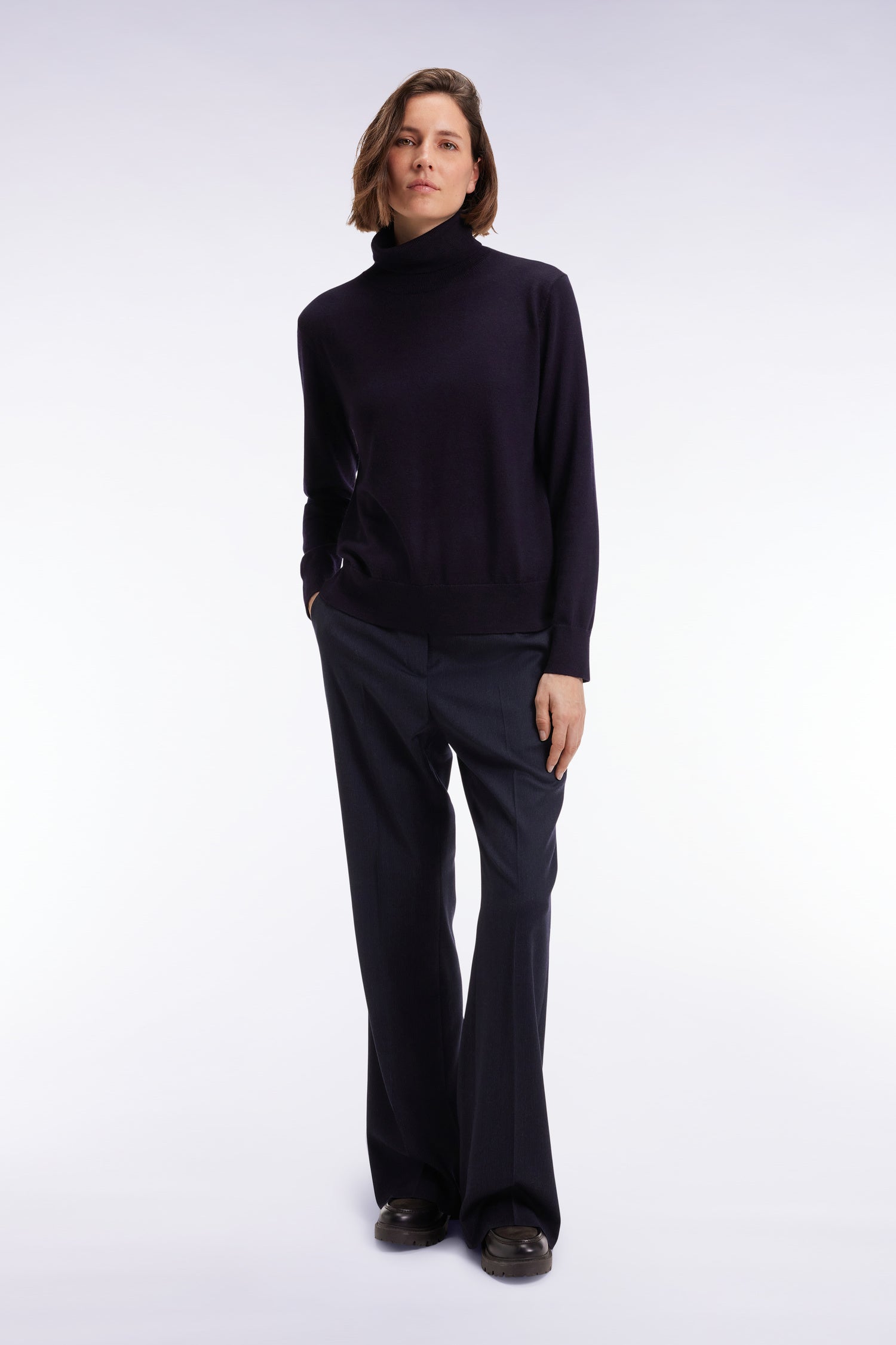 Pull à col roulé en laine mérinos marine