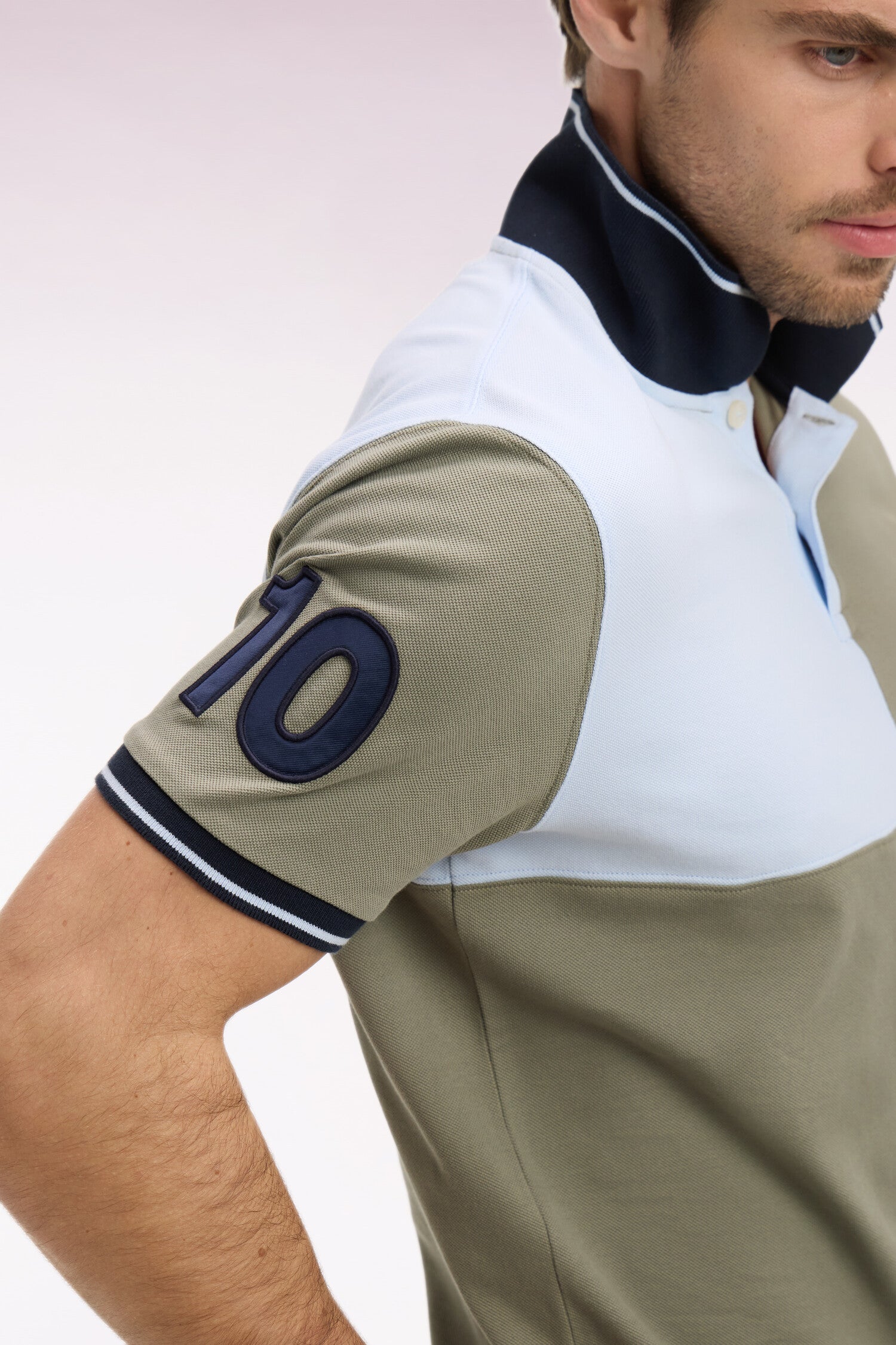 Ce polo masculin en piqué de coton revisite l’héritage rugby Eden Park avec subtilité grâce à sa broderie 10 sur la manche, clin d’œil au numéro historique du maillot de notre fondateur. Le contraste du col polo marine et des bords-côtes assortis structure la silhouette et souligne l’allure sport chic du modèle. Sa coupe regular et son piqué de coton garantissent confort et tenue, tandis que ses découpes cadrans travaillées dans une palette beige et ciel ou beige et rose apportent une élégance contemporaine à cet essentiel graphique pensé pour accompagner le vestiaire estival.