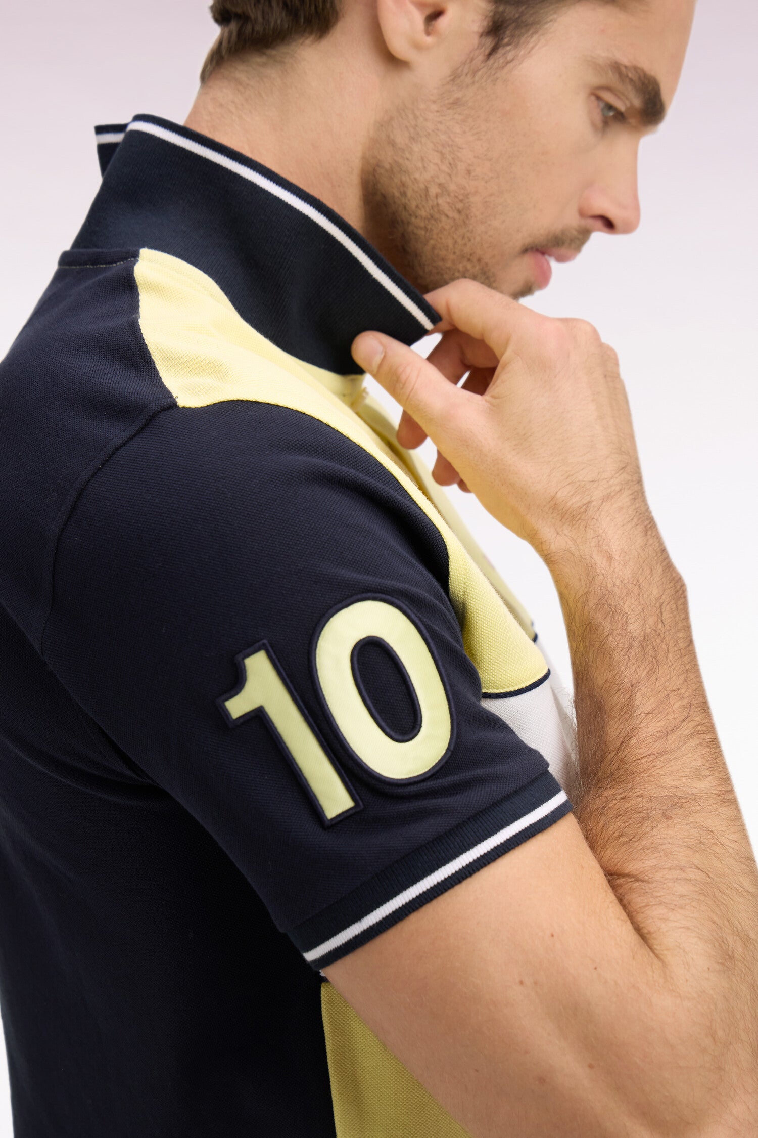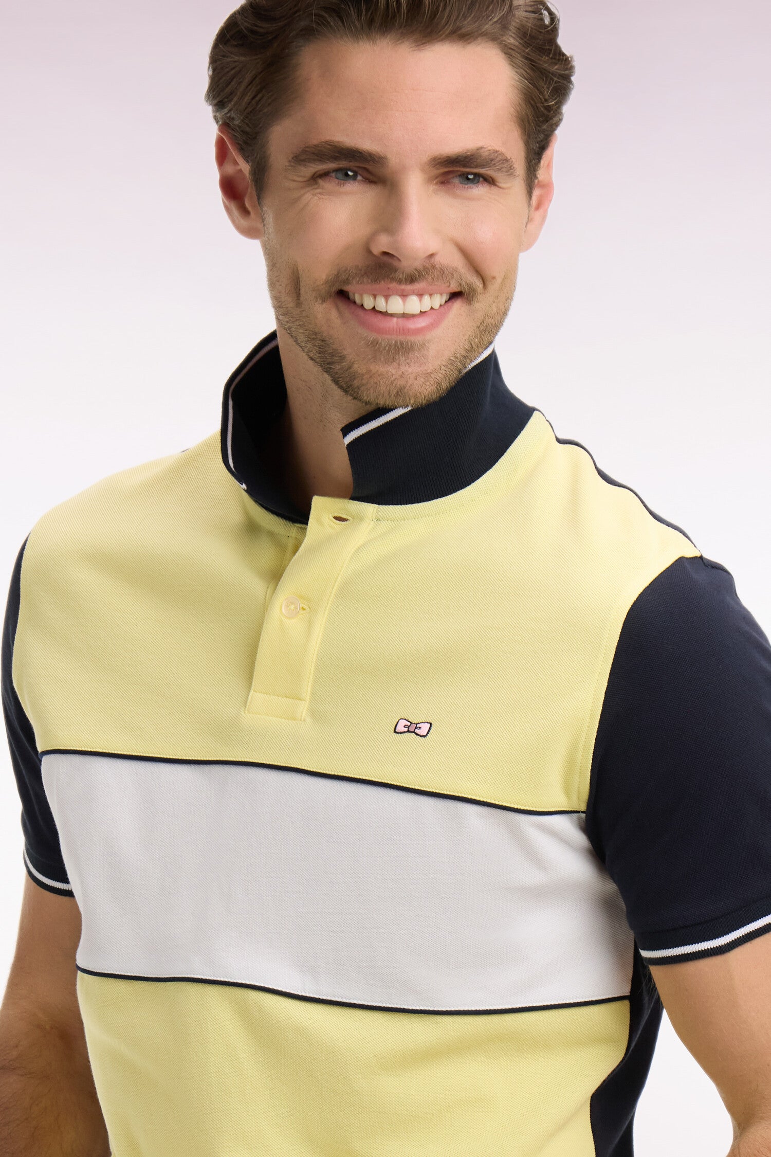 Polo à manches courtes en coton jaune clair et marine coupe regular