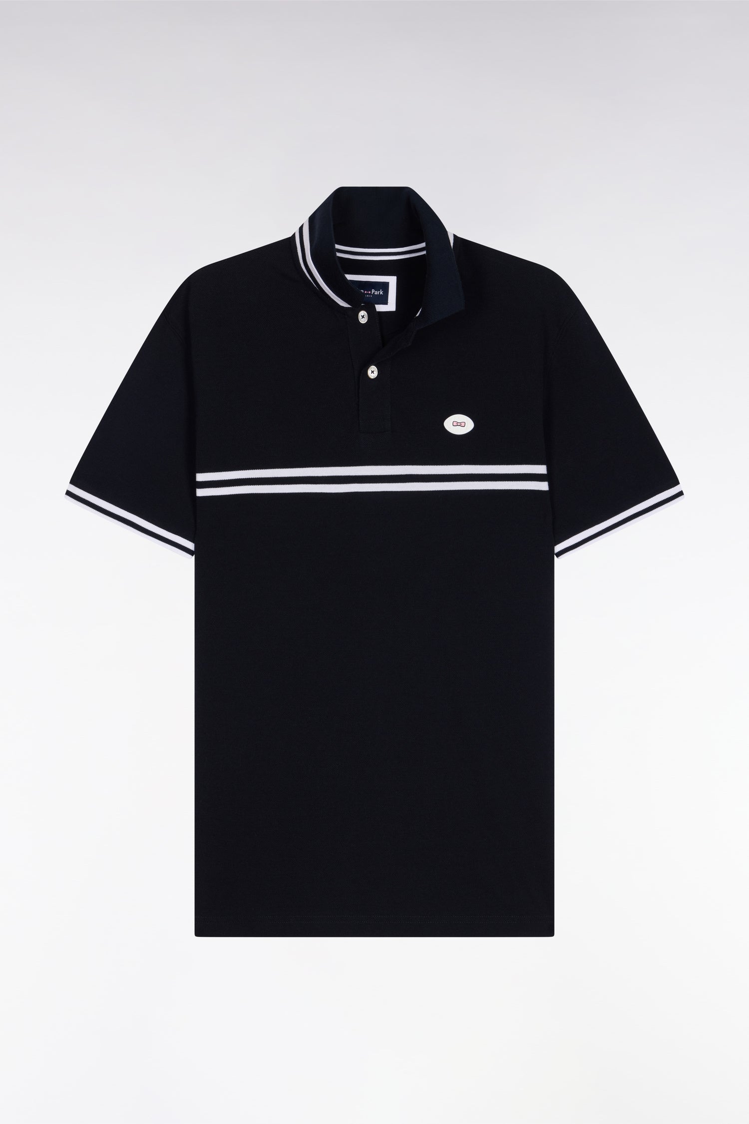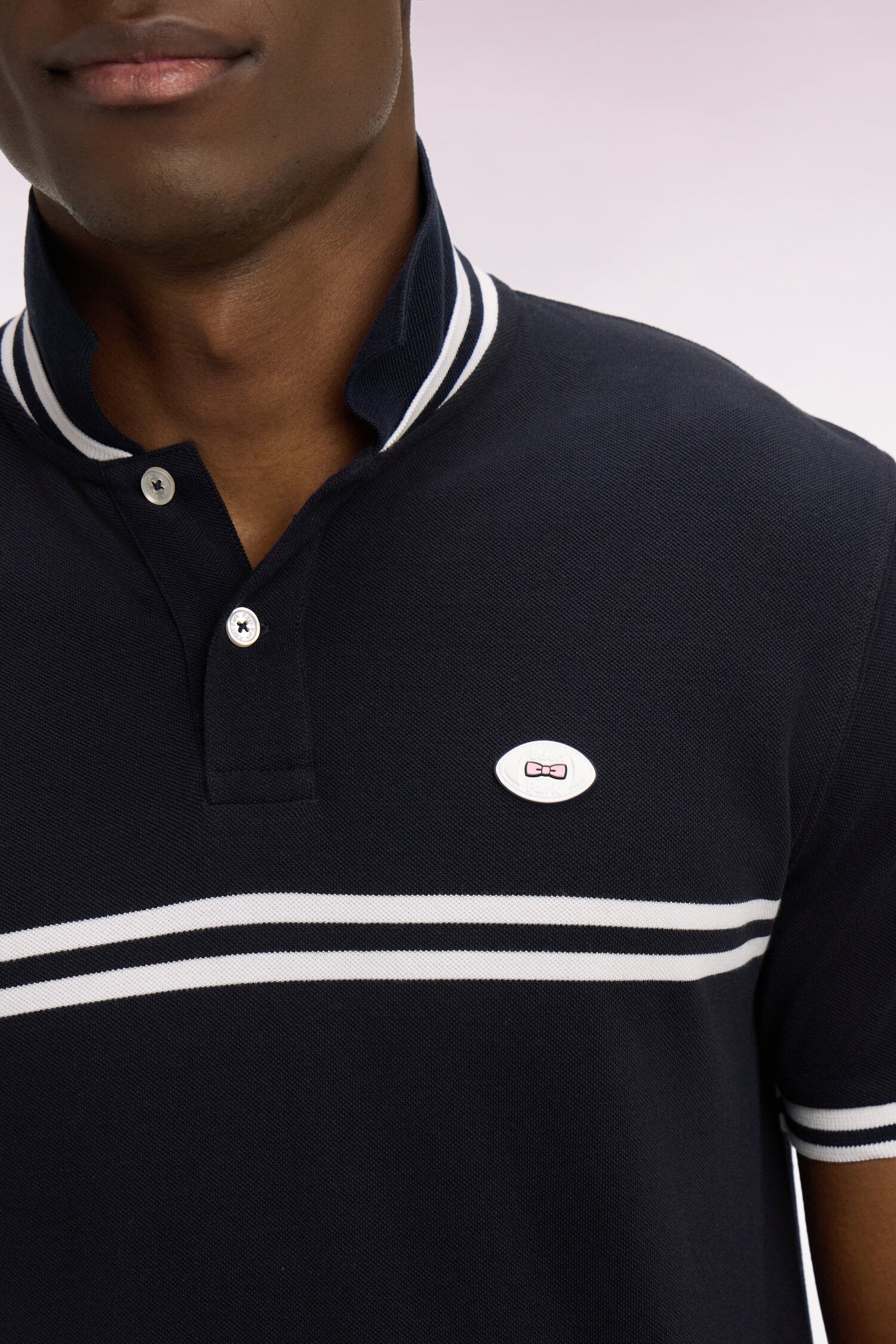 Polo à manches courtes en coton marine à rayures blanches coupe regular