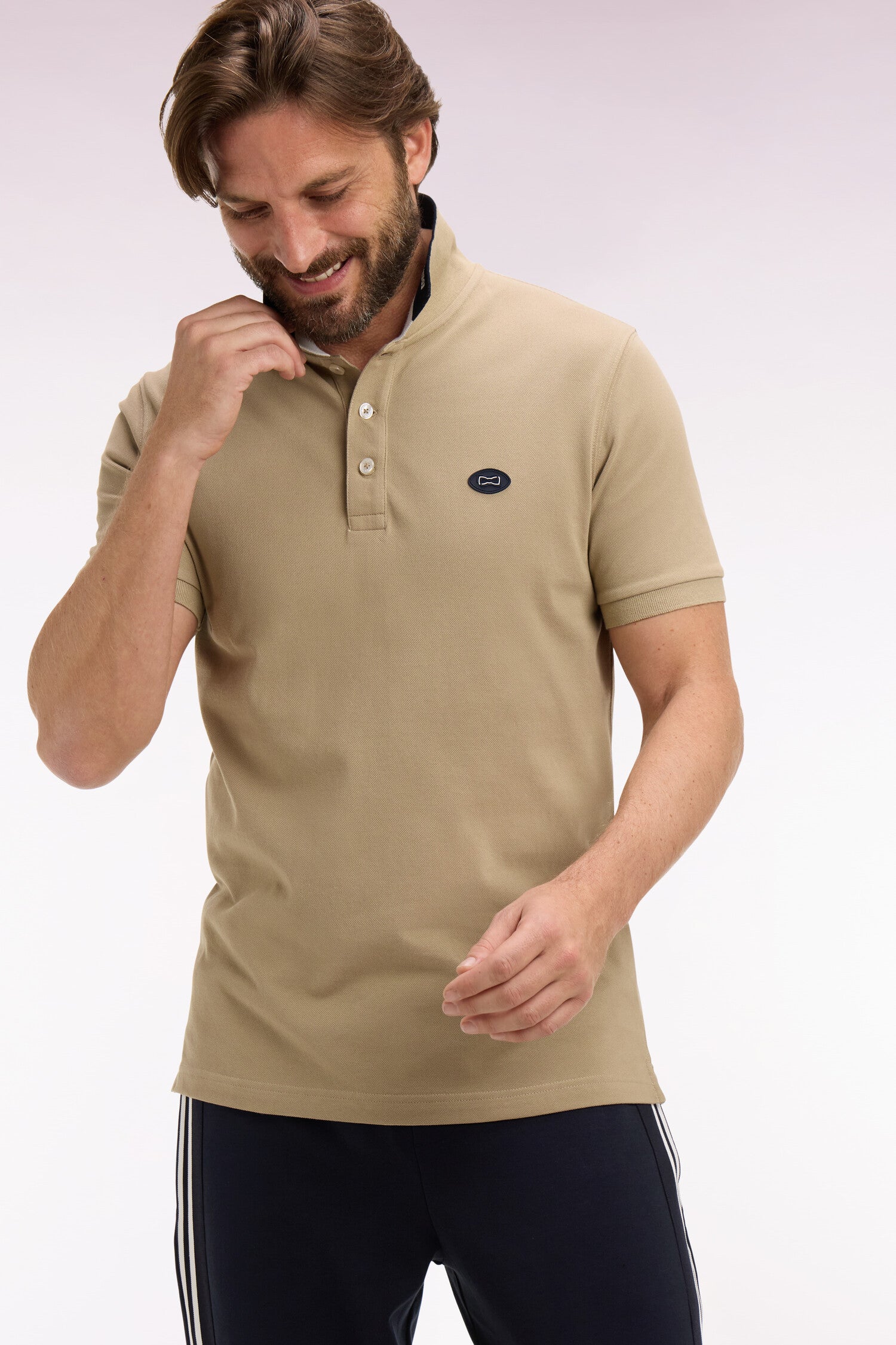 Polo à manches courtes en piqué coton beige coupe regular