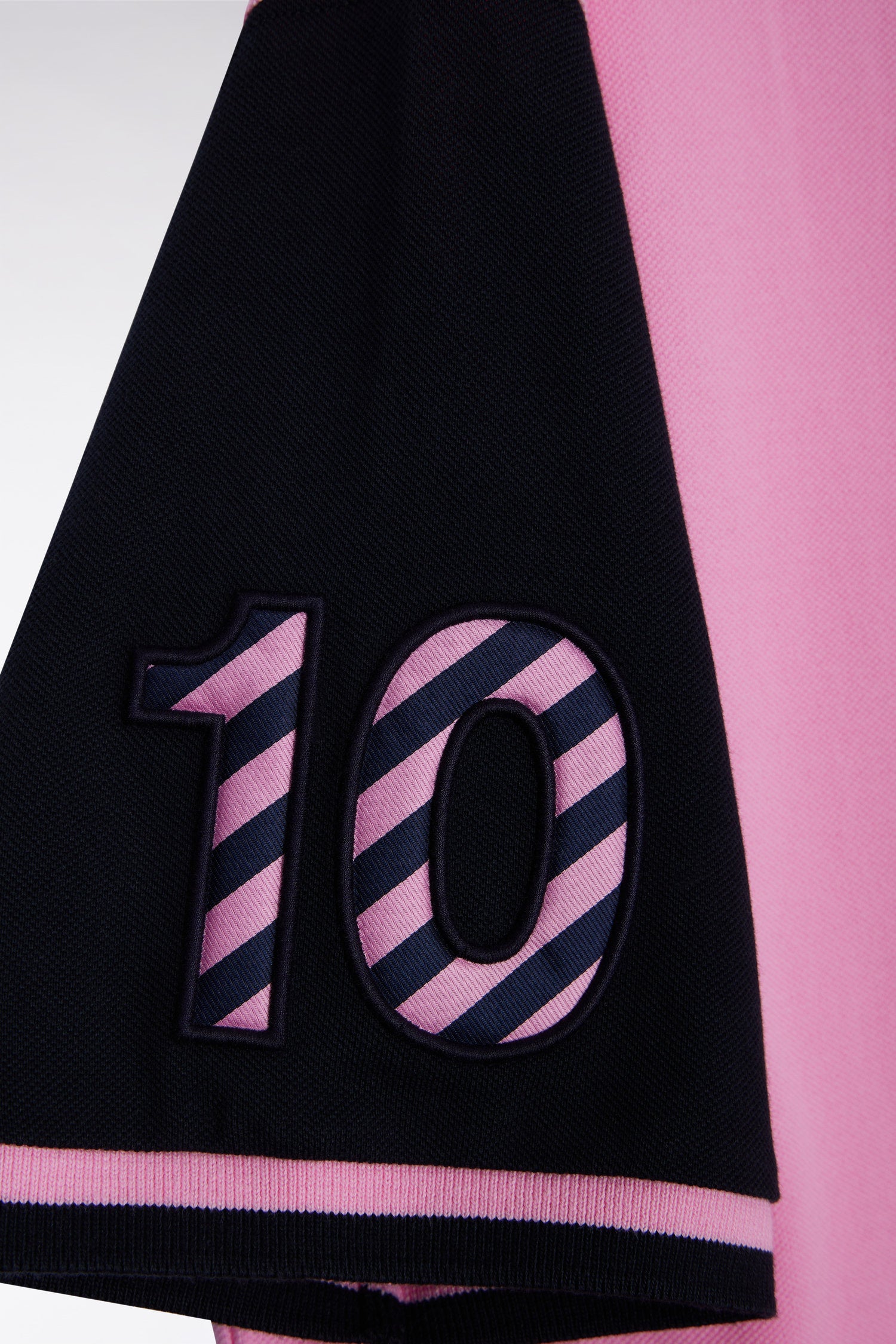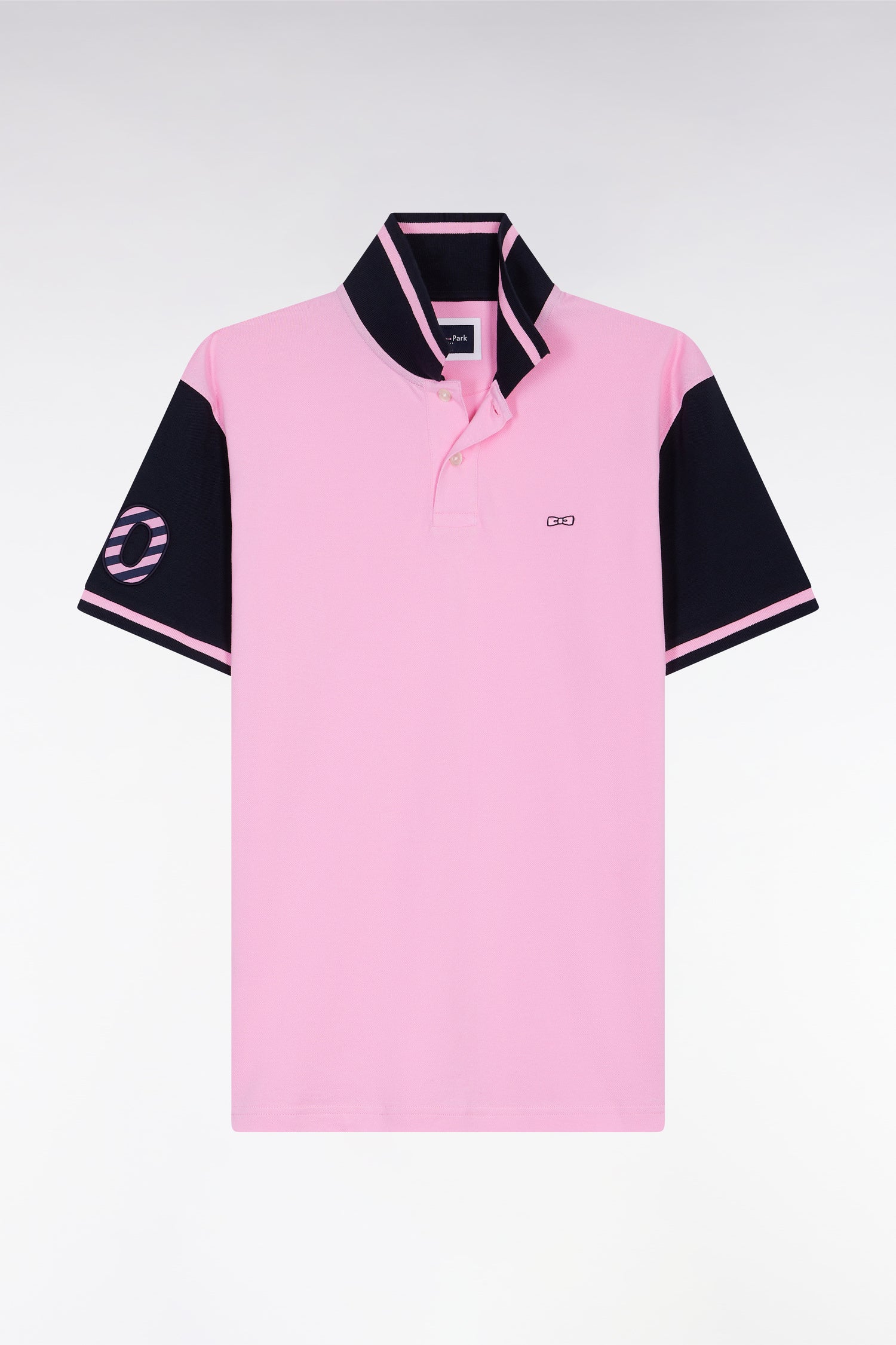 Polo bicolore à manches courtes en coton rose broderie 10