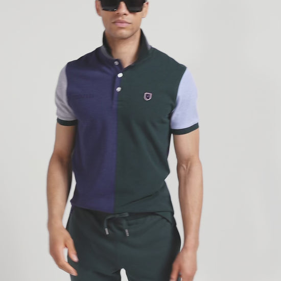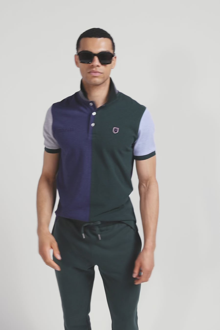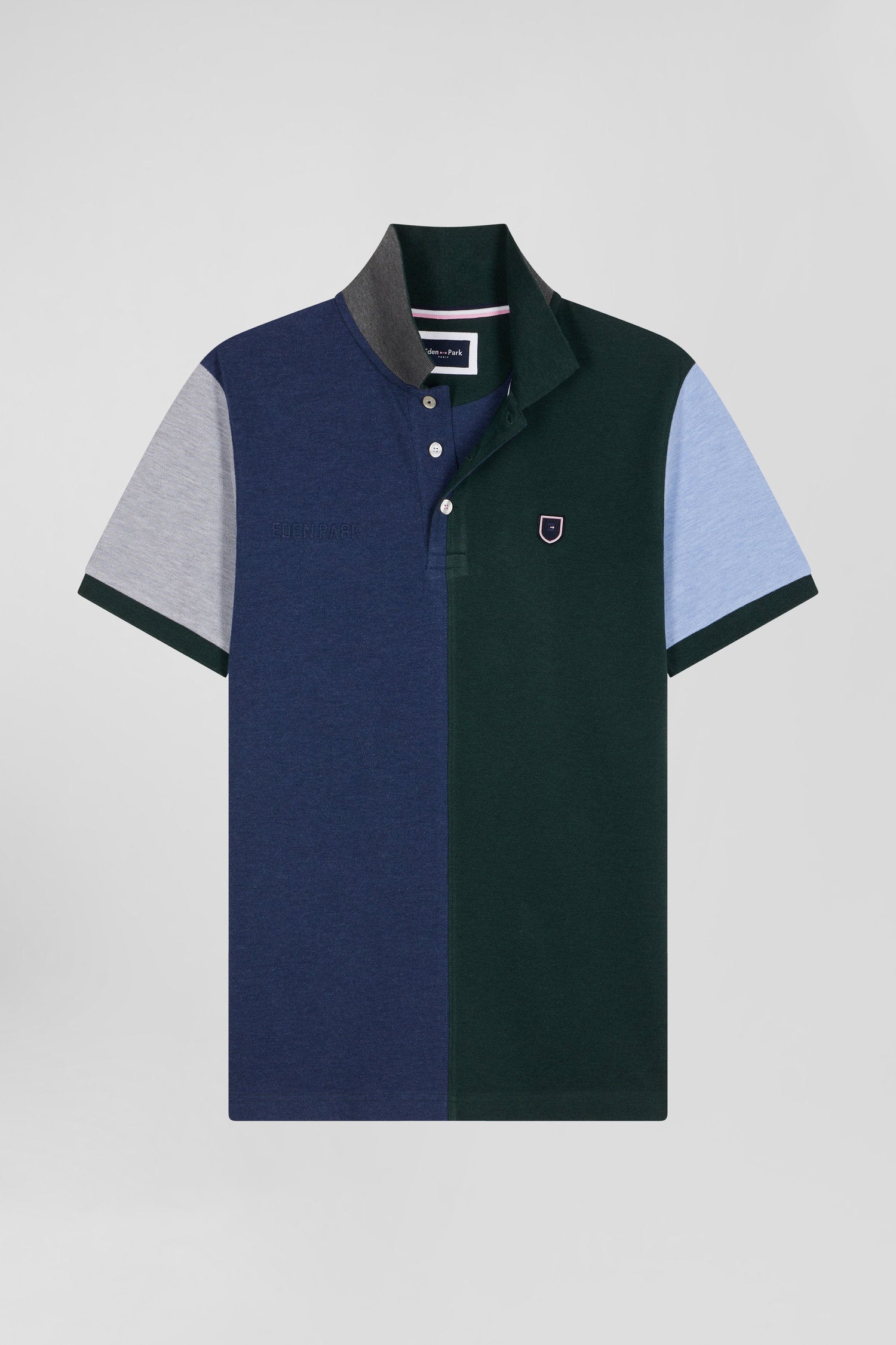 Polo manches courtes colorblock en piqué coton vert coupe Regular