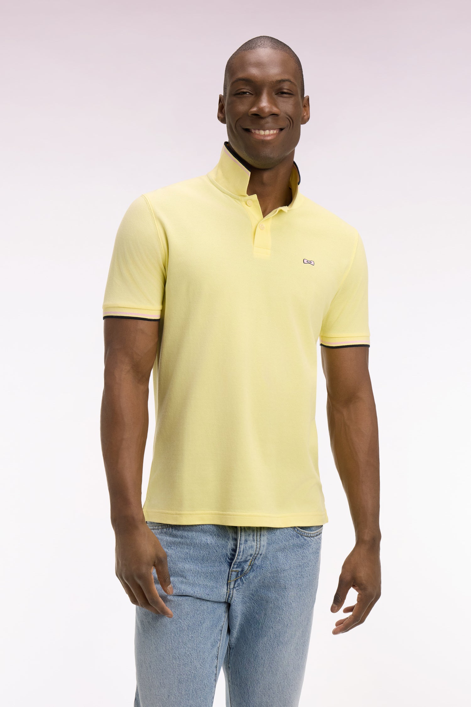 Travaillé dans un luxueux piqué de coton pur, ce polo homme met l’accent sur la qualité de sa matière et la précision de son tricotage. Sa coupe regular assure une silhouette équilibrée et une belle liberté de mouvement, tandis que les finitions rayées délicates soulignant son col polo et ses bords-côtes manches lui insufflent un style athlétique. Comme nos iconiques, ce polo à manches courtes porte notre broderie nœud papillon, emblème de notre Maison française. Un modèle intemporel offert dans une large palette de coloris, de l'indémodable polo en coton blanc au jaune lumineux pour ensoleiller votre vestiaire du week-end.