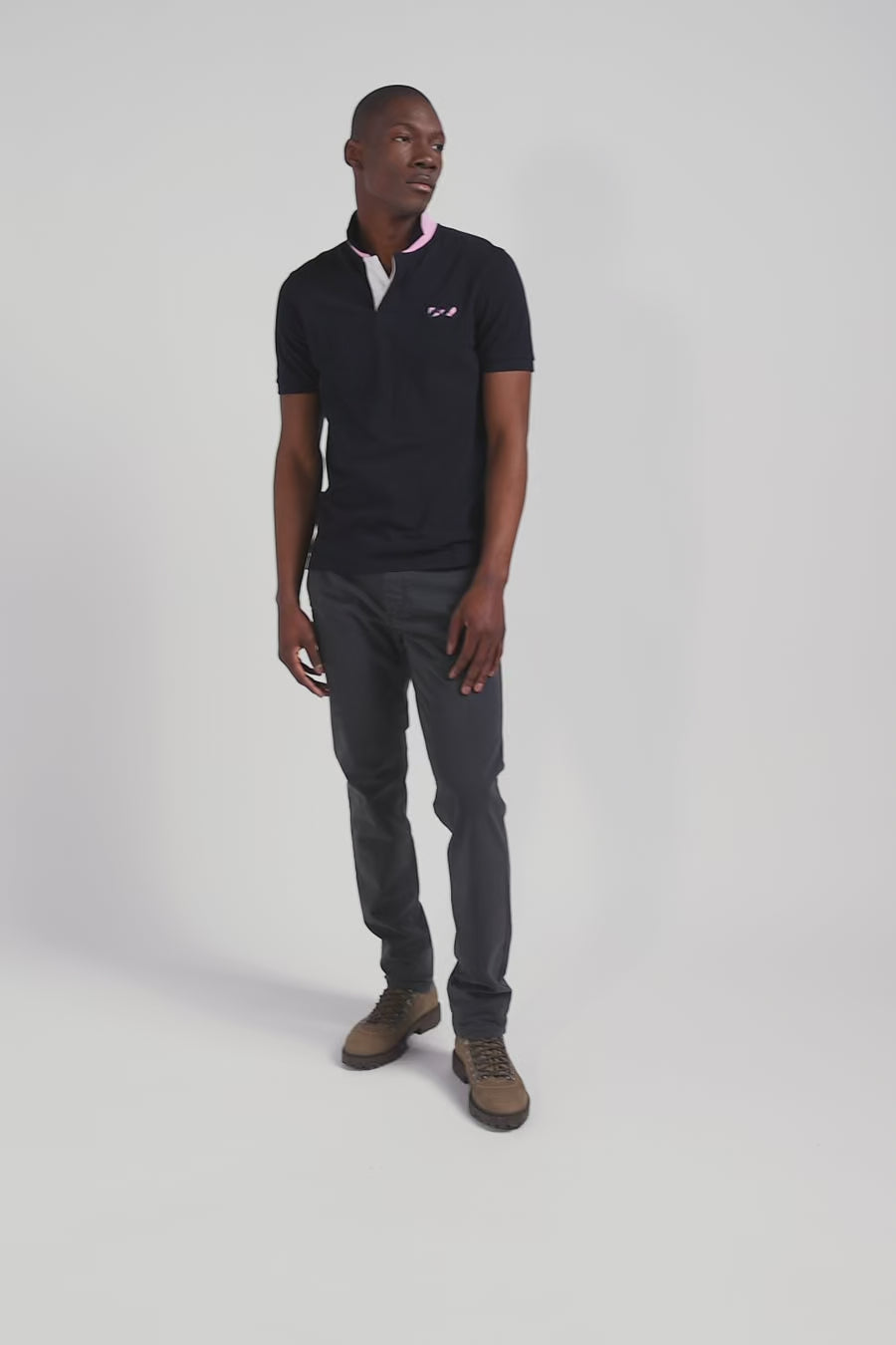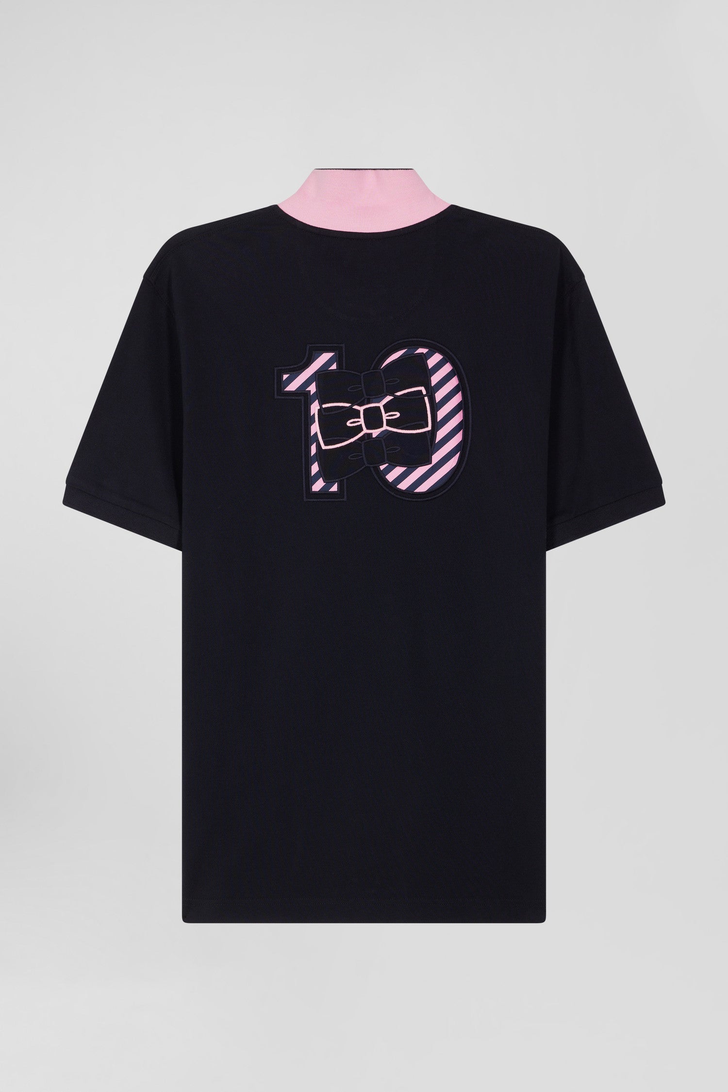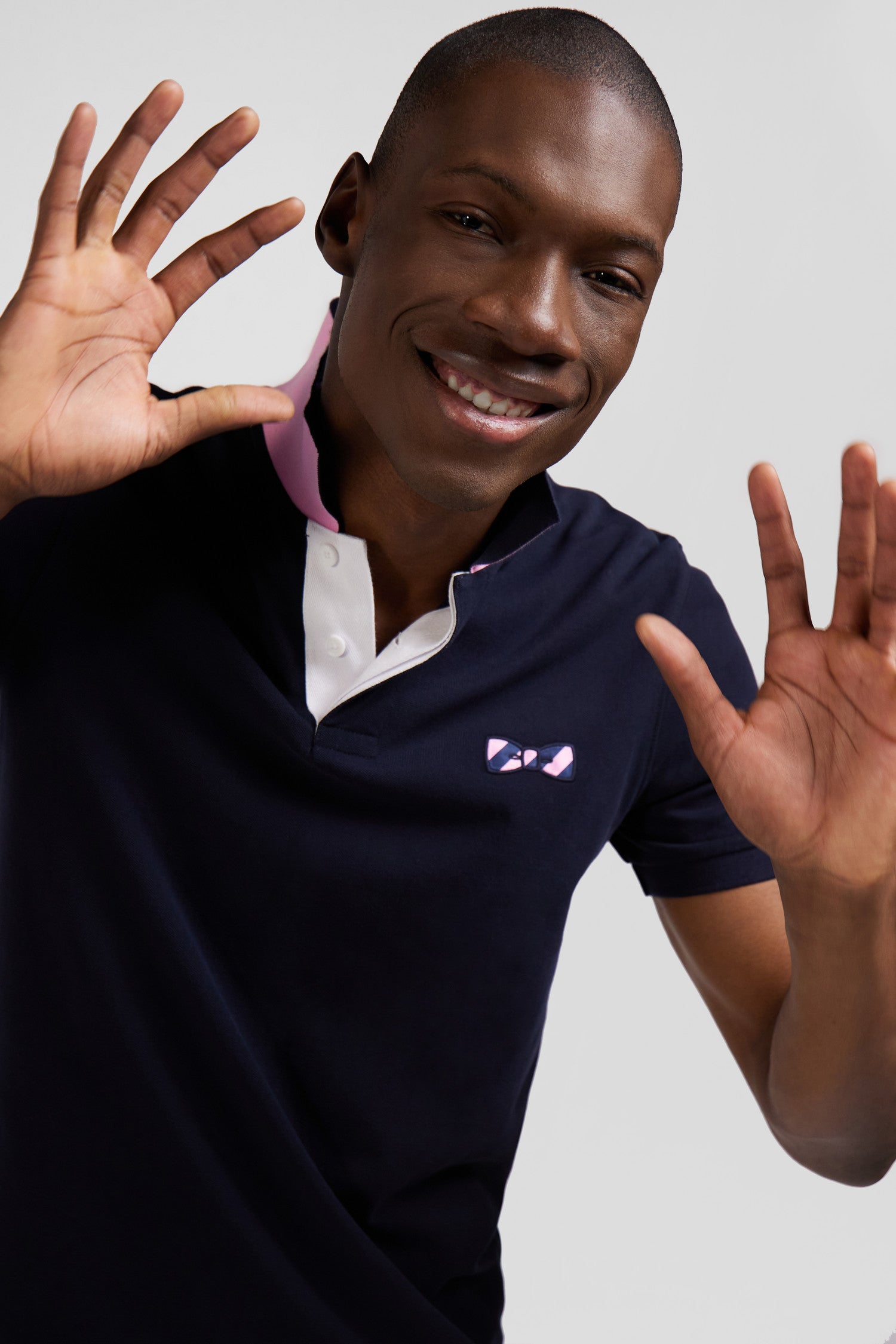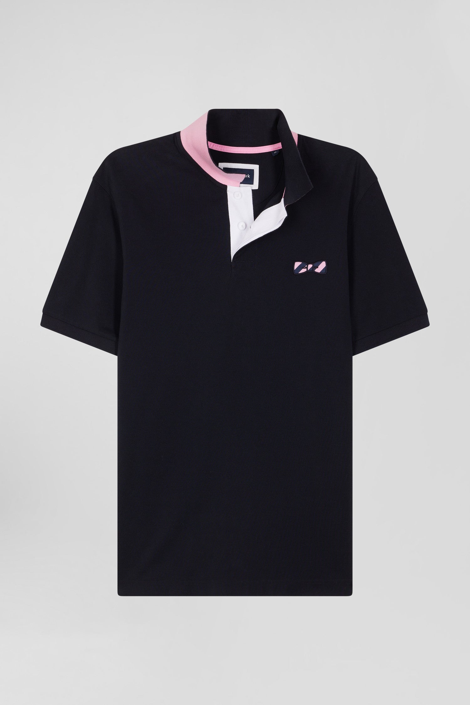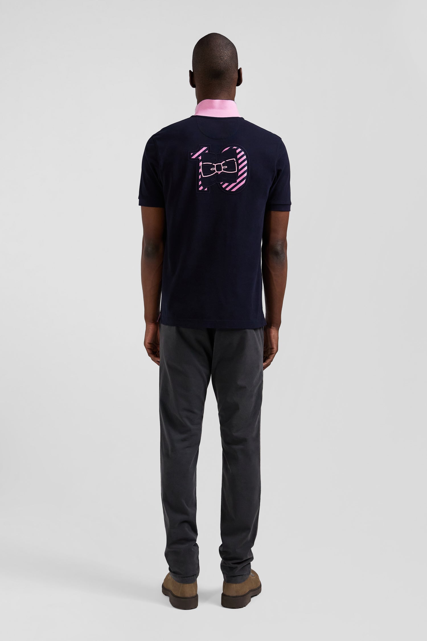 Polo manches courtes en piqué coton bleu marine broderie cerclée coupe Regular