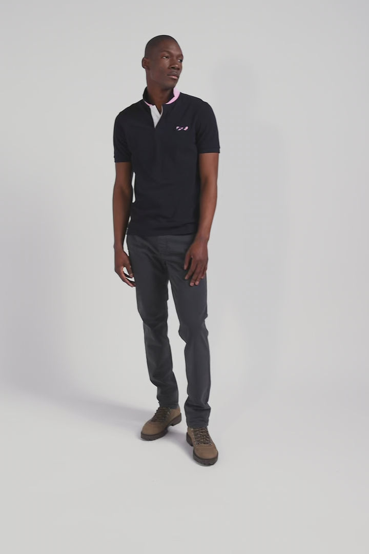 Ce polo en coton pour homme est une pièce raffinée et décontractée, parfait pour une allure chic au quotidien. Sa coupe Regular droite offre confort et aisance, tandis que la broderie poitrine distinctive et les applications de tissu cravate cerclé rose et marine ajoutent une touche d'originalité. Les détails de finition, comme les boutons ovales rugby siglés et la bande de propreté unie, témoignent de l'attention de notre Maison à chaque détail.