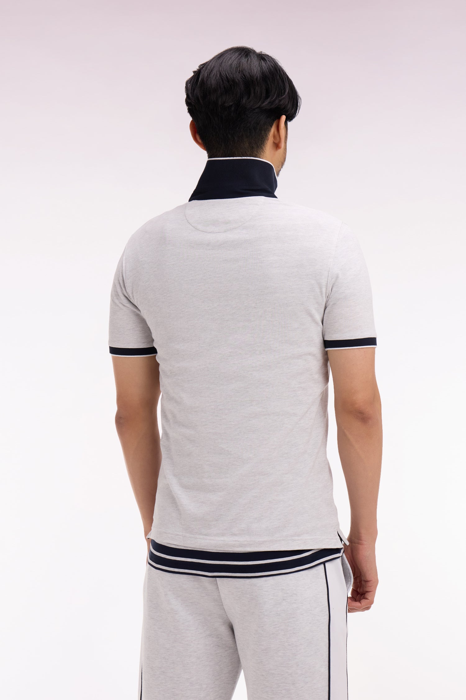 Polo manches courtes en piqué coton stretch gris clair coupe slim